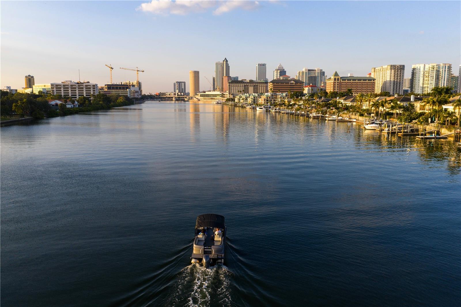 Live where the city meets the water. Welcome home to this fully reimagined single-family home, meticulously renovated top to bottom by renowned Soleil Design. The thoughtful design lives in the fine details. A set of double doors opens to a warm, inviting entryway revealing the home’s showstopping glass elevator and open-concept living space. The chef’s kitchen is a work of art, outfitted with double Wolf ovens, a Wolf six-burner gas cooktop, a Sub-Zero 60" refrigerator, and a separate wine and beverage fridge—your guests will never go hungry or thirsty. High-impact doors and windows flood the space with natural light and frame views of the sparkling PebbleTec pool with AquaLink system, outdoor kitchen with gas grill, and a private boat dock with lift and brand-new seawall. Functional and custom built-ins can be found throughout the home in the family room, office and upstairs. To complete the first floor living space is an office or optional fifth bedroom with adjacent bathroom and the first of two laundry utility rooms. Whether you take the stairs or glide up in the glass elevator, the second and third floors continue to impress. The split floor plan gives the primary retreat a wing to itself, complete with a private balcony overlooking serene water views, a double-vanity bathroom, walk-in closet, and a soaking tub positioned to capture its own waterfront vista. Additional bedrooms are beautifully appointed, and the second floor features a secondary laundry room for everyday convenience, along with the home’s integrated smart-home systems. Ascend to the third floor and discover a flexible bonus space—perfect as a guest suite with a full bath or an entertainment lounge that opens onto a rooftop deck made for sunset gatherings. Harbour Island’s 24-hour guarded gates ensure serenity, yet you’re mere steps from Tampa’s vibrant Riverwalk, Bayshore Boulevard, Water Street, and the city’s premier arts and dining districts. Commuters appreciate quick access to I-275, the Lee Roy Selmon Expressway, and Tampa International Airport, making every aspect of daily life effortless. Move right in and begin living the waterfront dream you’ve always imagined—sunsets, sailing, and sophisticated entertaining await.