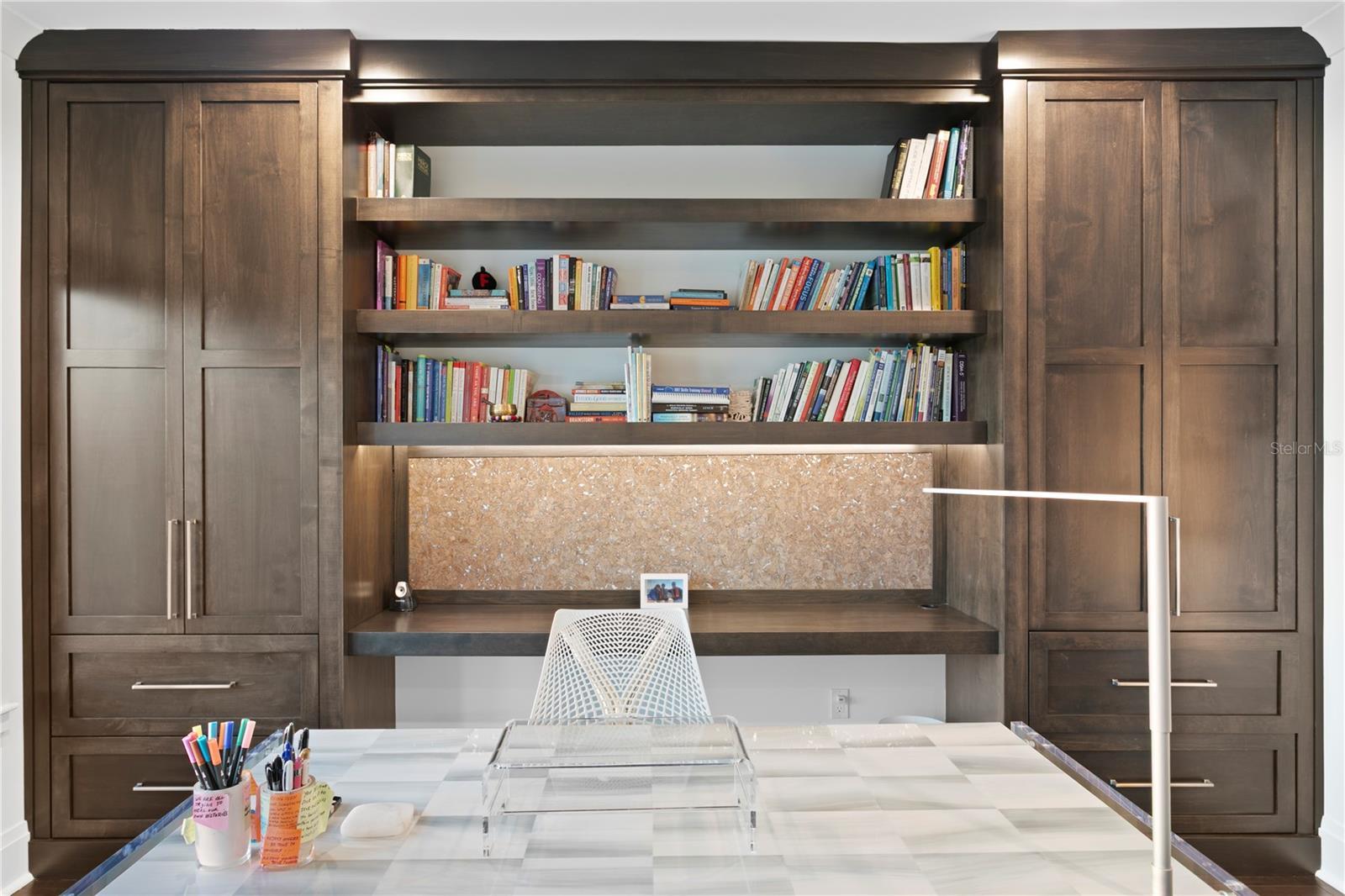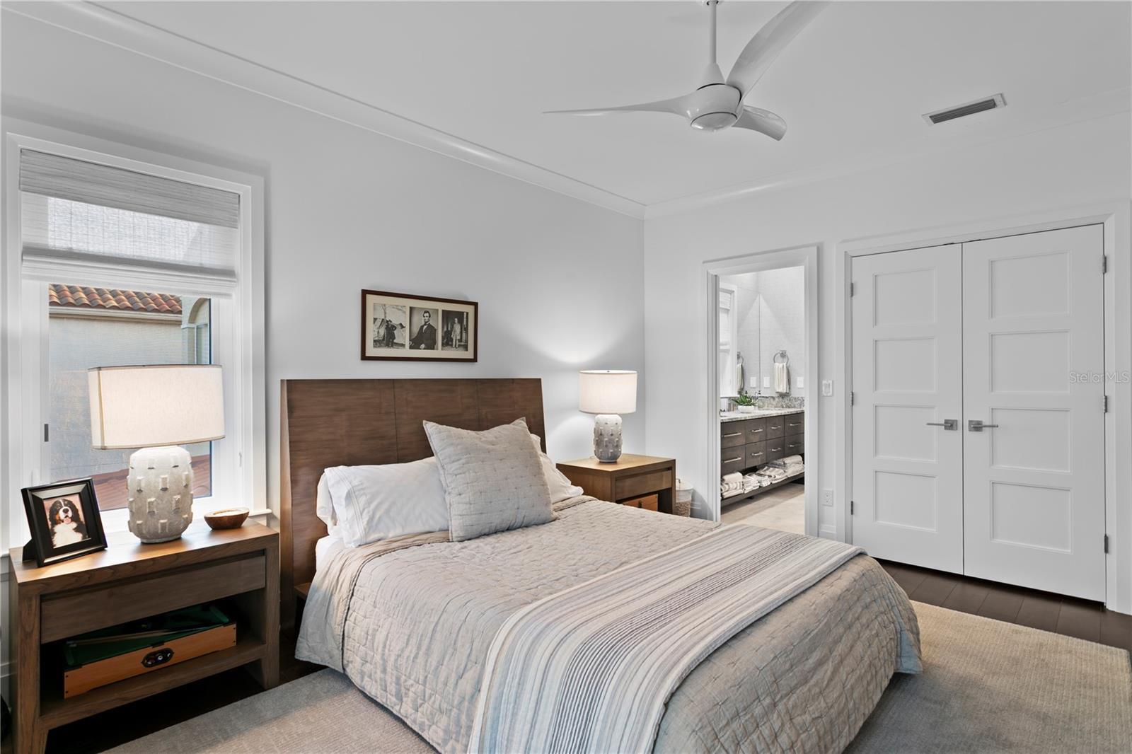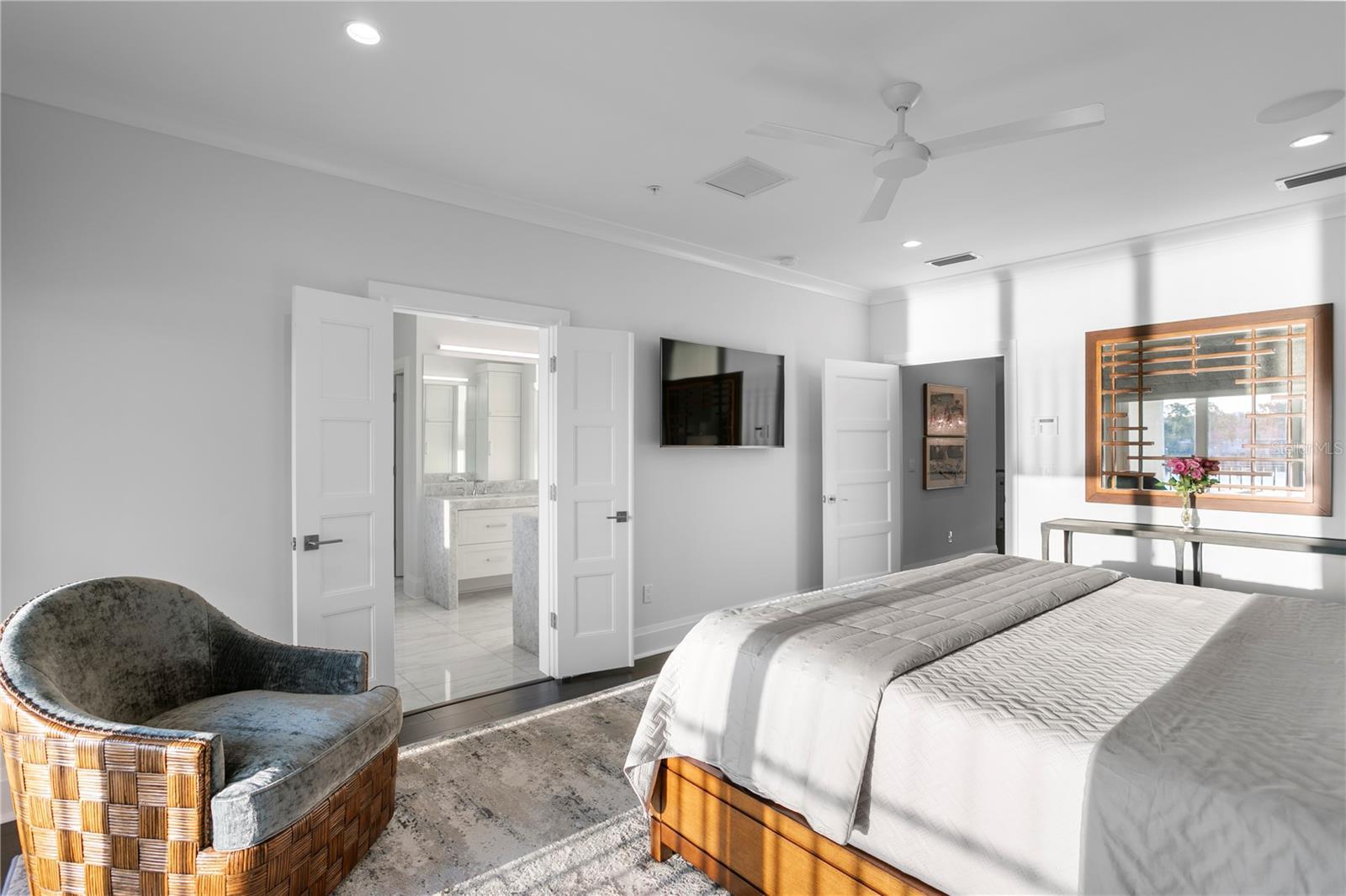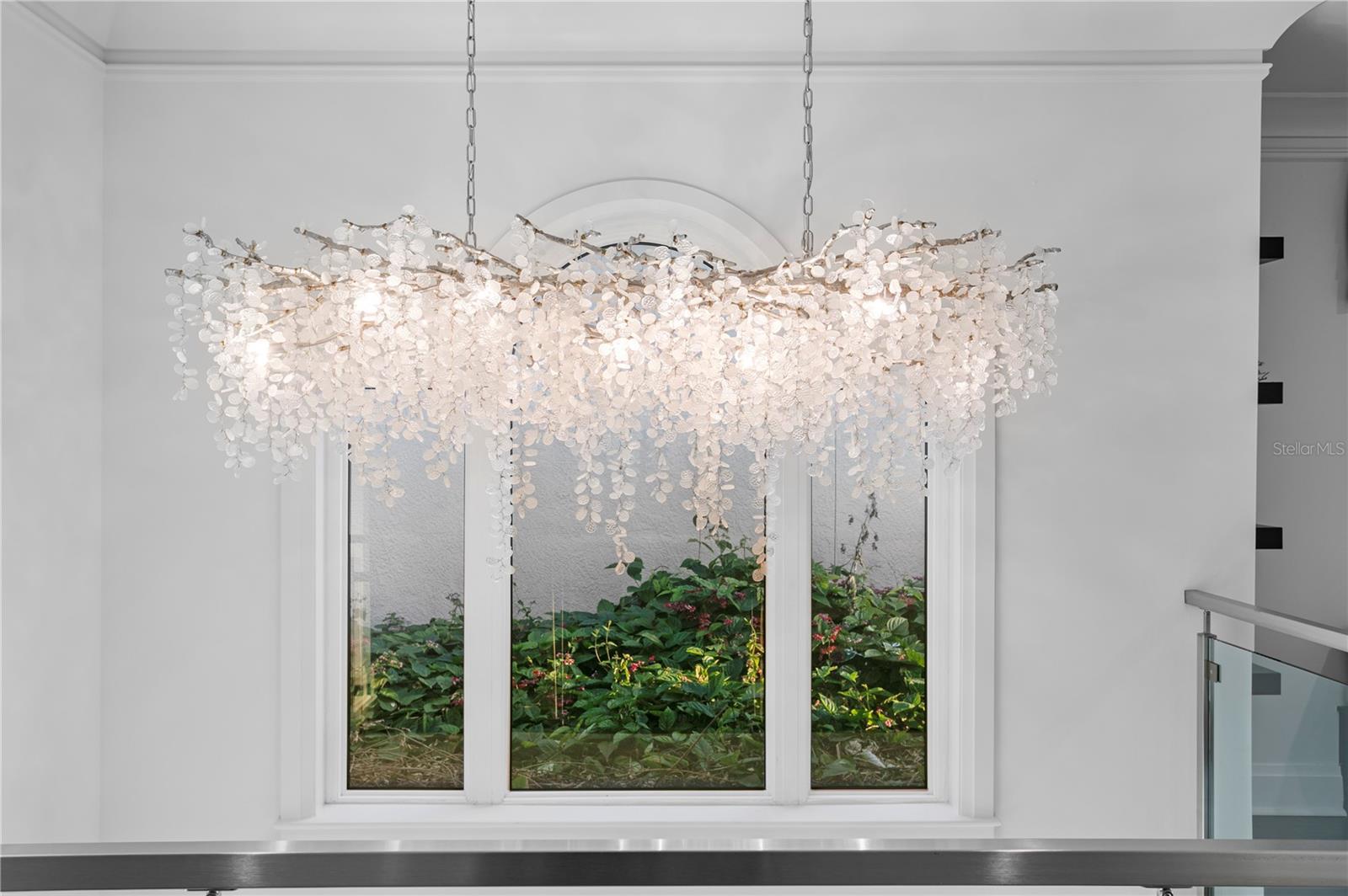 - Ceiling Fans(s), Crown Molding, Eat-in Kitchen, Elevator, Kitchen/Family Room Combo, Living Room/Dining Room Combo, Open Floorplan, PrimaryBedroom Upstairs, Solid Surface Counters, Solid Wood Cabinets, Split Bedroom, Stone Counters, Thermostat, Walk-In Closet(s), Window Treatments