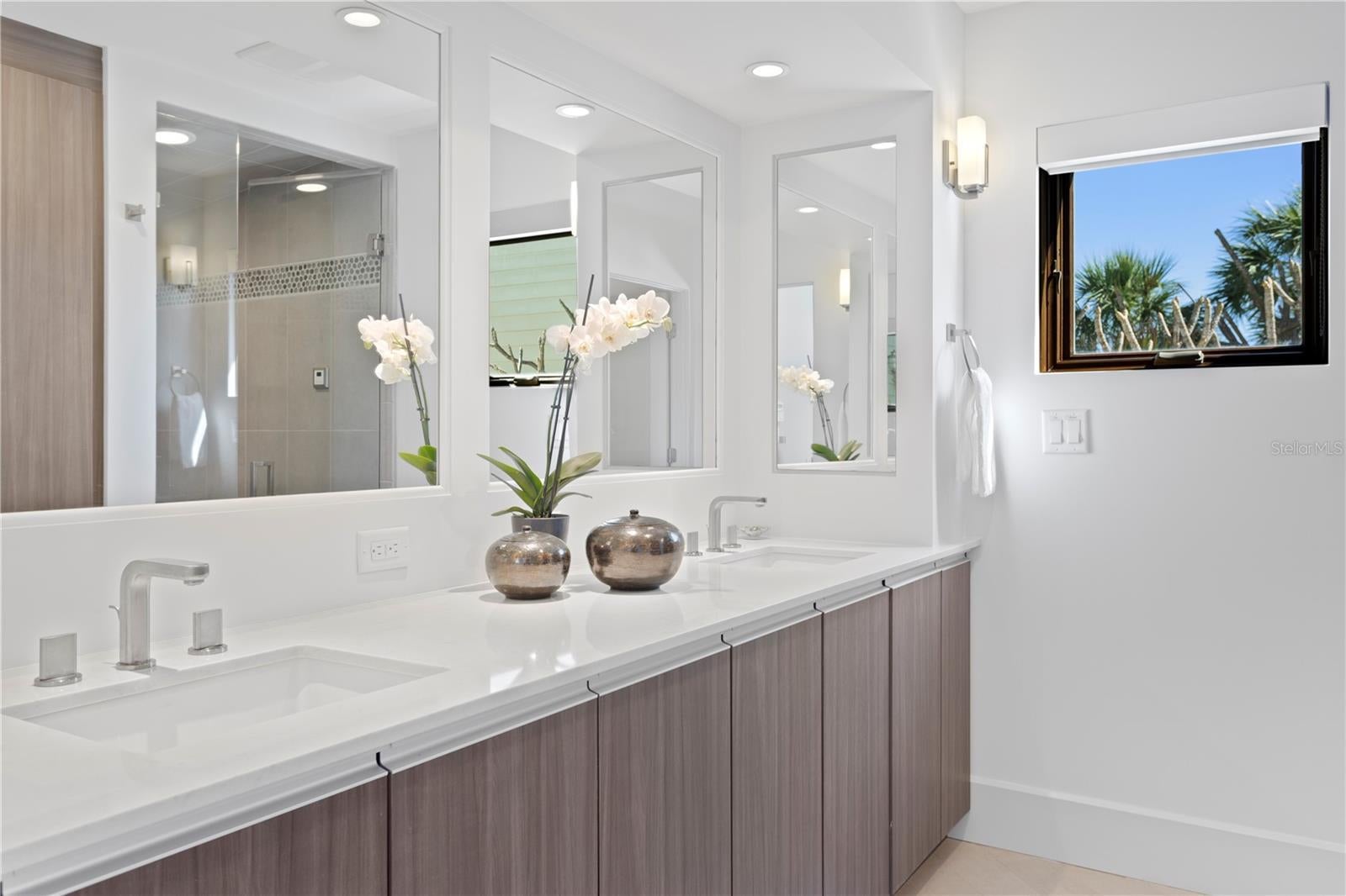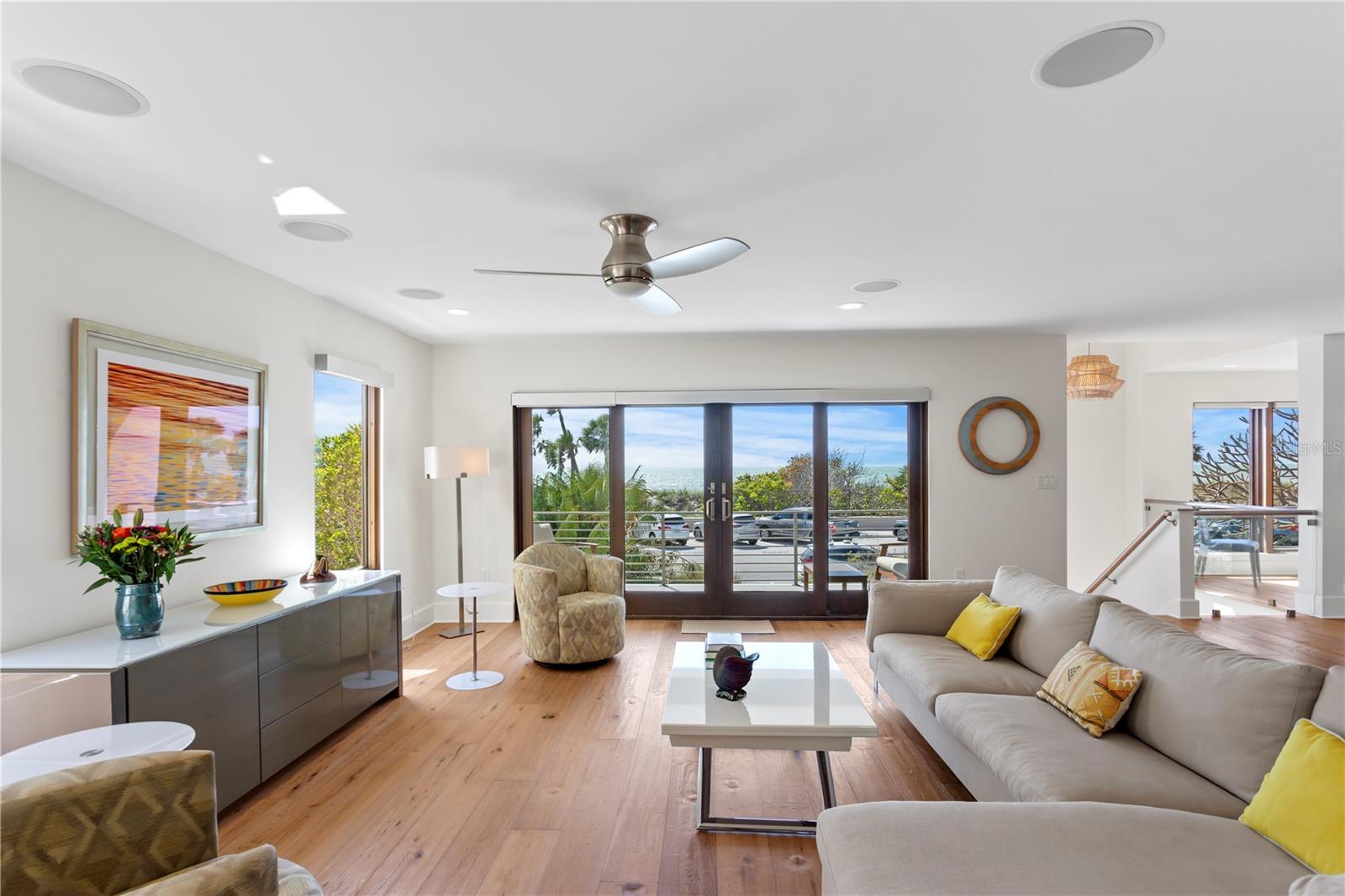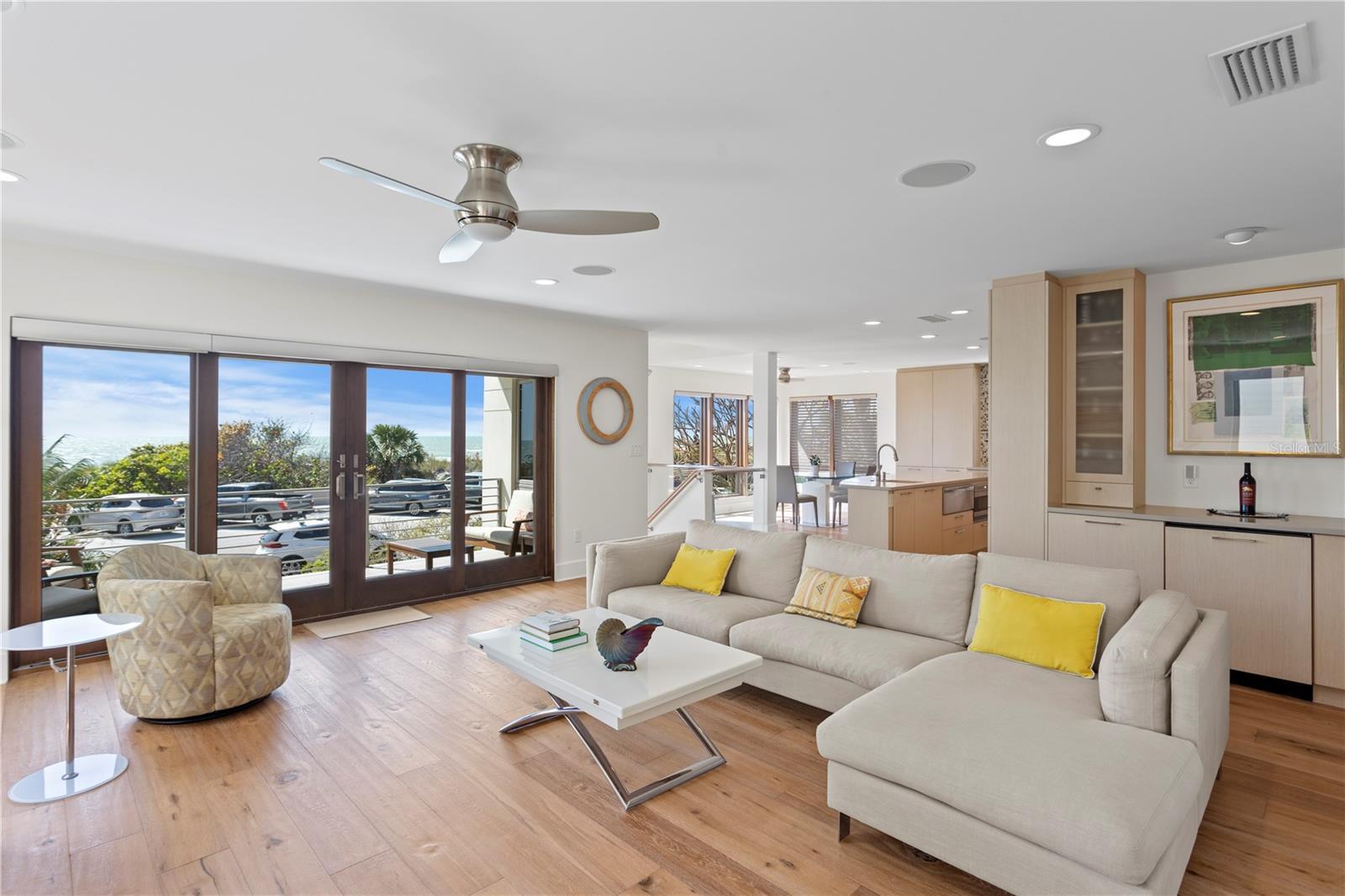 Modern Gulf-View Masterpiece | 4 Bed, 4 Bath | Custom Luxury Finishes. This contemporary architectural gem offers breathtaking, unobstructed Gulf views and is move-in ready. Renovated in 2013, the home features approximately 2,350 sq. ft. of light-filled living space upstairs, with an additional 1,600 sq. ft. on the lower level. Designed for elevated coastal living, this 4-bedroom, 4-bath residence includes a private elevator, smart home automation, and two-zone HVAC for maximum comfort. Upper-level HVAC has UV Air Purification. The open-concept main living area features wide-plank oak flooring, while all bathrooms are beautifully tiled. The chef’s dream kitchen boasts a custom gourmet setup, including: • Viking 6-burner natural gas range with electric oven • Built-in Liebherr refrigerator • Miele dishwasher with panel matching cabinetry • Wolf builtin steam convection oven, warming drawer, and microwave • Quartz countertops The luxurious primary suite offers a spacious walk-in closet and rich dark oak flooring complemented by powered window blinds for modern convenience. Step out onto a private outdoor tile deck, perfect for morning coffee or evening relaxation. Additional amenities include laundry room, an entertainment bar area as well as a media room equipped with a 75” Sony TV and surround sound. Built for durability and peace of mind, the home features Pella and Andersen hurricane-resistant windows and sliding doors. Sprinkler system pump replaced, and all sprinklers inspected and operating 2025. The oversized garage accommodates up to two vehicles. Roof is Rolled Modified Bitumen. Flood elevation is 9 feet. Bonus: Potential for a third-floor roof deck addition to expand outdoor living and take in panoramic Gulf views