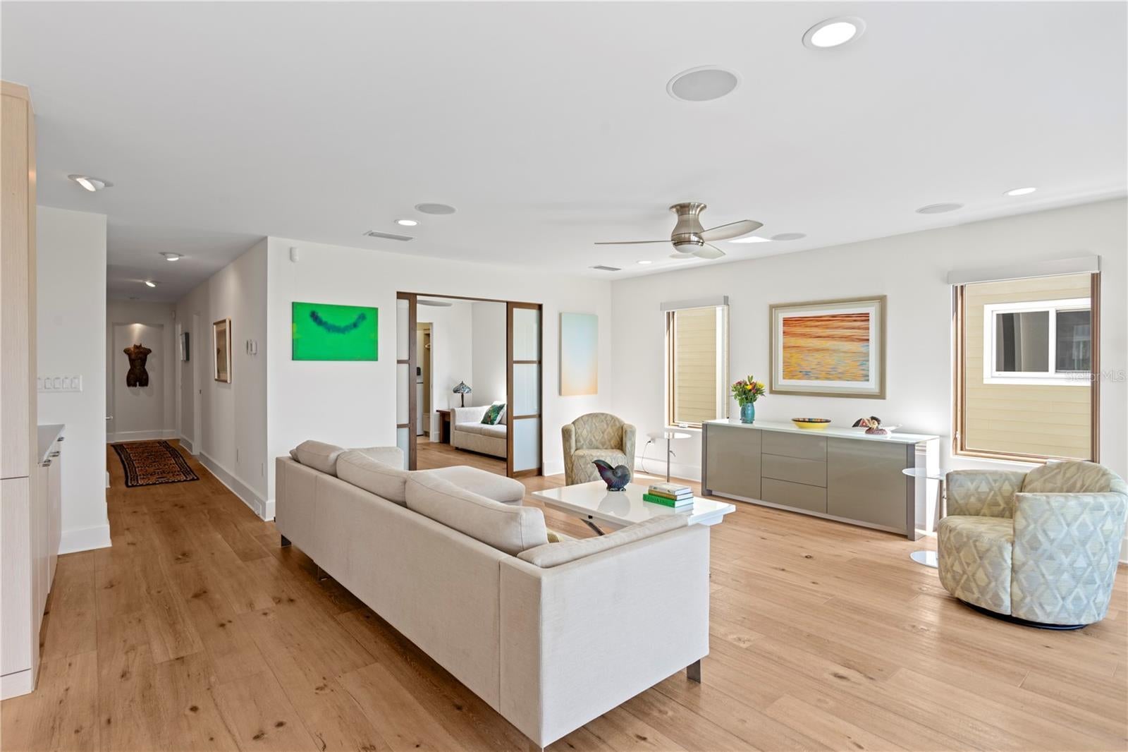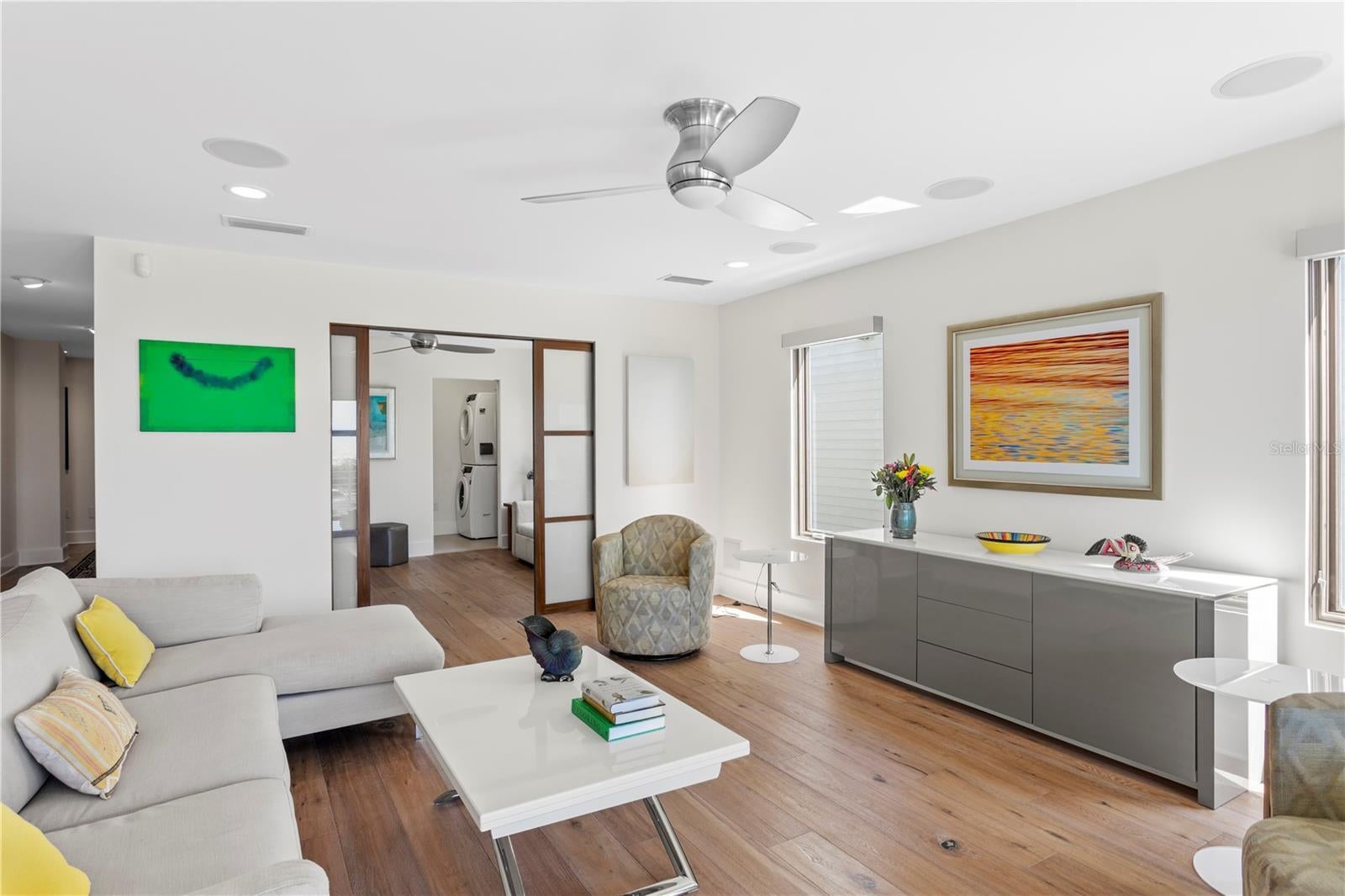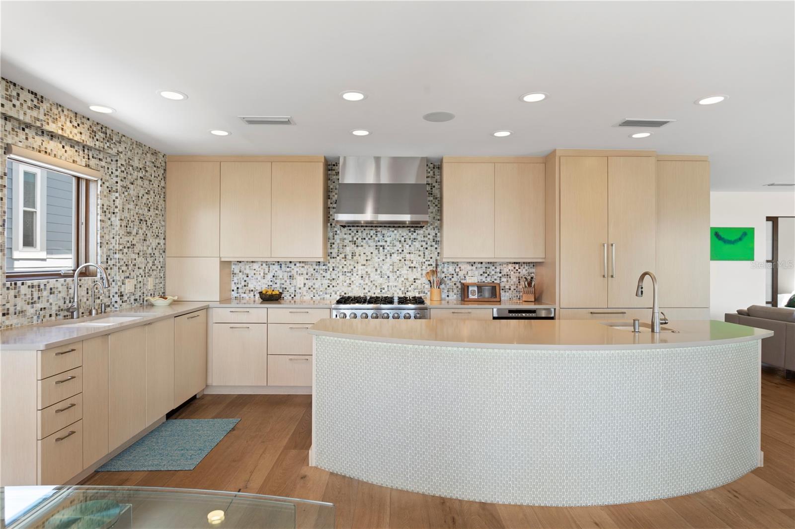 Modern Gulf-View Masterpiece | 4 Bed, 4 Bath | Custom Luxury Finishes. This contemporary architectural gem offers breathtaking, unobstructed Gulf views and is move-in ready. Renovated in 2013, the home features approximately 2,350 sq. ft. of light-filled living space upstairs, with an additional 1,600 sq. ft. on the lower level. Designed for elevated coastal living, this 4-bedroom, 4-bath residence includes a private elevator, smart home automation, and two-zone HVAC for maximum comfort. Upper-level HVAC has UV Air Purification. The open-concept main living area features wide-plank oak flooring, while all bathrooms are beautifully tiled. The chef’s dream kitchen boasts a custom gourmet setup, including: • Viking 6-burner natural gas range with electric oven • Built-in Liebherr refrigerator • Miele dishwasher with panel matching cabinetry • Wolf builtin steam convection oven, warming drawer, and microwave • Quartz countertops The luxurious primary suite offers a spacious walk-in closet and rich dark oak flooring complemented by powered window blinds for modern convenience. Step out onto a private outdoor tile deck, perfect for morning coffee or evening relaxation. Additional amenities include laundry room, an entertainment bar area as well as a media room equipped with a 75” Sony TV and surround sound. Built for durability and peace of mind, the home features Pella and Andersen hurricane-resistant windows and sliding doors. Sprinkler system pump replaced, and all sprinklers inspected and operating 2025. The oversized garage accommodates up to two vehicles. Roof is Rolled Modified Bitumen. Flood elevation is 9 feet. Bonus: Potential for a third-floor roof deck addition to expand outdoor living and take in panoramic Gulf views