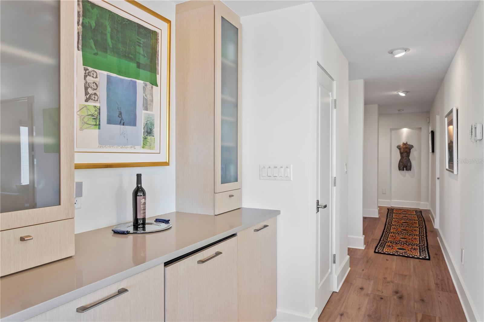 - Built-in Features, Ceiling Fans(s), Dry Bar, Eat-in Kitchen, Elevator, Kitchen/Family Room Combo, L Dining, Primary Bedroom Main Floor, Smart Home, Solid Surface Counters, Solid Wood Cabinets, Thermostat, Walk-In Closet(s), Wet Bar, Window Treatments