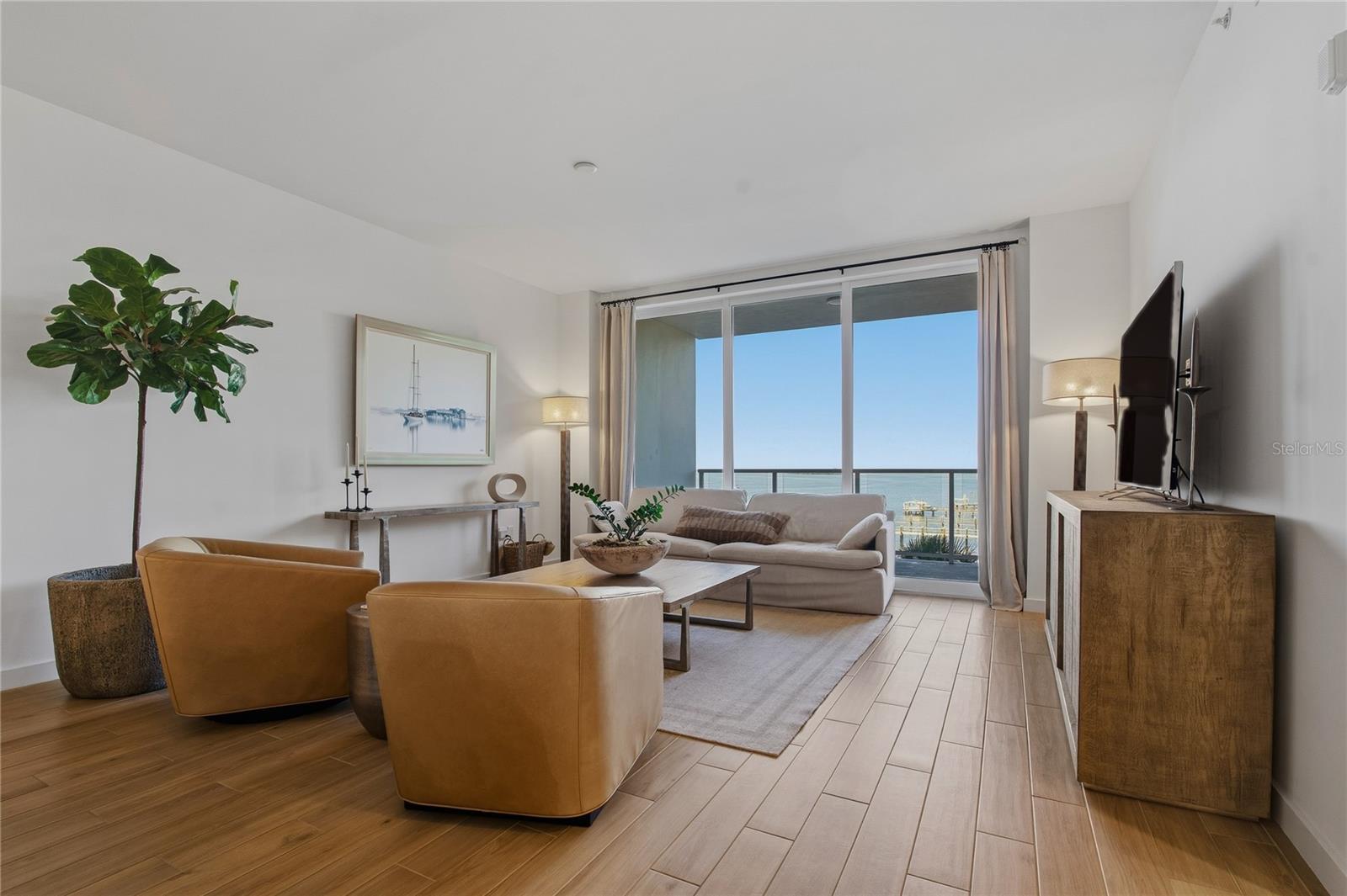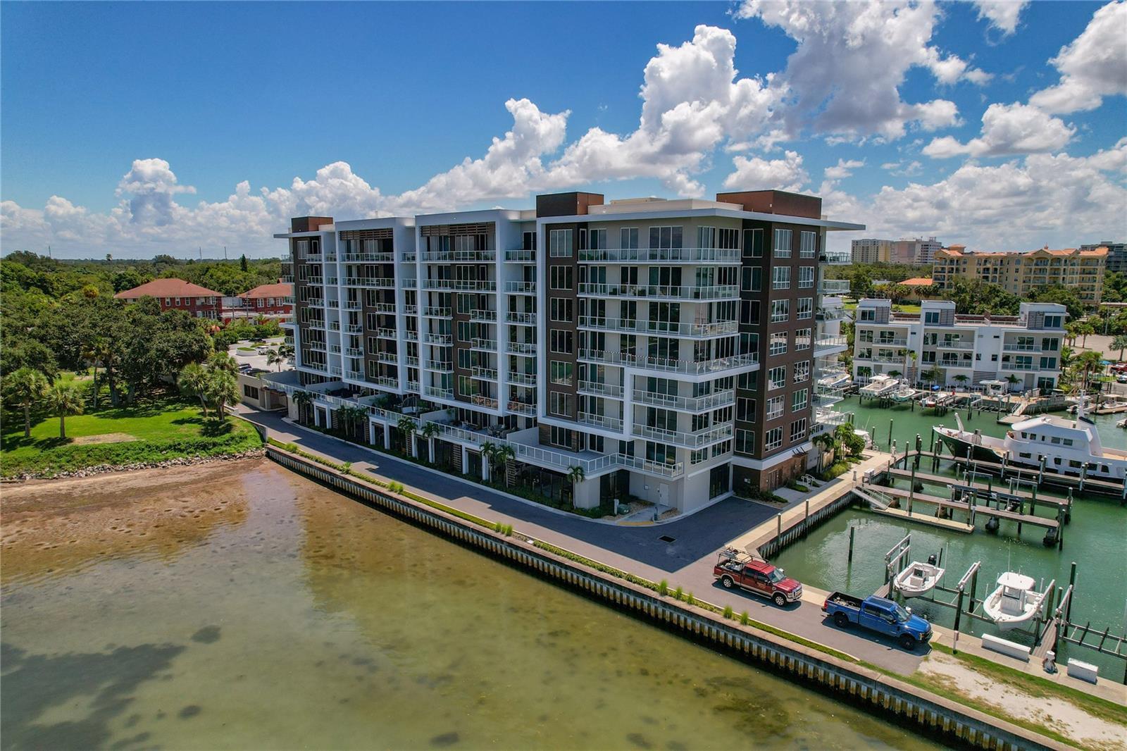 Under contract-accepting backup offers. **Welcome to Your Dream Home: An Exquisite Waterfront Condominium at Marina Bay 880!** Step into unparalleled luxury and privacy at the highly exclusive Marina Bay 880. Offering breathtaking, exclusive waterfront views facing the Clearwater Causeway and the Intracoastal Waterway, this nearly brand-new residence, built in 2021, redefines opulent living with exquisite upgrades throughout. Experience an open and vibrant living space filled with natural light, featuring state-of-the-art thermal impact-resistant sliders. This smart home is equipped with top-of-the-line appliances and one of the few units that includes a full-size laundry room with a luxurious pantry. Enjoy one of the most desirable private patios in Marina Bay—ideal for savoring incredible harbor and water views. Additional highlights include designer porcelain tile, smart home features, built-ins throughout, remote-controlled rolling blinds designer ceiling fans, a stunning Restoration Hardware chandelier, and a brand-new, state-of-the-art Samsung high-efficiency front loader washer and dryer. Custom his-and-hers walk-in closets add a touch of sophistication and practicality. This unique floor plan is one of only four like it in the entire development, featuring a spacious den that can be easily converted into a third bedroom. Enjoy the convenience of two assigned under-building parking spots and secure private storage. The property offers enhanced security and privacy, ensuring a tranquil living environment. Additionally, it is located near highly rated schools, making it an ideal choice for families. Embrace a lifestyle like no other with 24-hour concierge service and resort-style amenities! Dive into the waterside Olympic-size infinity lap pool with spa, relax around the inviting outdoor fire table, and enjoy a pet-friendly community. Stay active in the state-of-the-art gym/fitness center, unwind in the wet and dry sauna, and practice your putting on the outdoor green. With electronic keyless entry and on-site security, your peace of mind is assured. Don’t forget to bring your boat—leasable boat slips are available at the on-site marina! Meticulously curated designer furnishings are negotiable, allowing you to move in and start living your dream immediately. Centrally located just minutes from renowned Clearwater Beach and the charming communities of Dunedin, Palm Harbor, and Tarpon Springs, you'll also have easy access to the vibrant city of Tampa and two international airports. Schedule your showing today and discover the exceptional lifestyle that awaits you at Marina Bay 880! Be sure to check the attachments for details on all the luxurious upgrades and additional information.