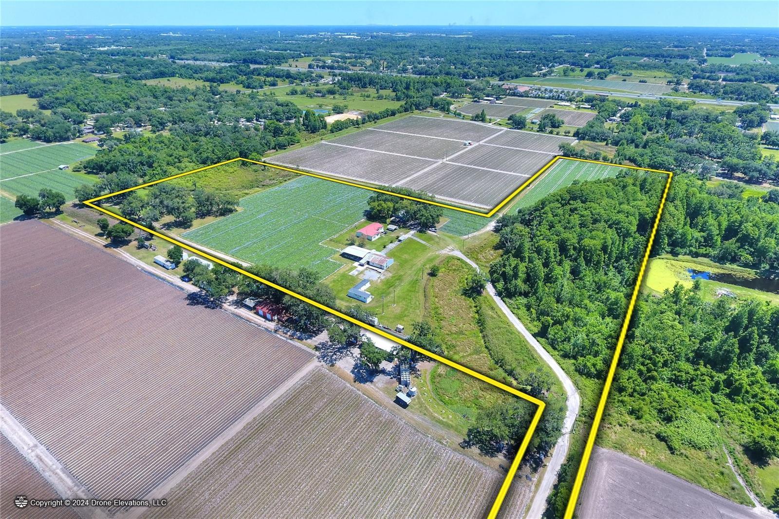 24.24± acres on Stafford Road in Plant City, located along the explosive I-4 corridor, just a mile away from the I-4 on ramp. This property includes rental income from the homes and farmland ($47,584 annual gross), the improvements consist of a 2,285 SF manufactured home (2004),1,758 SF manufactured home (1996), an office, a large pole barn on concrete slab with a cooler previously used for the vegetables farmed onsite. There is 3 phase power run to the cooler and barn, and each home is metered separately. There are 2 wells, each home has its own. The site is perimeter fenced and consists of 8.5± acres of net plastic irrigated farmland, currently leased for vegetables. This property would make a beautiful homestead amidst the scattered oaks, with a private driveway, nestled between the producing farmland. A private oasis, while minutes from the conveniences of Plant City.