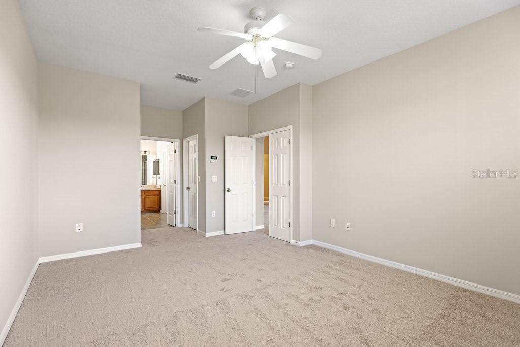 - Ceiling Fans(s), High Ceilings, Open Floorplan, Primary Bedroom Main Floor, Solid Surface Counters, Solid Wood Cabinets, Split Bedroom, Thermostat, Walk-In Closet(s)