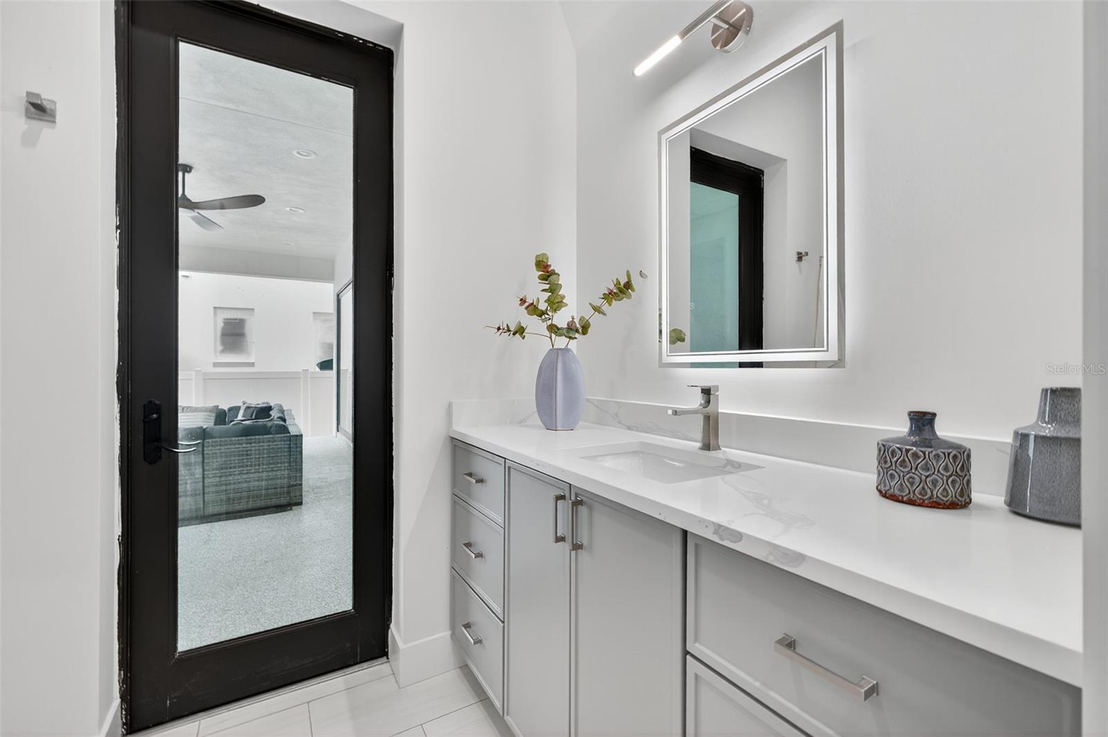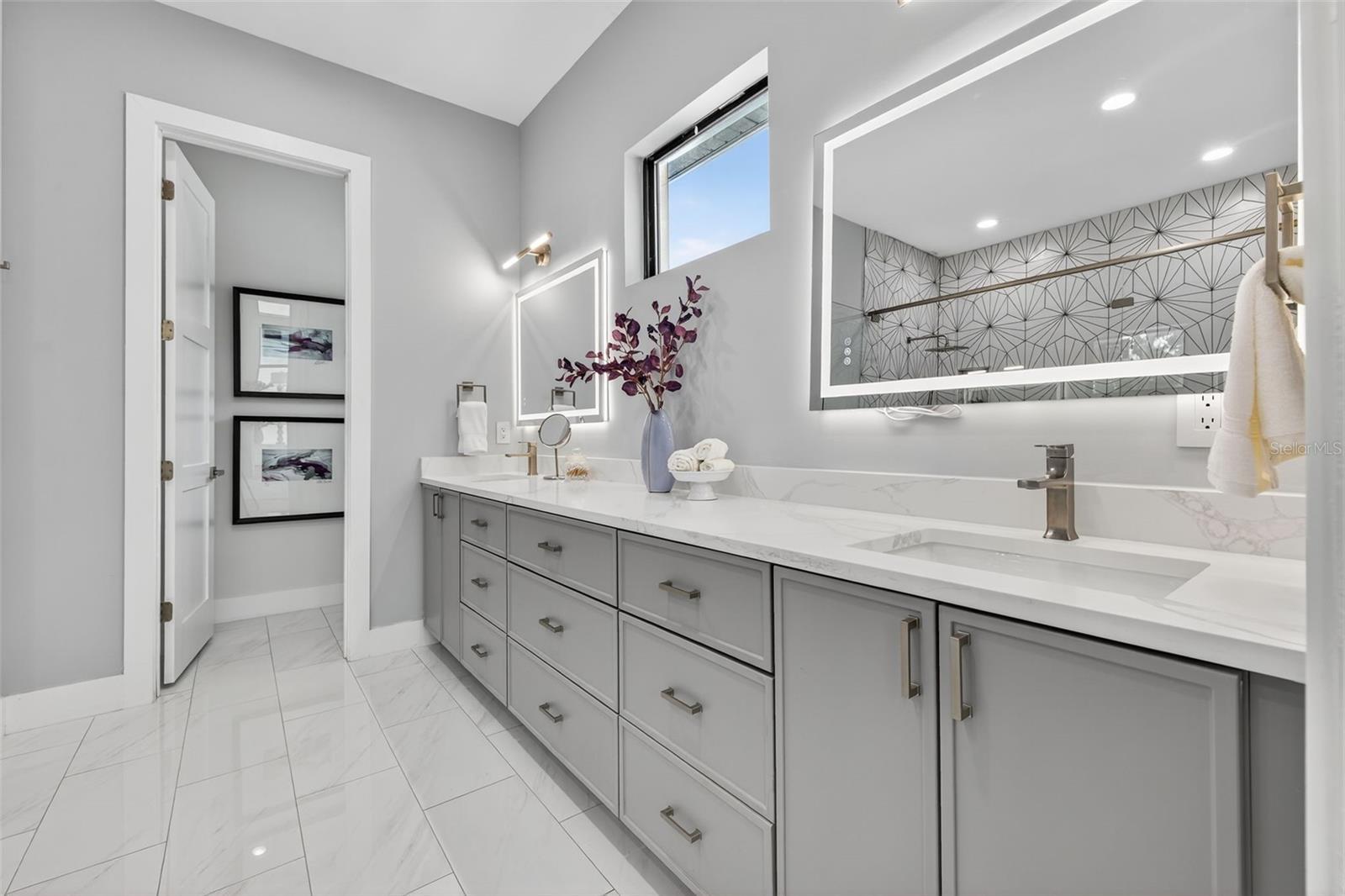 Welcome to Gulfport’s newest five-home enclave, a boutique collection of beautifully crafted European modern-designed Kelner Homes. This exceptional York I Model offers just over 3,200 sq/ft of thoughtfully designed living space, solid block-on-block construction, and PGT hurricane impact-rated windows and doors—all elevated 12 feet above sea level for added peace of mind. From the moment you step inside, the home’s refined design and natural light set the tone. A flexible front room serves perfectly as a bedroom, office, or media space and includes a built-in wet bar including a wine refrigerator that's ideal for remote work or welcoming guests. The formal dining room with room for 12 guests sits just off the chef’s kitchen, creating a seamless layout for entertaining. The kitchen is a true showpiece, showcasing a Bosch stainless steel refrigerator, cooktop, range hood, and built-in oven with a combination microwave/convection unit. Elegant quartz countertops, 42" cabinets with under-cabinet lighting, LED accents, a convenient Lazy Susan, and a stunning 10-foot waterfall-edge island—comfortably seating six—complete this exceptional culinary space. The open living area is anchored by an elegant feature wall and expansive 4-panel sliding glass wall that fully open to the outdoors. Step onto the 24’ x 11’ covered lanai to enjoy Gulfport’s breezy evenings and a beautiful yard with ample room to add a pool and spa. Rear alley access leads to the attached two-car garage, conveniently positioned next to a mudroom and full bath—perfect for guests or future poolside use. Upstairs, a large sunlit loft provides a versatile second living area—ideal for movies, gaming, or a quiet reading retreat. Two spacious guest bedrooms each include walk-in closets and private ensuite bathrooms, offering comfort and privacy for everyone. The laundry room with ample countertop space and cabinets is smartly placed on this level with access from both the hallway and the primary suite. The expansive master suite is a true sanctuary, featuring an oversized walk-in closet and a spa-inspired bathroom with a double vanity, Roman soaking tub, glass-enclosed shower, and Kelner’s signature smart mirrors. Every finish reflects modern elegance paired with everyday functionality. Located just steps from the tranquil trails of Clam Bayou Nature Park, this enclave embodies the spirit of coastal living while offering luxury and expert craftsmanship. This is more than a home; it’s a thoughtfully designed coastal retreat crafted to elevate your lifestyle. Schedule your private showing today and experience the quality and comfort of a Kelner Home. This isn’t just any home---it’s a Kelner Home!
