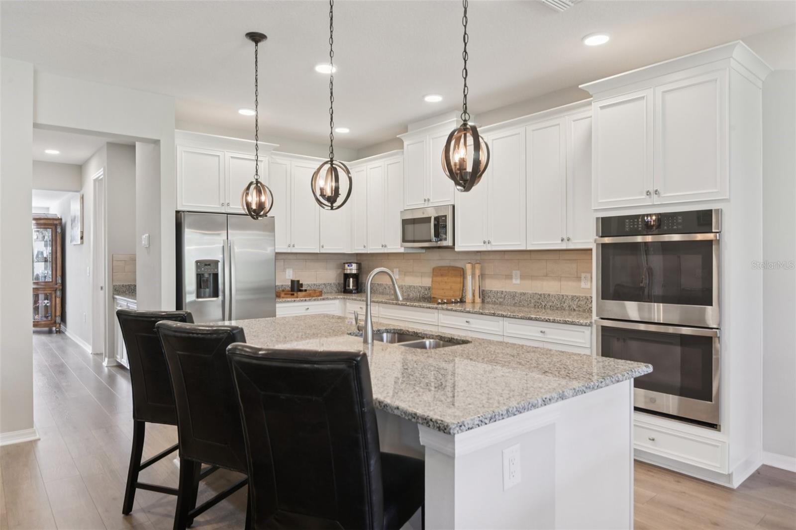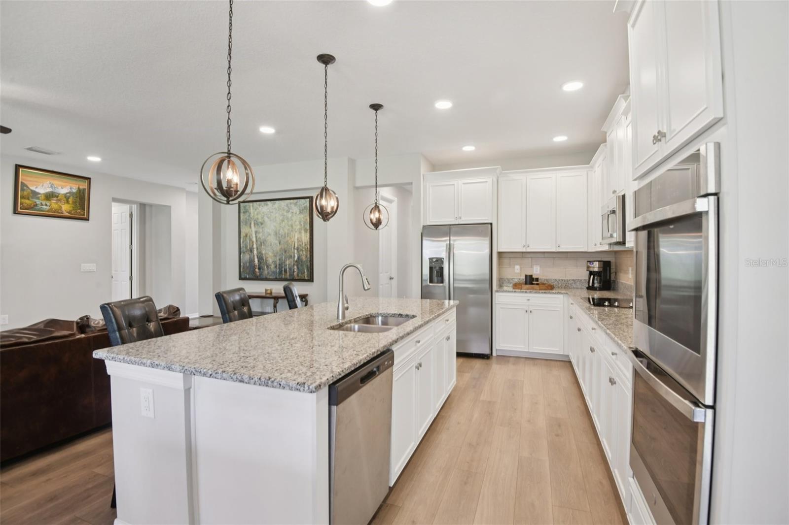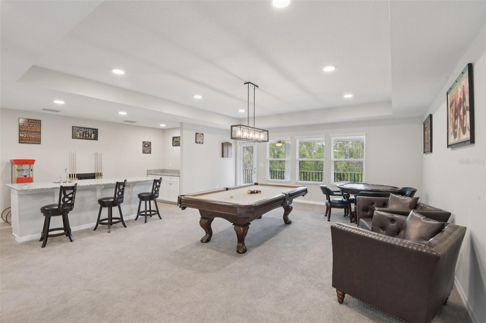 A Serene Luxury Estate Near the Land O’ Lakes Area. Welcome home to this stunning 5,452-square-foot luxury estate — a masterpiece of design and comfort offering 5 (possible–6) bedrooms, 4 full baths, and 2 half baths. Built in 2023 and tucked away on a private cul-de-sac, this elegant residence sits on a rare one-third-acre lot surrounded by nature, backing to peaceful conservation and a serene pond. Enjoy the sights and sounds of nature while being minutes from everything the Tampa Bay area offers. Step through the grand two-story foyer and feel the warmth and sophistication of this home’s thoughtful design. Soaring ceilings, a second-floor overlook, upgraded 8-foot doors, and custom chandeliers create a sense of grandeur, while natural light enhances every space. The inviting living room serves as the heart of the home, featuring a custom electric fireplace and three-panel sliding doors opening to a magnificent 55-foot lanai — perfect for morning coffee or sunset gatherings with tranquil water and conservation views. The gourmet kitchen is a dream for the inspired home chef, with upgraded white cabinetry, premium countertops, double ovens, cooktop, extended island with pendant lighting, and a large butler’s pantry. The adjoining breakfast café opens to the lanai, creating a seamless indoor-outdoor flow. Every detail was chosen for beauty and function, from high-end finishes to the oversized walk-in pantry. The first-floor primary suite offers true luxury and tranquility, featuring spacious dual walk-in closets and a spa-inspired bath with wood-look tile flooring. Large windows frame private views of the surrounding nature, creating a peaceful retreat within your own home. Throughout the residence, you’ll find designer lighting, upgraded flooring, wrought iron stair railings, and oversized closets in every bedroom. The downstairs laundry room includes custom shelving and a utility sink, while the smart home system, keypad garage entry, and upgraded belted garage door opener add convenience and security. Upstairs, a large game room with pool table and a separate theater room provide perfect spaces for entertainment and relaxation. Outdoor living is equally impressive — with a spacious lanai, upgraded balcony, and brick paver driveway and walkways. The backyard is pre-plumbed for a future pool and ready to become your personal sanctuary. Located on the border of Land O’ Lakes, this home offers peaceful surroundings with proximity to top destinations. You’re just 35 minutes from Tampa International Airport, 10 minutes to the suncoast Parkway, close to major hospitals, 15 Minutes to Speros Moffitt Cancer Research Center, Tampa Premium Outlets, 25 minutes to The Shops at Wiregrass, 45 Minutes to MacDill Air Force base. Nearby are Downtown Tampa, top-rated schools, beautiful Florida State Parks, and award-winning Gulf beaches. The sought-after Talavera community provides resort-style amenities, including a clubhouse, sparkling pool, toddler splash zone, tennis courts, basketball court, and playground. With peaceful streets, and convenient access to shopping and highways, Talavera perfectly blends luxury and community charm. This home is a lifestyle where modern luxury meets the tranquility of nature. Every sunrise brings peaceful pond views, and every evening ends with soft breezes under the lanai lights. This one-of-a-kind estate offers elegance, comfort, and privacy in one of the most desirable locations north of Tampa Bay!