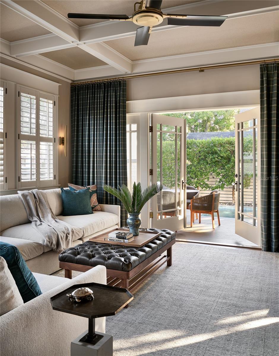 Step into timeless sophistication at this exquisitely restored Hyde Park residence, masterfully reimagined in 2025 where historic elegance meets refined modern luxury. The home underwent a comprehensive, year-long interior and exterior renovation led by award-winning Aspen-based designer Anne Grice in collaboration with Noble Haus Studios, resulting in a residence of exceptional quality, detail, and architectural integrity. Offering nearly 3,100 square feet of thoughtfully curated living space, this 4-bed, 3-bath home sits on a large, sun-filled corner lot. Designed with an exceptional layout that prioritizes privacy and separation of space, the home lives substantially larger than its square footage, offering multiple distinct living areas that feel both expansive and intimate. The first level showcases superior craftsmanship with rich hardwood floors, detailed crown molding, plantation shutters, and designer finishes throughout. The formal living room is anchored by coffered ceilings, period & custom lighting, and a capped fireplace, creating an elegant yet inviting setting. A private office just beyond features bespoke lighting, recessed illumination, and custom built-in bookcases. The formal dining room, enhanced by wainscoting and matching coffered ceilings, is ideal for both intimate dinners and refined entertaining. The expansive kitchen serves as the heart of the home and is thoughtfully designed for both daily living and elevated entertaining, featuring custom cabinetry, refined stone surfaces, and a layout that balances beauty with function. A substantial island anchors the space, while a charming built-in breakfast nook adds warmth and everyday practicality. The adjoining family room, framed by coffered ceilings and French doors, opens seamlessly to the rear patio, offering effortless indoor-outdoor living. The main-level primary suite is a true private retreat, featuring a spa-inspired bath with dual marble vanities, an enclosed walk-in shower with dual shower heads, a soaking garden tub, and a generous walk-in closet with custom built-ins. A second main-floor bedroom with custom lighting and built-in closet storage, a marble-clad full bath, and a conveniently located laundry area complete the first level. Upstairs, two additional bedrooms, a full bath with dual marble vanities and a shower-tub combination, and a cozy sitting room provide flexible and comfortable living spaces. The outdoor setting is equally refined, designed for relaxation and entertaining with a covered patio, sun lounger deck, paver terrace, and a sparkling in-ground pool. A fully fenced, turfed yard is complemented by a charming gazebo and an outdoor shower, creating a private and serene oasis. Meticulously maintained and thoughtfully updated, the home features newer systems and extensive high-end improvements, including a roof (2019), AC (2020), fully renovated bathrooms, custom cabinetry, refinished floors, curated wall coverings and drapery, fresh interior and exterior paint, new front doors, enhanced insulation, and professionally updated landscaping. Enjoy an unrivaled prime location near the sophisticated Hyde Park Village and the vibrant SoHo District, placing local shops, world-class restaurants, and exclusive entertainment just moments away. The home is zoned for top-rated public schools: Mitchell Elementary, Wilson Middle School, and Plant High School.