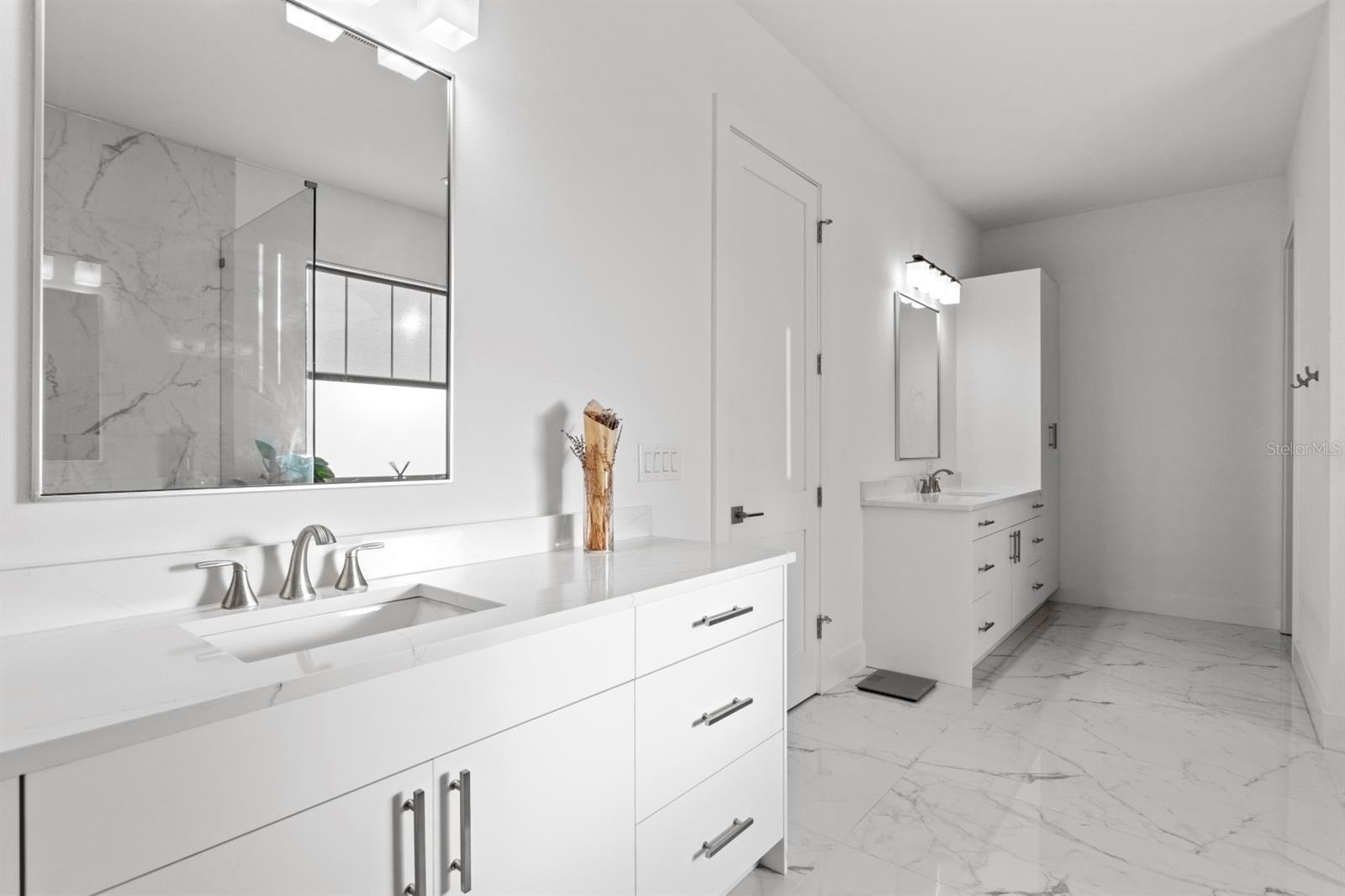 Under contract-accepting backup offers. Located in highly sought-after Palma Ceia and walking distance to Roosevelt Elementary, this 2022 Momentum Homes build offers the best of South Tampa living in Flood Zone X. Thoughtfully designed and crafted with all-block construction (both levels) and Low-E impact windows, this home combines modern durability with timeless style. Inside, you'll find an open, airy layout perfect for both everyday living and easy entertaining. The kitchen stands out with matte white 42" soft-close cabinetry, Thermador appliances - including a double wall oven combo, 36" gas range, custom hood, French-door refrigerator, beverage fridge, and microwave drawer - and a seamless flow into the dining and living spaces. French white oak flooring runs throughout, complemented by a custom staircase that elevates the home's clean, modern aesthetic. A flexible first-floor bedroom serves perfectly as a guest suite or dedicated office. Upstairs, the primary suite feels like a retreat with two walk-in closets and a spa-inspired bath offering dual vanities, a freestanding tub, and a frameless glass shower. Outdoor living shines with a screened lanai, and vinyl-fenced yard. A brick paver driveway, patio, and front porch complete the polished exterior. All within a mile of favorite South Tampa restaurants, Bayshore Boulevard, and the beloved Roosevelt/Coleman/Plant school district.