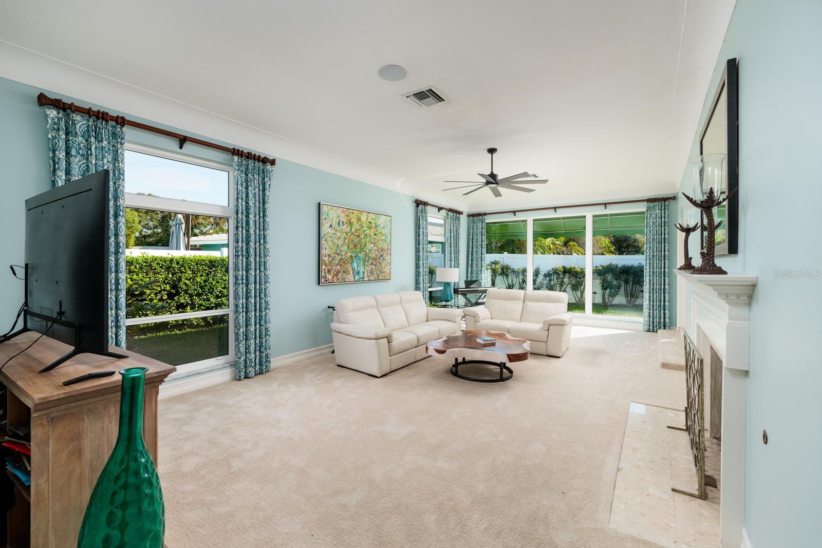 PRICE ADJUSTMENT Welcome to this spectacular home overlooking the third hole of the newly restored Dunedin Golf Club! Rarely does a golf course home of this caliber become available, especially one ideally on a quiet cul-de-sac surrounded by majestic oak trees. This beautifully updated four-bedroom, 3.5-bath residence with a separate office/den offers an impressive 3,395 square feet of living space, making it one of the largest homes in sought-after Fairway Estates. A major renovation in 2013 reimagined the layout to provide ideal spaces for everyday living and entertaining. The chef’s kitchen is a showstopper, featuring a large center island, custom cabinetry, granite countertops and top-of-the-line GE Monogram stainless steel appliances, including a 48-inch, six-burner gas range with dual ovens (36-inch and 12-inch). A dedicated bar with wine refrigerator and ice maker makes hosting friends a breeze. Multiple living areas include a cozy family room off the kitchen, and a spacious formal living room filled with natural light from expansive windows. The living and dining rooms feature gas-ready fireplaces, adding warmth and charm. The elegant formal dining room provides an ideal setting for memorable meals. The primary suite is generously sized, offering a walk-in closet and a luxurious en-suite bath with dual vanities, custom cabinetry and granite counters. Three additional large bedrooms feature full-wall closets for ample storage, while the separate office could easily serve as a fifth bedroom if desired. Go outside to enjoy over 500 square feet of screened lanai with a built-in gas grill, ideal for relaxing or entertaining while overlooking the beautifully renovated golf course. The brick-paver patio with seating wall provides even more outdoor enjoyment. Additional highlights include a newer roof (2021), hurricane-impact windows and sliders, new fascia, a two-car side-entry garage and a professionally landscaped yard with irrigation system. Fairway Estates is a golf-cart-friendly neighborhood that sits just a short distance from Dunedin Causeway, Honeymoon Island, the Pinellas Trail and all the restaurants, breweries and shops in downtown Dunedin. If you’ve been dreaming of a stunning home on the historic former PGA course at Dunedin Golf Club, your search ends here. Welcome home.