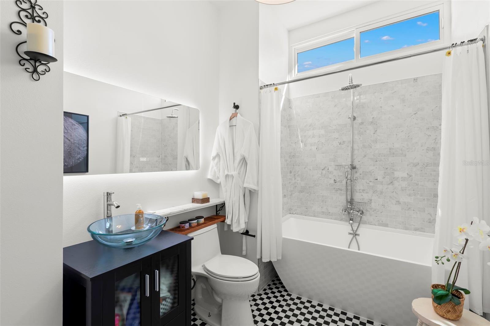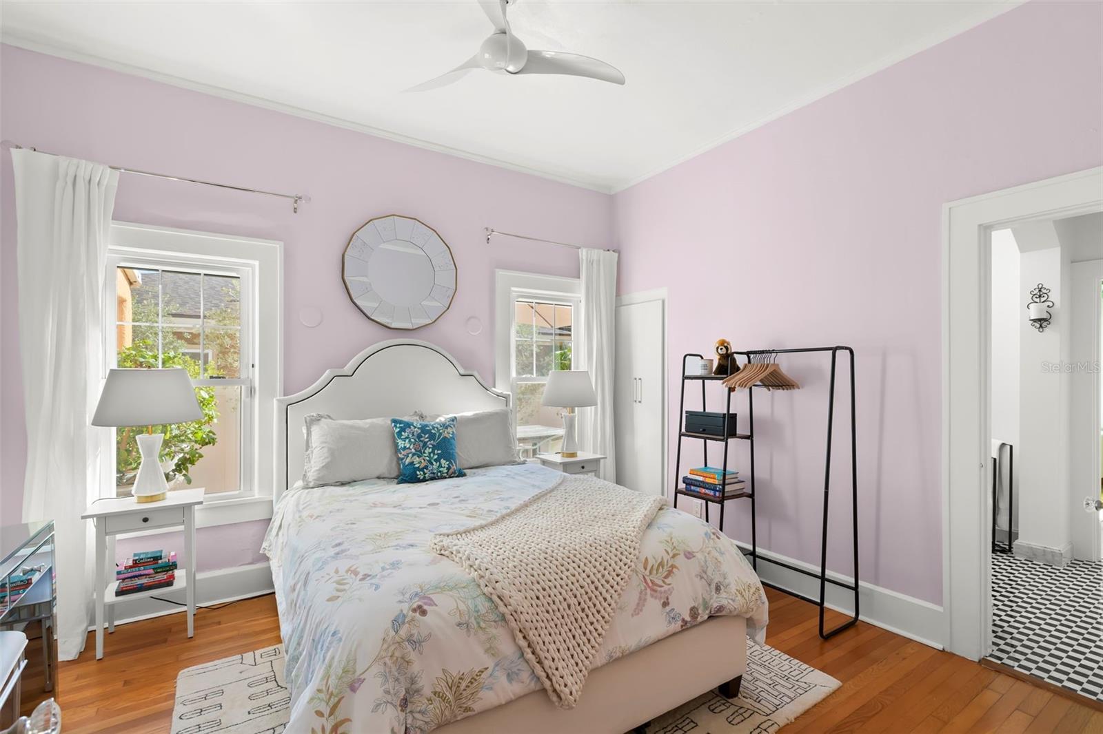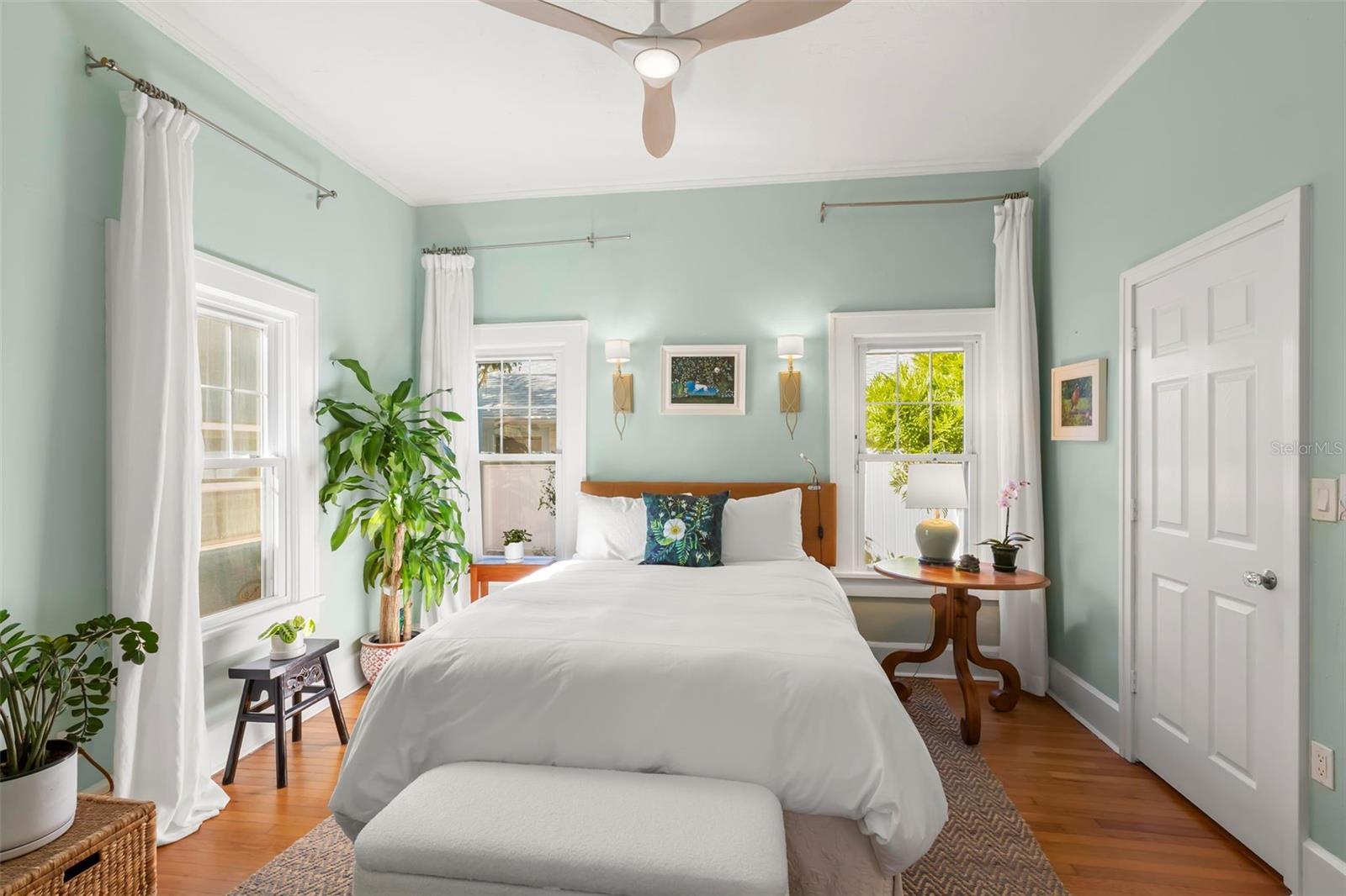 Step into the romance of Mediterranean architecture seamlessly blended with modern luxury in this stunning 1926 Spanish-style home, nestled in the heart of the sought-after Old Northeast neighborhood. Just two blocks from the waterfront and an easy stroll to downtown, this home captures the essence of St. Petersburg living—where historic charm meets vibrant city lifestyle. Inside, nearly 2,000 square feet of thoughtfully designed living space highlights the home’s original character, from the warmth of refinished hardwood floors to the inviting fireplace, and French doors opening to a Juliet balcony that beckons morning coffee or evening cocktails. The home’s floor plan feels both gracious and practical, with tall ceilings, natural light, and inviting spaces that flow effortlessly for entertaining. The kitchen was reimagined in 2023 and is now a true showpiece with custom cabinetry, designer wallpaper, a gas stove, open shelving, and statement lighting. The primary suite shines with a custom California Closet and a spa-like bathroom renovated in 2024, featuring heated floors, bespoke fixtures, and an airy layout designed for daily indulgence. Guest quarters were enhanced with a new Jack-and-Jill bath, and thoughtful touches like designer wallpaper, curated finishes make the home feel elevated and timeless. The outdoor spaces deliver an entertainer’s dream, with a sparkling pool, spa and lush tropical landscaping. The detached garage has been transformed into a stylish guest studio with loft, full bath, kitchenette, and French doors opening to a breezy covered patio with dual fans—perfect as a retreat, creative space, or guest getaway. Recent upgrades add peace of mind and efficiency, including solar panels, a new A/C system, expanded paver driveway, and redesigned tropical gardens with full irrigation. Situated in a prime X flood zone location, this home offers both historic beauty and modern convenience. With its unmatched blend of character, luxury, and location, this Old Northeast treasure is more than a home—it’s a lifestyle.