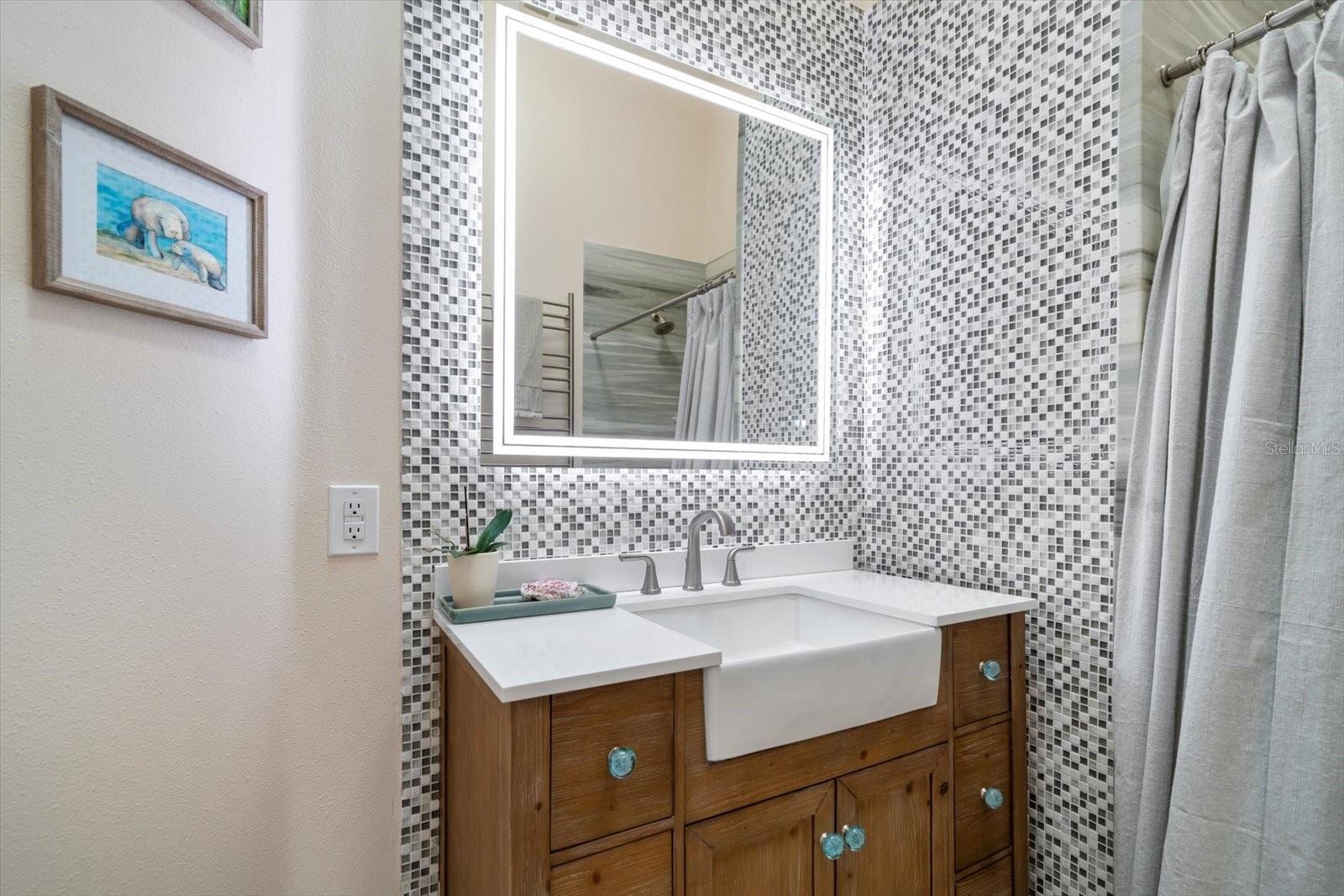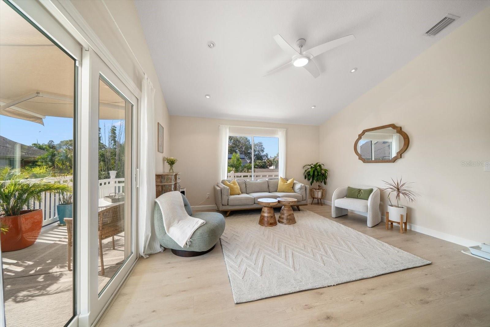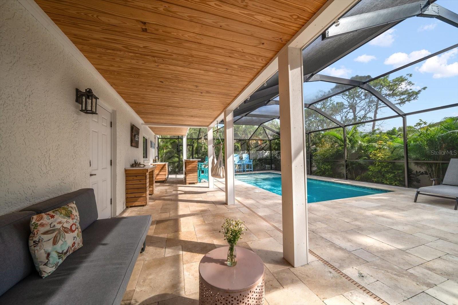 AVAILABLE FOR LONG TERM OR SHORT TERM RENTAL. Looking for a slice of paradise? This STUNNING Key West styled home is calling your name! Nestled in the highly desirable Indian Bluff Island neighborhood of Palm Harbor, Florida, this home has four bedrooms and two bathrooms upstairs, and a 400 square foot air-conditioned room and en-suite bathroom downstairs. The downstairs flex space is simply incredible- with epoxy floors and air-conditioned parking for FOUR vehicles, laundry, bathroom, and a HUGE room that could be an office, home gym, or yoga studio, this space is awesome! Upstairs, the breathtaking interior has been fully updated within the past two years, with flexible living spaces and a bright and airy floor plan, thanks to tons of natural light and recently installed hurricane rated windows, doors and skylights throughout. New luxury vinyl flooring and paint as well. In the kitchen, you’ll find solid wood cabinets with dovetail drawers, quartz countertops, and a suite of Bosch and Berazzoni appliances. An Aquasana whole-house water filtration system, renovated wood burning fireplace, completely rebuilt back deck to enjoy the stunning big sky sunrises and 30 amp RV outlet are a few amazing touches that will enhance your enjoyment of this home. And with a metal roof installed in 2019, you can rest easy knowing this home is built to last. Enjoy the Florida sunshine in your own backyard escape, with a modern saltwater pool, beautiful travertine deck, and screen enclosure installed in 2023. Or take a short stroll to the water to watch the dolphins play. Additionally, the Pinellas Trail is a third of a mile away, leading you to Wall Springs Park less than a mile from your door, and the round trip walk to Crystal Beach is about three miles. Imagine sipping sweet tea on the back porch in the morning, enjoying the trail or taking a bike ride in the afternoon, and then watching the sunset from the front porch at night, this home offers the ultimate Florida lifestyle.
