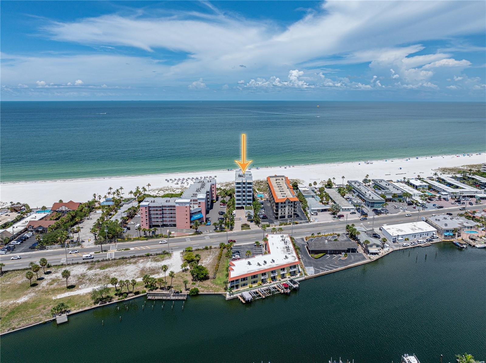 Start the New Year with the purchase of your dream home on the sand in beautiful St. Pete Beach! With only 6 units, each of which span the entire floor from east to west, The Dunes on St Pete Beach is like no other. Owned by the Developer, this exquisite condominium home has only had one meticulous owner. Located on the sugary, white sand of St. Pete Beach, the oft-voted #1 beach in the USA and top 5 in the world, the vistas from the 486sf+ western-facing balcony are simply stunning. From this enviable vantage point, the setting sun is a highlight of every day. And yet, as if in competition, incredible sunrises grace the eastern balcony, which boasts another formidable 265sf of covered space with sweeping and vast views across the boulevard and over the water and beyond to the iconic skyline of Downtown St. Petersburg and the Sunshine Skyway Bridge. Indoors the expanse between the balconies is 4,245 acsf of exceptional living space: 3 bedrooms, 3 full baths, 1 half bath, a formal dining room, office, gym area, and media room. The centerpiece is an enormous room that would not be adequately described with the more common term of ‘great room.’ Spectacular Room is more fitting. There you will find a well-appointed open-floor plan, including the kitchen, large pantry, dining area, expansive living room and, of course, a stunning Gulf view which spans almost its full width of 23'. A true “Chef’s kitchen,” this area was painstakingly designed for form and function and features all-wood cabinetry, granite countertops, Sub-Zero and Wolfe appliances, dual sinks providing both a prep area and a cleanse and clear area and more, much more. The primary bedroom encompasses a suite of rooms, including a large bedroom area that also enjoys fabulous views of the Gulf, two walk-in closets with California Closet style built-ins and an enormous primary bath suite that is unique to this building. It has two separate water closets, a massive shower enjoying natural light, dual sinks and an abundance of cabinetry and granite countertop space. There are two guest bedrooms, both en suite. The larger is at the eastern boundary of the condo, as is an office and work-out area. The other guest bedroom was used as an office and features a custom-made bookcase. Unit 400, which is located on the fifth floor, has a single, very convenient under-building parking space. There is also a 1-car garage. This is a rare opportunity to realize your dream of The Beach Life at its finest. Please note that no units at The Dunes experienced any storm damage. And, with a whole-house generator that services all six units, residents do not have to worry about electricity outages! Built in 2008, all living areas are above base flood and all homes here were high & dry at The Dunes. Unit 400 had new impact sliders installed beachside in the summer of 2024. (They are not featured in the photos here.) Only two other units have come to the market since their original sale. As you would expect, the Condominium Association is well-funded and the property is well-maintained. The home may be sold with furnishings. Note that many items are staged, including art & decor, which do not convey.
