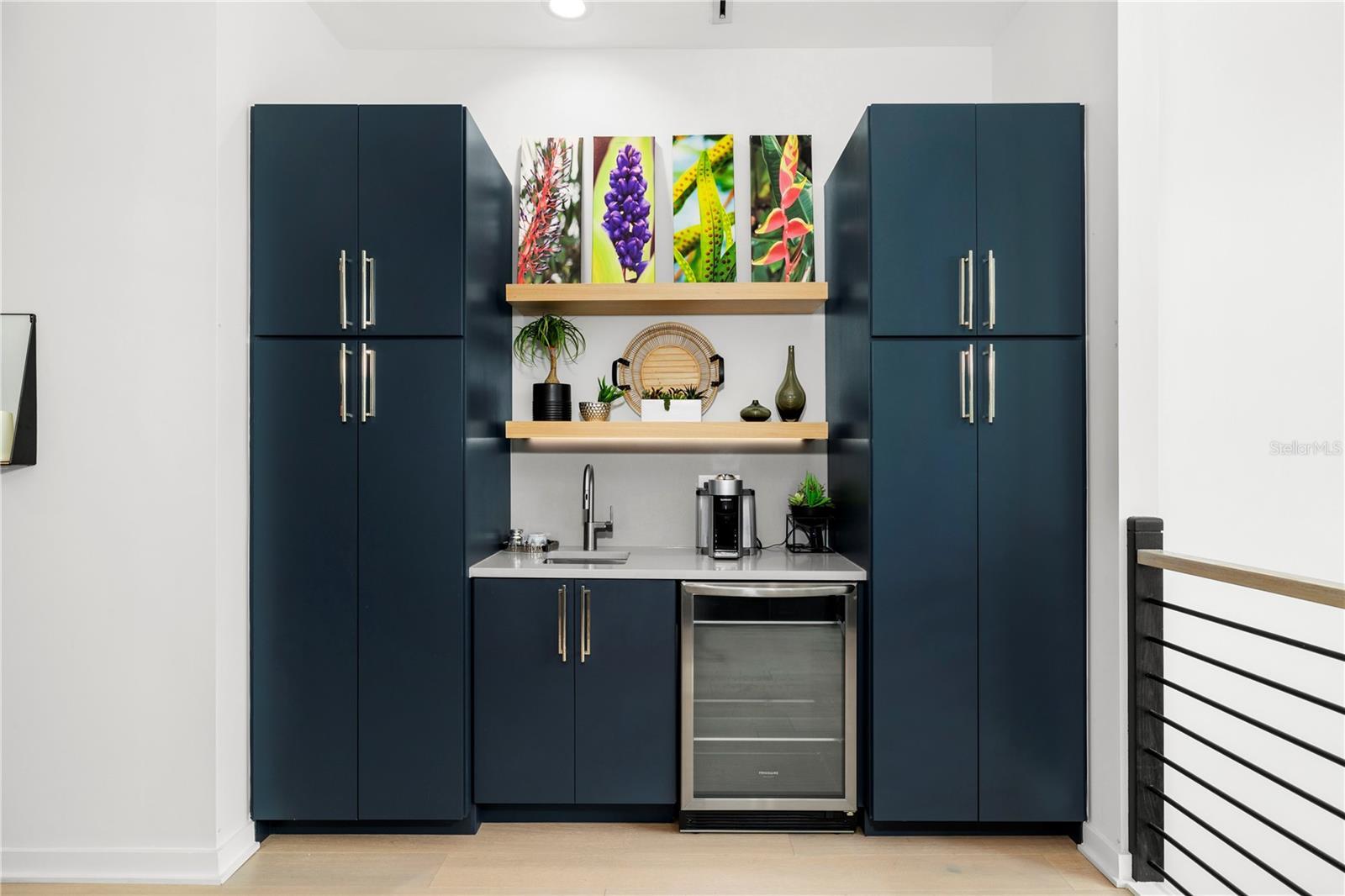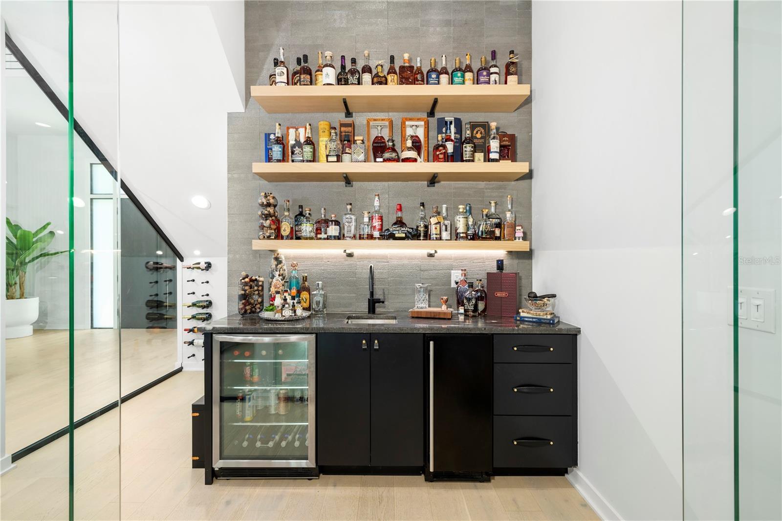 - Bar Fridge, Built-In Oven, Cooktop, Dishwasher, Disposal, Gas Water Heater, Ice Maker, Range Hood, Refrigerator, Wine Refrigerator