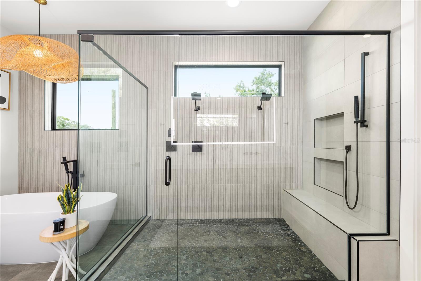 - Dry Bar, Eat-in Kitchen, High Ceilings, Kitchen/Family Room Combo, Open Floorplan, Primary Bedroom Main Floor, PrimaryBedroom Upstairs, Smart Home, Solid Wood Cabinets, Split Bedroom, Stone Counters, Walk-In Closet(s), Wet Bar