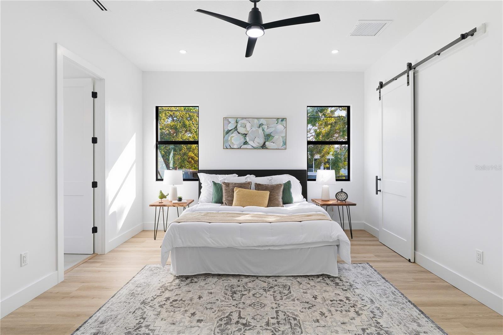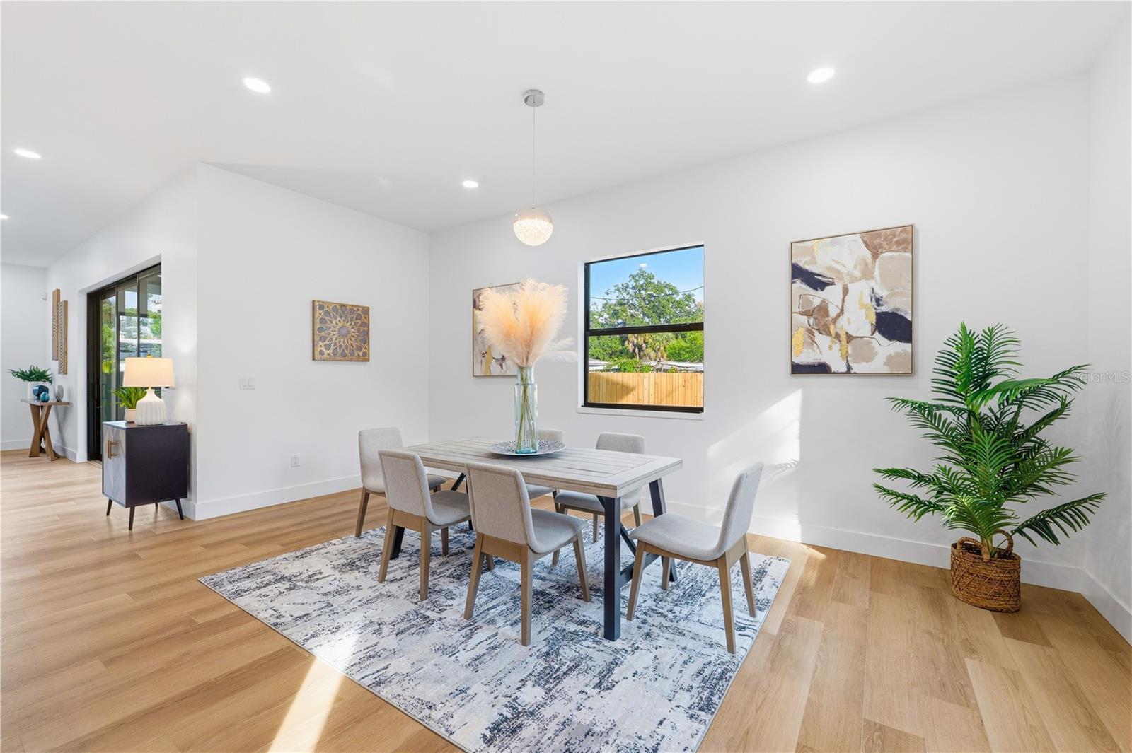 Stunning New-Construction Home in Jungle Terrace. CHECK OUT THE VIRTUAL TOUR!! Live just 10 minutes from Madeira Beach in comfortable luxury at 3531 81st Street North, an exquisite contemporary residence in St. Petersburg’s highly sought-after Jungle Terrace neighborhood. This 4-bedroom home with a bonus room, 3 full bathrooms, and a spacious 2-car garage offers an impressive 3,027 heated square feet of living space, all crafted with high-end materials and exceptional attention to detail. This residence offers fortified full concrete block construction on both levels, front and rear balconies, and a ganged roof truss system that enhances structural integrity. Inside, a dramatic 20-foot foyer welcomes you, leading into a bright and open layout where 10-foot ceilings on both levels and wood-look waterproof luxury vinyl plank flooring enrich the home’s spacious, modern feel. The gourmet kitchen serves as the centerpiece of the home, showcasing a double waterfall quartz island, matching quartz counters, a continuous quartz backsplash, and Luxe by Alvic high-gloss cabinetry known for mirror-like clarity, scratch and stain resistance, long-lasting durability, and antibacterial, easy-clean, color-stable, eco-friendly surfaces ideal for daily use. All windows and sliders are PGT impact-rated glass, including the upstairs slider and the downstairs 3-panel multi-slide door that connects the living area to the backyard for natural light, airflow, and effortless indoor-outdoor entertaining. Upstairs, the primary suite offers a large walk-in closet with a barn door and a spa-inspired bathroom featuring contemporary tilework, a rainfall shower head, and a standalone tub framed by tile that extends beyond the glass enclosure for a dramatic, modern finish. The guest bathroom also includes a rainfall shower, while the bonus room provides the perfect space for an office, home gym, or kid’s room. Two zoned A/C units ensure year-round comfort and efficiency. Residents of Jungle Terrace enjoy a community-oriented neighborhood with oak-lined streets, nearby parks, recreational facilities, the Pinellas Trail, and annual events such as the Green Thumb Festival at Walter Fuller Park—offering a lifestyle that blends outdoor enjoyment with thoughtful, contemporary living. Make your appointment to see a one-of-a-kind home!