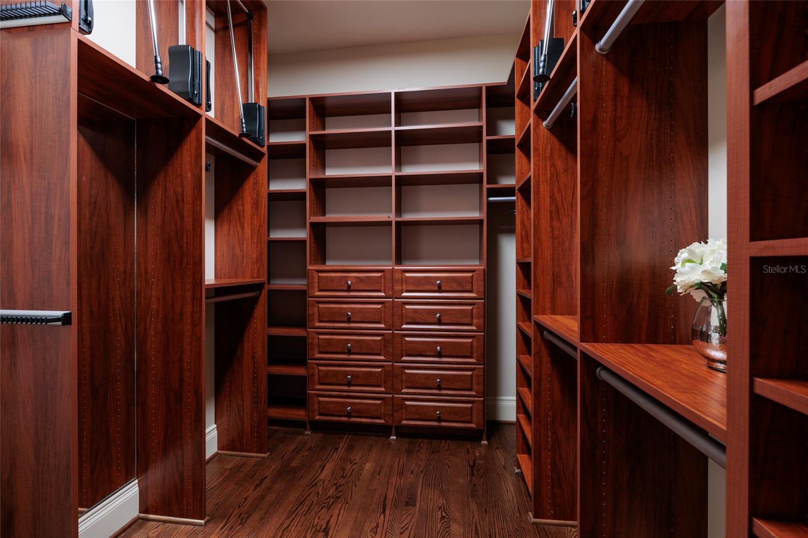 - Built-in Features, Ceiling Fans(s), Coffered Ceiling(s), Crown Molding, Eat-in Kitchen, Elevator, High Ceilings, Kitchen/Family Room Combo, Pest Guard System, PrimaryBedroom Upstairs, Solid Surface Counters, Solid Wood Cabinets, Split Bedroom, Thermostat, Tray Ceiling(s), Walk-In Closet(s), Wet Bar, Window Treatments