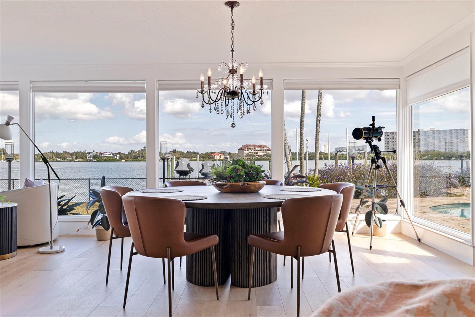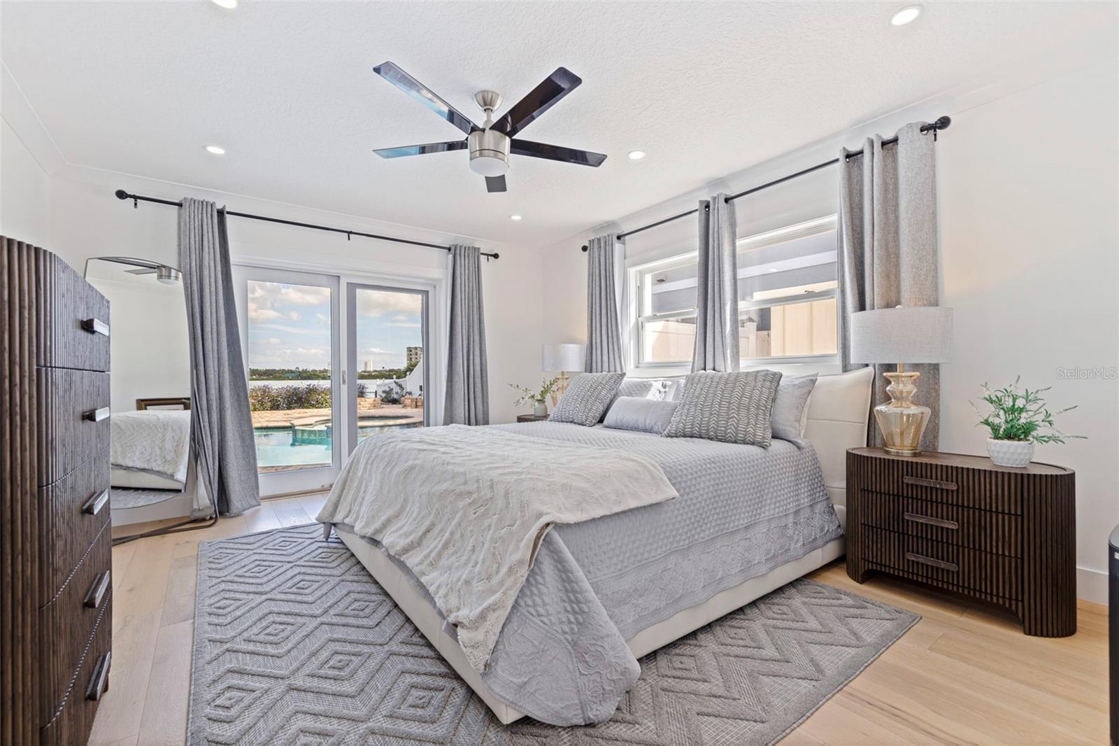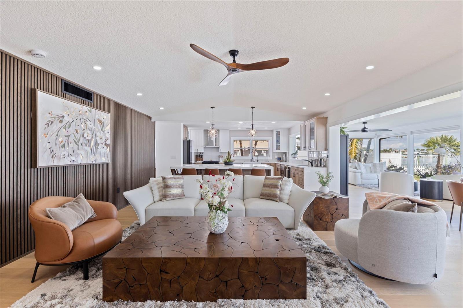 Welcome to this amazing waterfront home featuring 3 bedrooms, 2 fulls and 2 half baths and a 2 car garage with new epoxy flooring. This home has been completely remodeled by the current owner who is a local Luxury builder. The open floorplan and vaulted ceilings give a real sense of space. The views from the expansive windows across back of the house are amazing. Look out across your heated pool and spa to the open water views. The pool was resurfaced in 2023 and equipment was replaced in 2025. The roof was replaced in 2024 with a 30 year transferable warranty.The list of upgrades is extensive. New HVAC, Impact windows and doors, Water filtration system with reverse osmosis, custom kitchen and bathroom cabinets with quartz countertops, custom doors, custom closets in all bedroom, laundry, and pantry, 8 inch white oak plank flooring, new plumbing including under the slab. The spacious kitchen features the latest Samsung WIFI programmable appliances and an oversized island with double cabinets. There is a spacious inside laundry room with plenty of cabinets and upgraded new washer and dryer set. All of the electric is new including main panel, wiring, receptacles, and upgraded light fixtures. The bathrooms have special order vanities, custom tile work, backlit dimmable antifog mirrors and custom shower glass doors. The home is situated on an oversized 11,140sf lot and has beautiful landscaping and a new sprinkler system. Your composite dock has a 25,000 and a 13,000 pound lift with new motors and 2 floating PWC docks. Schedule you private viewing today. You won't be disappointed.