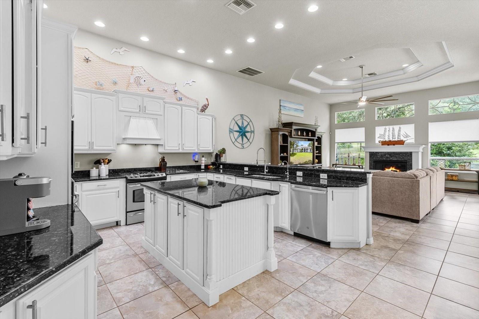 - Cathedral Ceiling(s), Ceiling Fans(s), Crown Molding, High Ceilings, Kitchen/Family Room Combo, Open Floorplan, Primary Bedroom Main Floor, Split Bedroom, Tray Ceiling(s)
