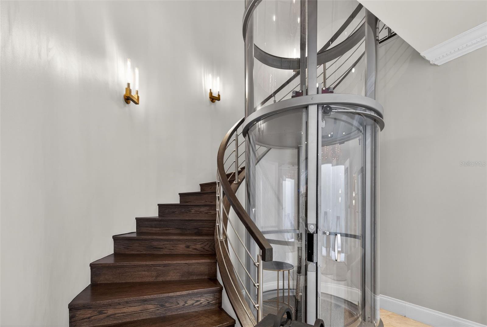 - Built-in Features, Ceiling Fans(s), Crown Molding, Eat-in Kitchen, Elevator, High Ceilings, Kitchen/Family Room Combo, Living Room/Dining Room Combo, Open Floorplan, PrimaryBedroom Upstairs, Smart Home, Solid Surface Counters, Solid Wood Cabinets, Stone Counters, Thermostat, Walk-In Closet(s), Window Treatments