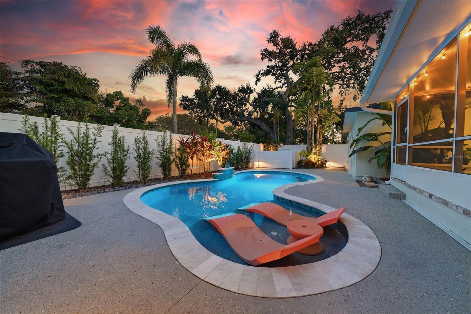 Welcome to your fully remodeled Saltwater Pool Home, on a beautifully landscaped corner lot sitting at the top of a hill on iconic Main Street with NO FLOOD ZONE and NO EVACUATION ZONE. This property sits proudly on a generous .27-acre double lot—a rare find close to Downtown Safety Harbor, with plenty of privacy and room to live, grow, entertain, and breathe. With over $500,000 in improvements, this smart home has been renovated from top to bottom—every system, surface, and space has been upgraded for peace of mind and refined living: New Heated Saltwater Pool with Fountain (2025), New Roof (2023), All New Impact Windows, Sliders & Doors (2024), New HVAC (2023), New Electrical Panel with Whole-Home Surge Protection (2024), Blair Water Softening System (2024), Modern Pavers (2025), Fresh Interior and Exterior Paint (2024), Attic Cleaning & Insulation (2023), Full RV Hookups (Water, Sewer, Electric in 2024). Fully Remodeled Kitchen, Wine Bar and Bathrooms (2024), New Irrigation System (2025), Refinished Hardwood and New Tile Floors. This 4-bedroom, 2-bathroom residence offers a thoughtful balance of classic character and contemporary design—nothing left untouched and nothing left to do but move in and enjoy. Step inside and discover spaces designed to impress. Refinished original hardwood floors flow through the front living areas and kitchen, blending seamlessly with modern slate tile throughout the remainder of the home. The reimagined kitchen featuring soft-close cabinetry, stone countertops, modern fixtures, and a full suite of Whirlpool appliances (2024). Thoughtful touches abound—recessed LED lighting, updated doors, hardware, fans, and fixtures—curated for comfort and timeless daily living. Privately positioned on its own wing, the primary suite feels like a personal retreat. Impact-rated sliders open directly to the heated saltwater pool, making indoor-outdoor living effortless. A thoughtfully expanded walk-in closet adds convenience and organization, and the suite's location ensures privacy rarely found in homes this size. The living room and kitchen split the bedroom layout, creating privacy for everyone. The Primary Suite sits at the back of the home with Bedroom 2 nearby—ideal as an office, nursery, or guest room—while Bedrooms 3 and 4 sit off the dining room, perfect for family, visitors, or work-from-home needs. Step outside and experience true Florida living. A new vinyl fence encloses the yards and pool area, where the saltwater pool and fountain shimmer beneath the sun, surrounded by fresh landscaping, modern pavers, and a screened porch for shaded comfort. Two outdoor showers, a utility sink, and a dedicated dog wash station make beach days, gardening, and pet care effortless. Perfect for hosting or unwinding, this outdoor space truly delivers. Centered on a 12,000+ sq ft double lot, each side serves a purpose: North offers a lush front yard and seating area; East provides a carport, a new shed, and parking for multiple vehicles, RV, boat, and golf cart with gated pool access; West features a shelled dog run and extra parking pad; South includes additional yard space and a fully finished detached ADU with it's own W/D, electric, water, and AC. 20 minutes to Tampa International Airport. 25 minutes to Clearwater Beach. Just 1 mile to Downtown Safety Harbor—cafés, restaurants, waterfront parks, festivals & the energy of a charming small town. Close enough to enjoy, yet far enough to escape the noise.