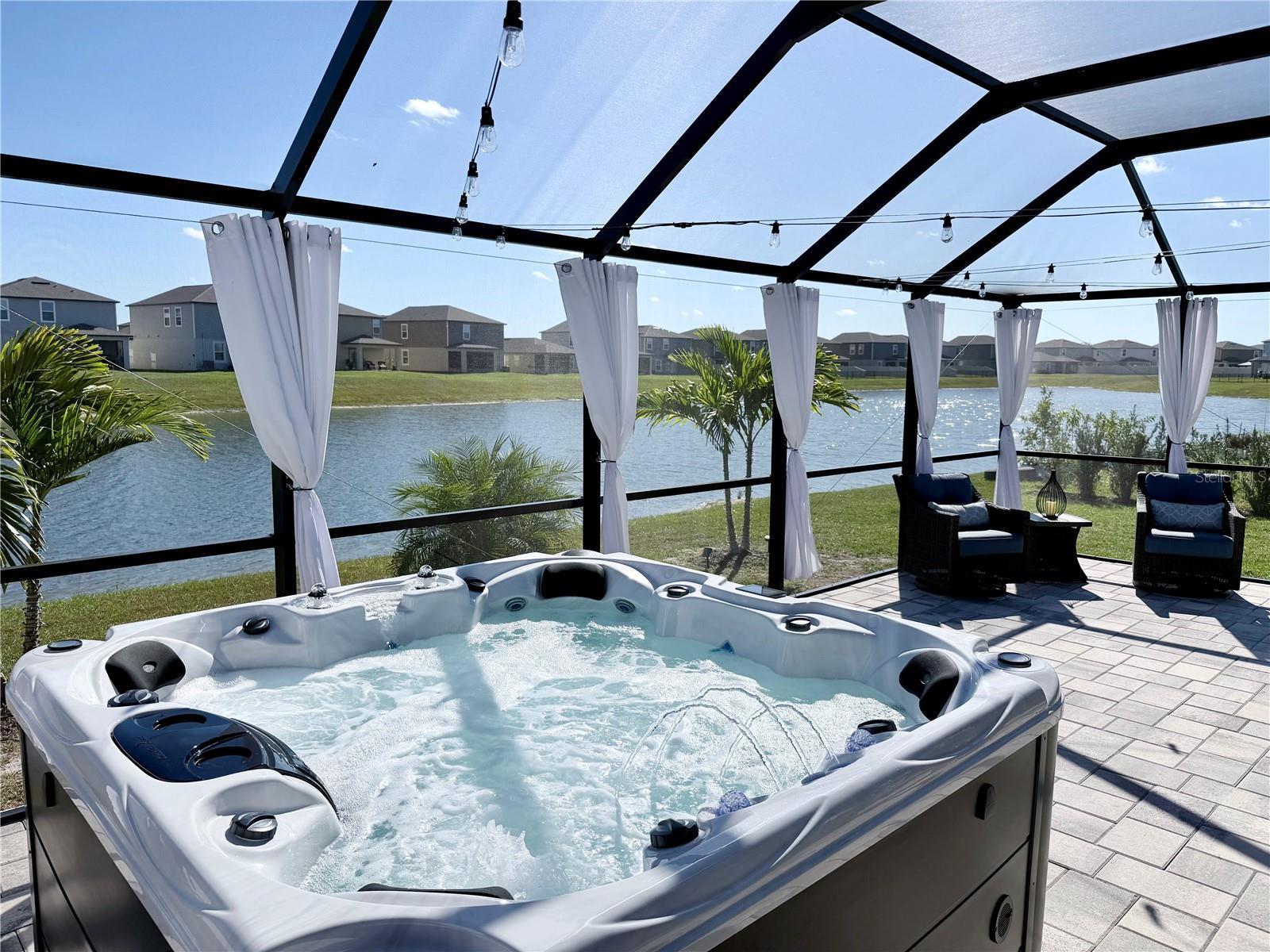 Experience resort-style living in this modern 5-bedroom, 2.5-bath home in the highly desired Mirada community. This two-story residence offers nearly 2,900 sq. ft. of living space with custom finishes throughout. The main level features an upgraded kitchen with a hood range, stylish backsplash, and new appliances, opening seamlessly to the living and dining areas enhanced by a custom entertainment center. The first-floor primary suite includes a walk-in closet and private bath. Upstairs, a spacious loft connects four additional bedrooms, providing flexible space for work or leisure. Additional upgrades include smart home technology, water softener, and a reverse osmosis drinking water system. Outdoor living is elevated by a large screened-in patio with a hot tub, outdoor TV, and upgraded landscaping. Rent includes lawn care, Ultra-Fi high-speed internet, and cable. Residents also enjoy access to the 15-acre crystal lagoon featuring beaches, a swim-up bar, kayaking, paddle boarding, and community events, along with trails, dog parks, and other resort-style amenities. Conveniently located near I-75 and just 35 minutes from Downtown Tampa, this home offers luxury, comfort, and convenience in one of Pasco County’s premier communities.