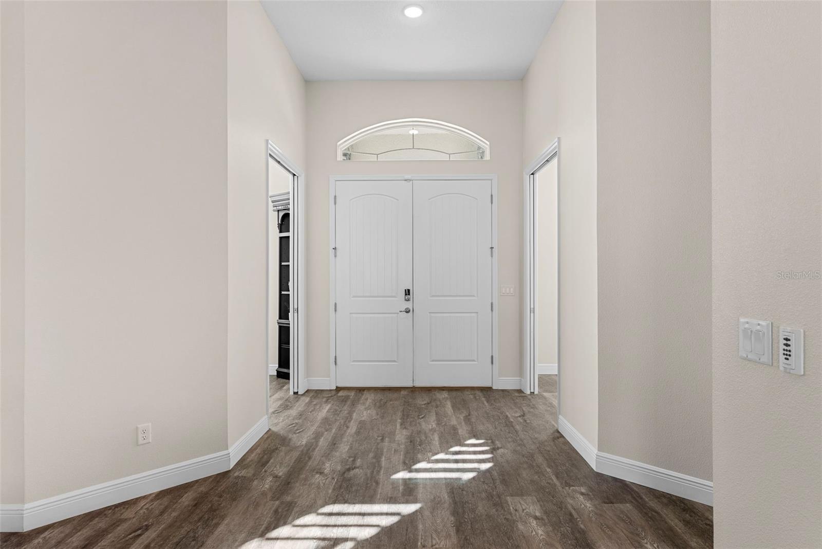 Located in the gated Royal Palms community, this custom-designed 4-bedroom, 3-bathroom home is ideally situated on 2 private acres, offering luxury living with plenty of space to breathe. The open-concept floor plan features designer lighting, upgraded ceiling fans, and a decorative electric fireplace that adds warmth and charm to the main living space. At the heart of the home is a chef’s dream kitchen, thoughtfully designed for both style and function. It features dual oversized islands, a custom-built commercial-grade side-by-side refrigerator and freezer, a built-in microwave, and a pot filler over the cooktop. The 42" shaker-style cabinets provide generous storage, and a walk-in pantry keeps everything organized and close at hand. Whether preparing daily meals or hosting large gatherings, this kitchen handles it all with ease. A dedicated home theater provides the ultimate movie-night experience, while the private office is perfect for remote work. An additional flex room offers versatility as a yoga studio, workout space, or quiet den for reading and relaxation. The main living area has pocket sliding glass doors that fully open to the covered lanai, creating an authentic Florida lifestyle experience with seamless indoor-outdoor flow—perfect for entertaining or simply enjoying the tranquil setting. Outdoors, enjoy your own resort-style retreat with a saltwater pool, an integrated spa, a sun shelf, and a dramatic rock waterfall feature. The expansive paver patio and lanai include retractable privacy screens, enhancing comfort and usability year-round. Sports enthusiasts will love the full-size basketball court and sprawling backyard framed by mature trees. With a three-car garage, premium finishes throughout, and a peaceful setting within one of Brooksville’s most desirable communities, this home delivers both comfort and sophistication. And with its prime location, you're just minutes from shopping, restaurants, breweries, coffee shops, and historic downtown Brooksville—home to quaint boutiques and world-class local dining.