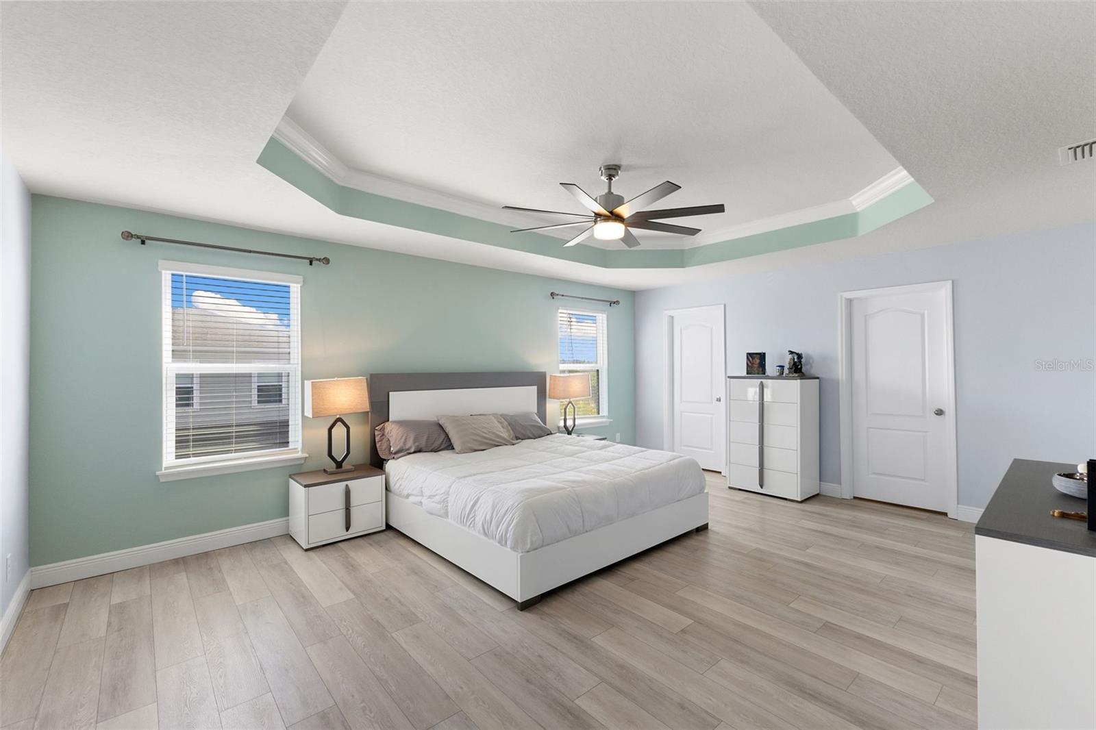 - Ceiling Fans(s), Crown Molding, Eat-in Kitchen, Open Floorplan, PrimaryBedroom Upstairs, Stone Counters, Thermostat, Tray Ceiling(s), Walk-In Closet(s)