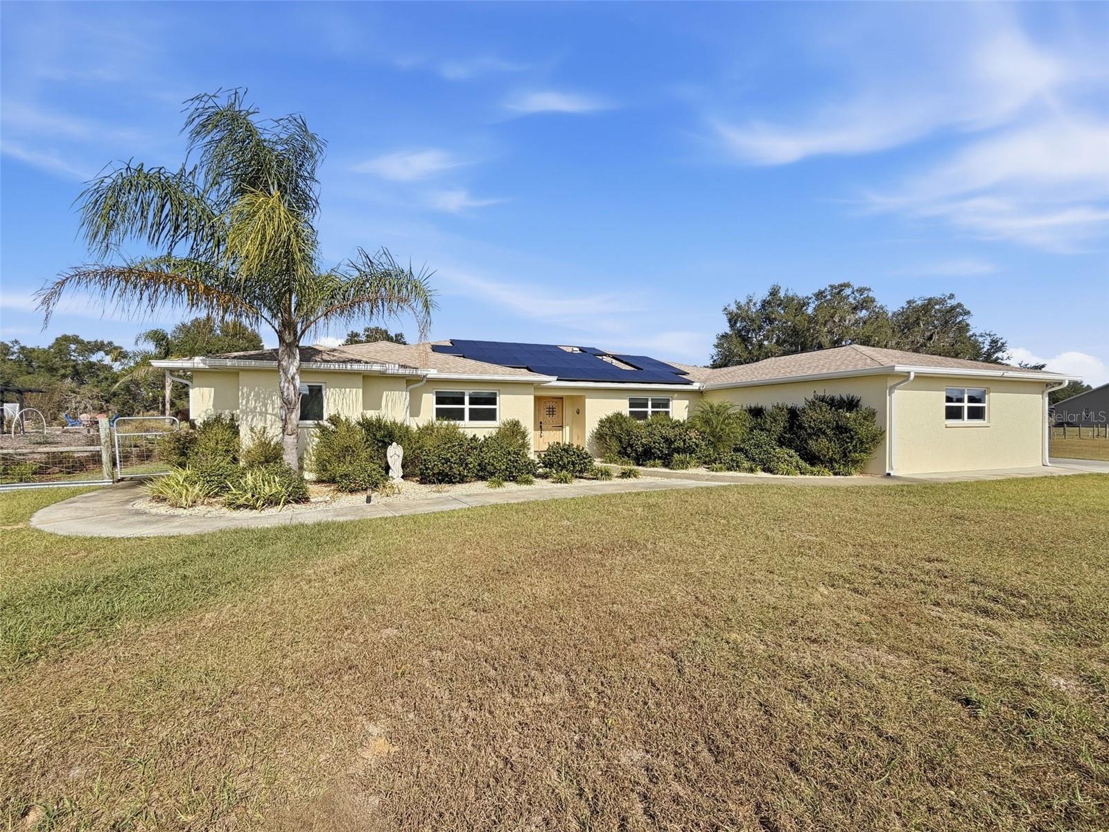 Family Compound THE OASIS. A custom built Citrus County estate offering peaceful luxury, multigenerational living and usable acreage. This 4 bedroom 4 bath residence with 3 car garage and 3,000 SF under roof sits on 4.79 acres of flat dry fully fenced and cross fenced land with mature oaks, gardens and no HOA, providing space for animals, RVs, boats, equipment and all your toys. Through the gated entrance and handcrafted double doors you enter a bright open concept great room with tiled flooring throughout, coffered ceilings, recessed lighting and wide views of the screened lanai and pool area. Thoughtful features include ADA conscious design elements, solar panels and generous custom storage. At the heart of the home is the chefs kitchen, ideal for entertaining and everyday living. Highlights include a 9 foot island, quartz countertops, soft close cabinetry, stainless steel appliances, under cabinet lighting and a walk in pantry with California Closet organization. Talavera tile backsplash and bathroom floor tile imported from Mexico add color, texture and artisan character. The private primary suite functions as a true retreat with 2 spa like bathrooms, 2 custom walk in closets and direct access to the lanai. Secondary bedrooms feature tray ceilings, ceiling fans and flexible ensuite options that work well for multigenerational living, long term guests or private quarters. Inside you will also find a spacious laundry room with storage and folding space, a mudroom with built in cabinetry and an integrated animal wash and utility tub for pets, gardening and projects. Outdoor living is a highlight of this property. The screen enclosed lanai includes a sparkling pool, spa and sauna plus a fully equipped outdoor kitchen with granite countertops and marine grade cabinetry so you can cook, dine and entertain poolside year round. Beyond the lanai lies the Secret Garden, a secluded irrigated area designed for beauty and productivity with fruit trees, berry bushes, herbs, flowers, raised garden beds and a firepit patio, all served by automated irrigation. The grounds are organized into 5 zones. The Oasis is the main home, elegant and functional. The Secret Garden is your private retreat in nature. The Neighborhood is a work area with greenhouse, garden office, chicken coop and equipment shed for hobby farming and gardening, with plenty of room for equipment and storage. The Pet Pen offers about 0.25 acre of fenced space with an automatic watering system and workshop carport, ideal for pets, small livestock or extra storage. The Cabana is a detached retreat of about 468 SF with kitchenette, full bath, outdoor shower, screened porch and firepit area that can serve as a studio, guest space, office, wellness retreat or lounge, giving guests or family a private place to relax close to the main home. Parking and storage are exceptional. In addition to the attached 3 car garage there is a detached workshop with carport and multiple additional carports that provide covered parking for up to 11 vehicles plus space for trailers, RVs, boats and equipment. Tucked between Inverness and Brooksville, The Oasis is minutes from local charm and modern convenience. Enjoy quick access to Interstate 75, State Road 589 and the Florida Turnpike, placing Ocala, Tampa and Orlando all within an easy drive. Experience the perfect blend of tranquil countryside and connected convenience.