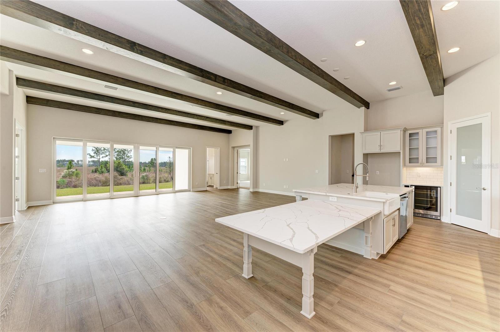 One or more photo(s) has been virtually staged. This Key West II is ready for move in! Discover the Key West II, a bright, airy floor plan designed for effortless indoor-outdoor living, perfectly embracing the Florida lifestyle. This stunning home welcomes you with an extended foyer that guides you seamlessly into expansive open living areas, all illuminated by grand 12-foot ceilings. The heart of this home is the gourmet kitchen, centered around a large island. It features elegant Maddox Harbor cabinets, pristine Frost Whte MSI Quartz countertops, and durable Nutmeg LVP flooring, creating a beautiful and functional space for everyday life and entertaining. The common living areas, which include a versatile den and grand room, provide generous space for relaxation, while the dedicated dining room is ideal for both elegant dinners and casual gatherings. From the main living space, transition effortlessly to your oversized covered lanai, an ideal extension of your home designed for extensive outdoor enjoyment and relaxation. The private owner’s retreat on the lower level offers a true sanctuary, complete with a large, spa-like bathroom and an oversized walk-in closet. Also downstairs, you will find two additional bedrooms and a shared bathroom, perfect for family or guests. The Key West II further enhances its versatility with an upstairs area featuring a fourth bedroom, a full bath, and a bonus room, creating an ideal private oasis for extended family, guests, or a dedicated zone for play or work. This particular home also includes upgraded options such as an additional bonus room, a convenient pool bath, and a fifth bedroom, providing even more space and functionality for your life. Listing Price amount for this Pending Sale includes Design and Structural Options.