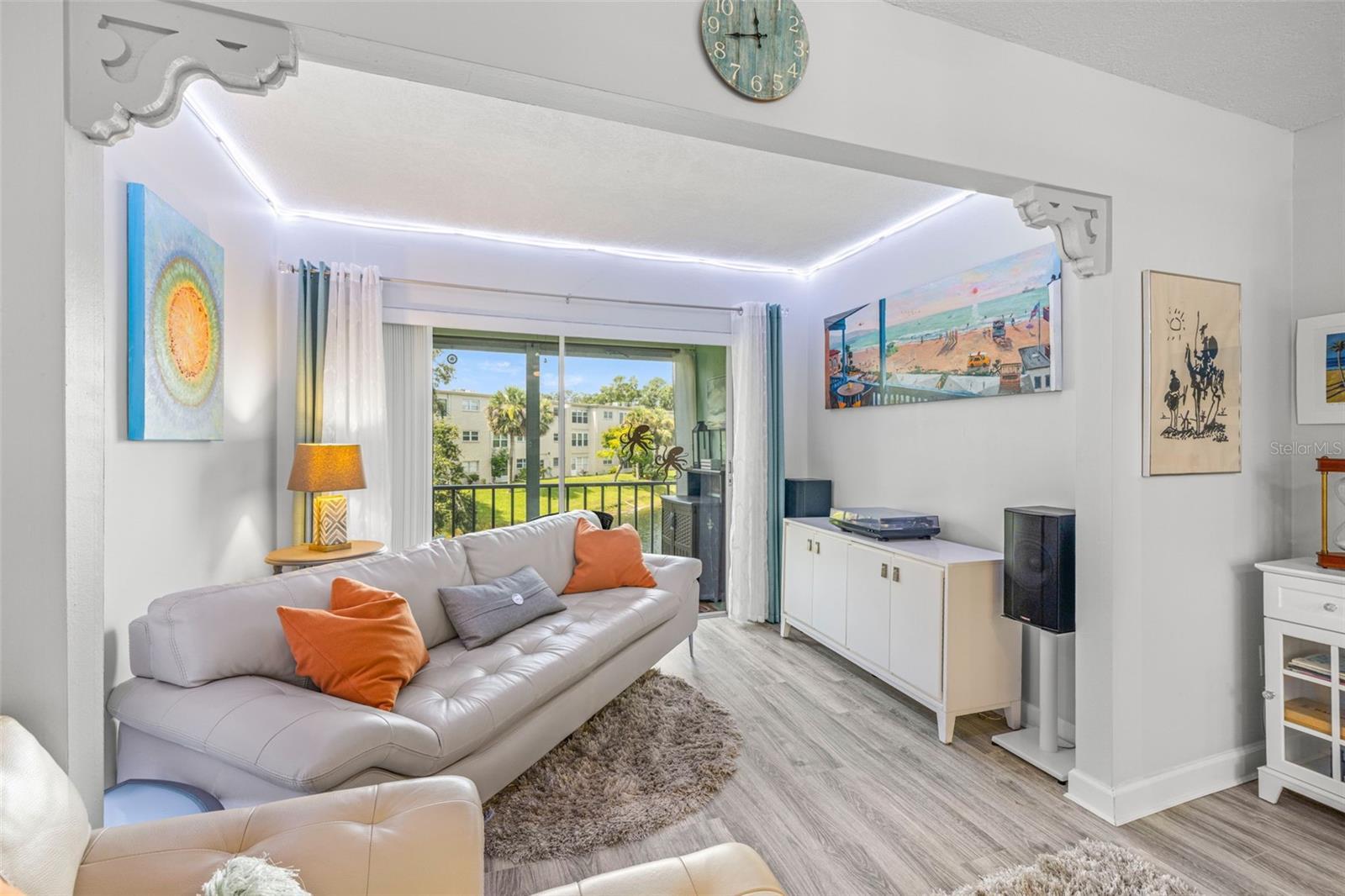 Picture yourself in the heart of Dunedin, where every day feels like a getaway. In the coveted 55+ community of Heather Lake, this beautifully updated condo invites you to slow down and enjoy the unbeatable view of the tranquil pond from your own screened-in balcony. As you arrive at your assigned carport, take the elevator to the second floor to where your new home awaits. Featuring 2 bedrooms and 1 bathroom, this home showcases a thoughtfully designed open floor plan with a living/dining room combo, plantation shutters on all windows and luxury vinyl plank flooring throughout. The light filled kitchen boasts stainless steel appliances, including a newly installed dishwasher in 2024. One of the bedrooms is thoughtfully designed with a built-in Murphy bed, making it the ultimate flex space, an office by day and a comfortable guest retreat by night. The bathroom has been tastefully updated with a modern vanity and a glass door enclosed stand up shower. This home features updated light fixtures and ceiling fans throughout. Additional highlights include a 2021 A/C unit, 2023 electrical panel, brand new roof in 2024, and roll-down hurricane shutters on the porch providing peace of mind for years to come. Heather Lake community offers a clubhouse, heated pool, shuffleboard, walking paths, and is next door to brand new pickleball courts and a community garden. Monthly HOA fees cover cable, internet, water, sewer, trash, exterior maintenance, grounds care, and pool upkeep. Located just minutes to Downtown Dunedin, you’ll find an endless variety of shops, waterfront restaurants, microbreweries, and weekly events along the marina and Main Street. The Pinellas Trail, perfect for biking or walking, runs right through downtown, while the Dunedin Causeway provides a scenic route to Honeymoon Island and Caladesi Island, two of Florida’s most beloved state parks. World-famous Clearwater Beach is just 15 minutes south, while Tampa International Airport and St. Pete–Clearwater International Airport are both easily accessible for travel. For golf enthusiasts, the historic Dunedin Golf Club and renowned Innisbrook Golf and Tennis Resort are close by, and for healthcare peace of mind, Mease Dunedin Hospital is only a short drive away. Schedule your private showing today and experience the magic of Heather Lake living!