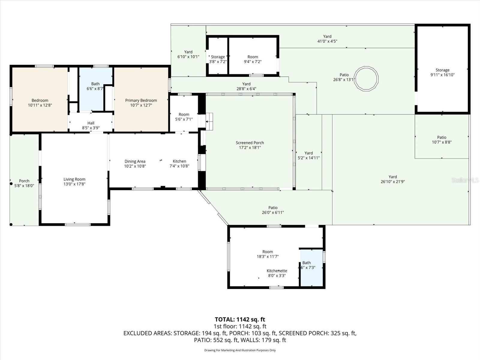 One or more photo(s) has been virtually staged. LOCATION, LOCATION, LOCATION! DETACHED MOTHER IN-LAW SUITE! HIGH & DRY, QUIET AND SAFE NEIGHBORHOOD! Sitting high and dry on an oversized 7,662 sq. ft. lot in a non-flood zone, this charming home offers flexibility, comfort, and income potential in one of St. Petersburg’s most desirable neighborhoods. MAIN HOUSE: Block construction - 2 bedrooms, 1 bathroom, and a huge screened-in patio perfect for entertaining or watching your favorite sport events with friends and family. Design your dream kitchen and refinish the original hardwood floors to your choice of color ($2,000 floor refinishing credit at closing). DETACHED MOTHER-IN-LAW SUITE: 1 bedroom, 1 bathroom with kitchenette and newly installed split AC/heat system—ideal for an elderly parent, teen independence, or rental income (~$1,500/month). ADDITIONAL SPACES: Detached 8' x 10' office/studio for remote work or hobbies and a 12' x 16' storage garage. OUTDOOR LIVING: Spacious backyard with cozy fire pit, towering oak trees, and a huge driveway that could easily be transformed into a carport or additional garage. UPGRADES & FEATURES: Gas tankless water heater, gas dryer, gas hookup for future range, water softener, well & sprinkler system. Located in the highly sought-after Allendale Terrace neighborhood, walking distance to Allendale Park, Publix, ALDI, Whole Foods, restaurants, and a local brewery. Enjoy evening strolls on quiet, brick- and tree-lined streets in this family-friendly, low-traffic neighborhood.