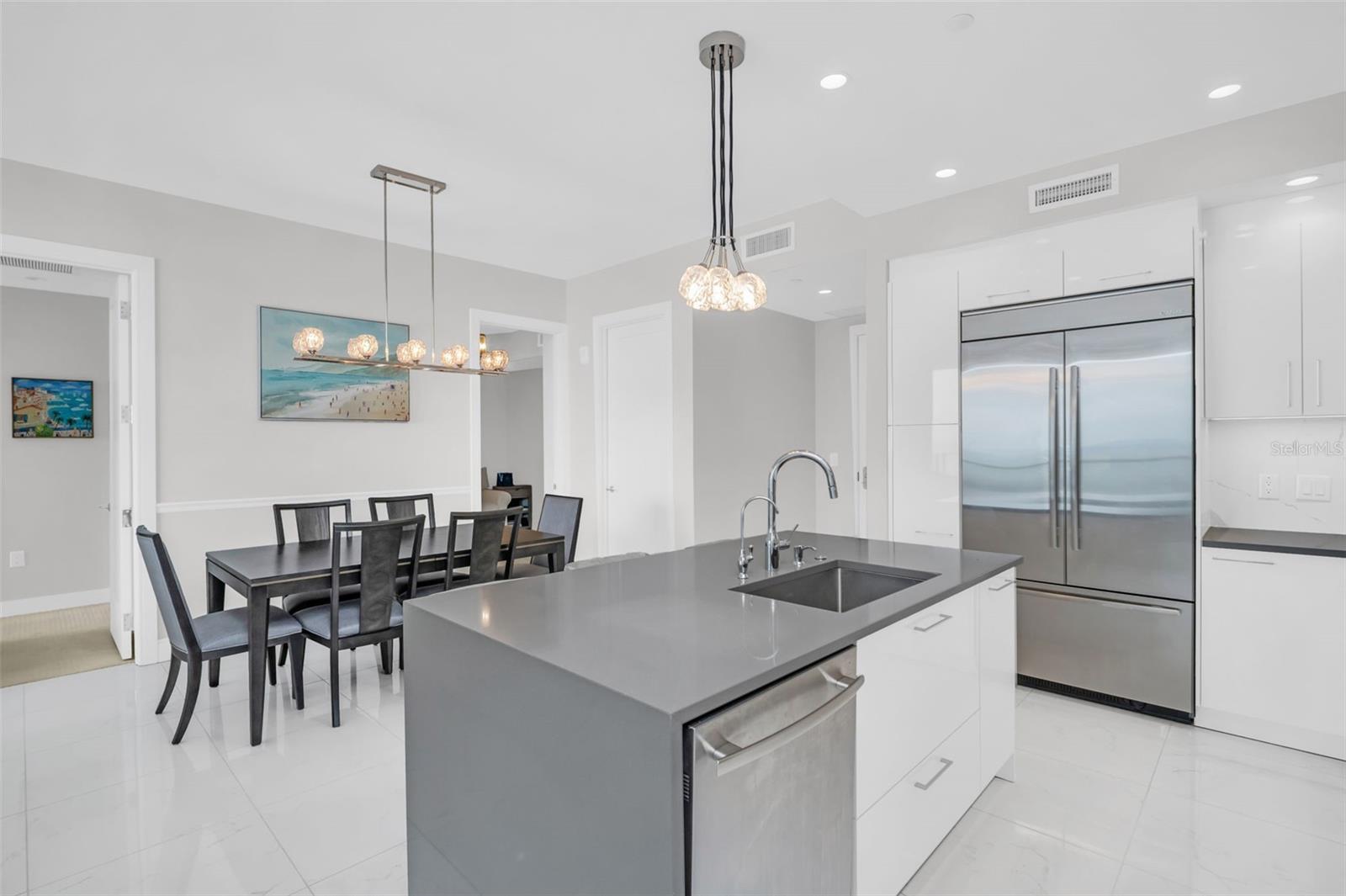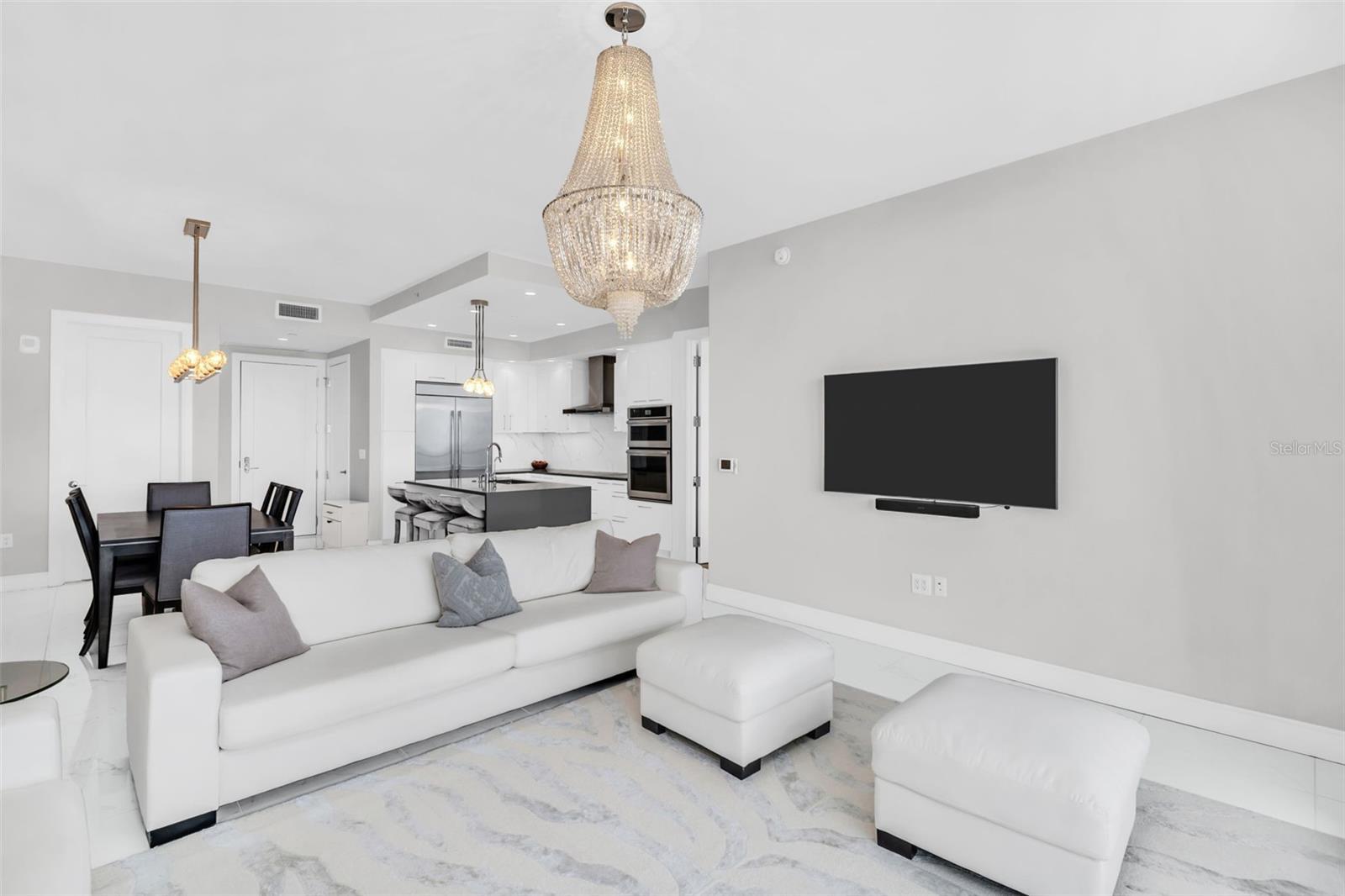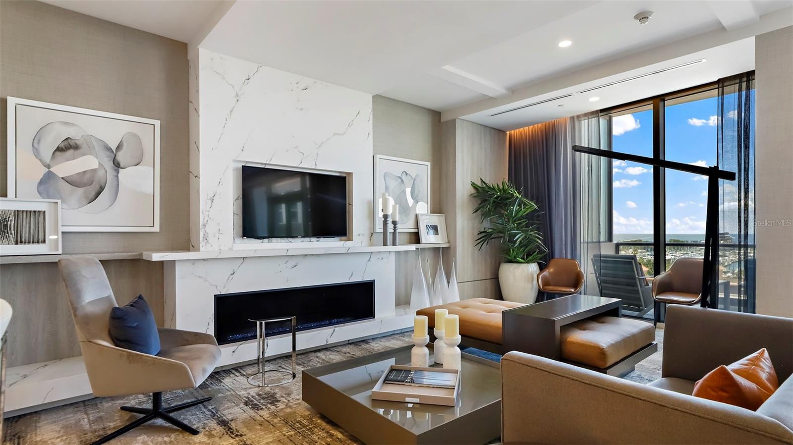 Experience elevated downtown living at ONE St. Petersburg. This stunning 2-bedroom plus den, 2.5-bath residence offers 1,522 sq. ft. of refined interior space and unobstructed WATER VIEWS overlooking the downtown waterfront and iconic St. Pete Pier. Step inside to an open, modern floor plan featuring sleek porcelain tile throughout the main living areas and a chic neutral-toned stone accent wall that creates a warm yet sophisticated ambiance. The gourmet kitchen is outfitted with stainless steel appliances, filtered water dispenser at sink, ample storage, and designer lighting. A private balcony extends your living space outdoors; perfect for morning sunrises, alfresco dining, or simply enjoying the glimmer of Tampa Bay. Both bedrooms provide serene bathrooms, while the primary suite is enhanced by a generous walk-in closet. The additional den offers adaptable space perfect for a stylish home office, media lounge, or guest retreat. Residents of ONE enjoy world-class amenities, including a dramatic 40,000+ sq. ft. elevated amenity deck with a resort-style pool, private cabanas, outdoor kitchen and lounge areas, a state-of-the-art fitness center, and both formal and informal club rooms. Additional conveniences include a 24/7 staffed front desk and secure building access. This residence also conveys two premium parking spaces and a climate-controlled storage unit, enhancing comfort and convenience. Perfectly situated in the heart of downtown St. Petersburg, you're just steps from waterfront parks, the St. Pete Pier, acclaimed museums, fine dining, boutique shopping, marinas, and vibrant year-round events. Live the luxury lifestyle that only ONE St. Petersburg can offer.