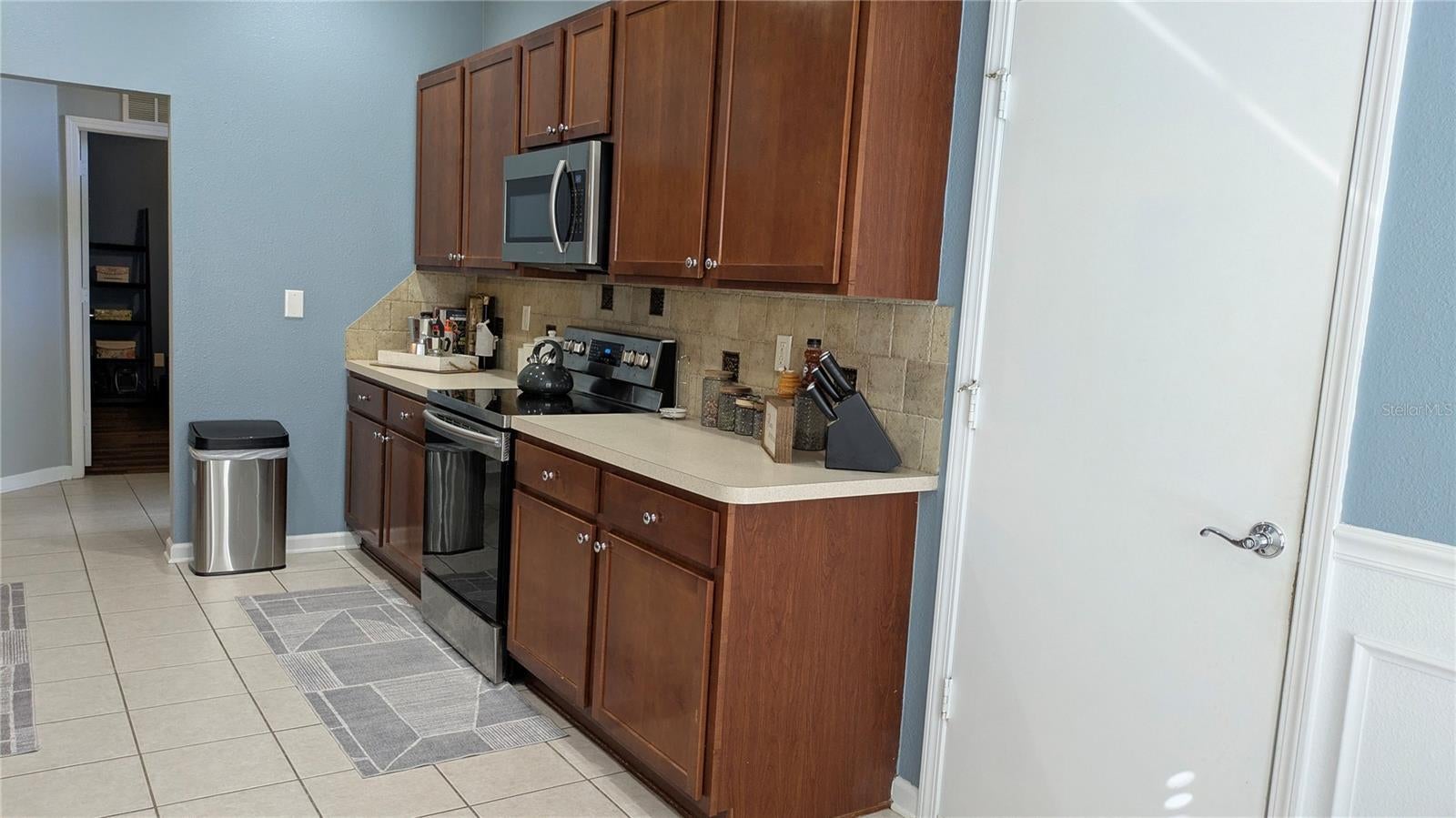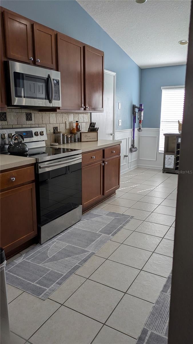 Tucked away in the sought-after community of Trillium, this beautifully maintained 4-bedroom, 2-bathroom home with a 2-car garage is move-in ready. Step inside to vaulted ceilings and timeless laminate flooring that flows through the main living areas, creating an open and welcoming feel. The spacious kitchen features stainless appliancess and a breakfast bar/pass-through overlooking the family and dining areas, perfect for easy entertaining. A charming breakfast nook accented with wainscoting, a convenient pantry, and a large laundry closet with extra shelving add both style and functionality. The bright and airy living room offers crown molding and triple sliding glass doors that lead to a fully fenced backyard. Enjoy a covered patio area for outdoor dining and an additional patio space ideal for relaxing by a fire pit. The primary suite includes a walk-in closet and a well-appointed ensuite bathroom with dual sinks, a garden tub, and a separate shower. The smart triple-split bedroom layout provides excellent privacy for all. Residents of Trillium enjoy fantastic amenities, including a clubhouse, resort-style pool with cabanas, playground, and multi-purpose recreation field. Conveniently located near shopping, dining, medical facilities, and the Suncoast Parkway, this home truly has it all. Available Jan 2nd. Washer and dryer will be switched for a different model. LAWN CARE IS INCLUDED IN RENTAL PRICE