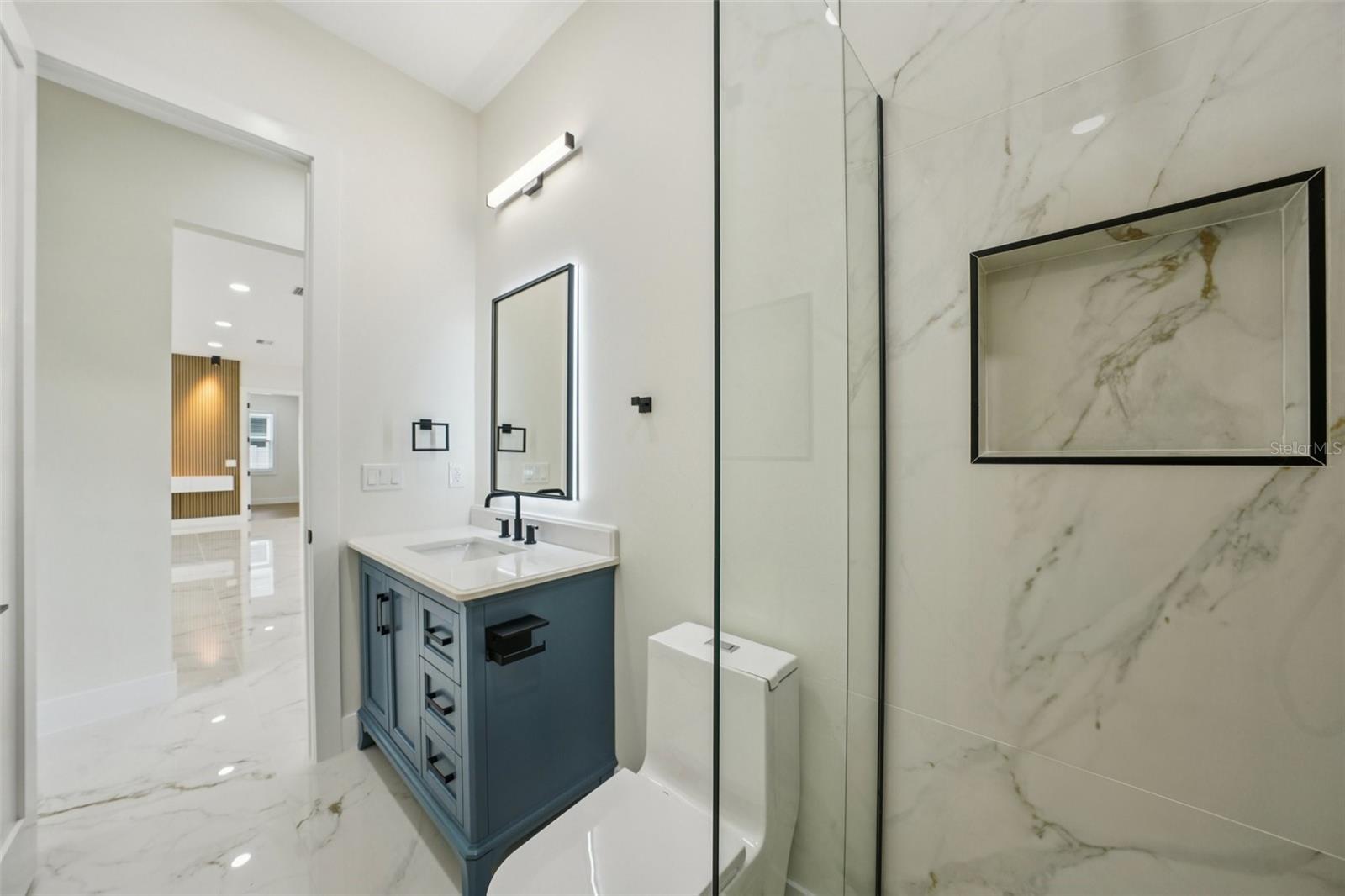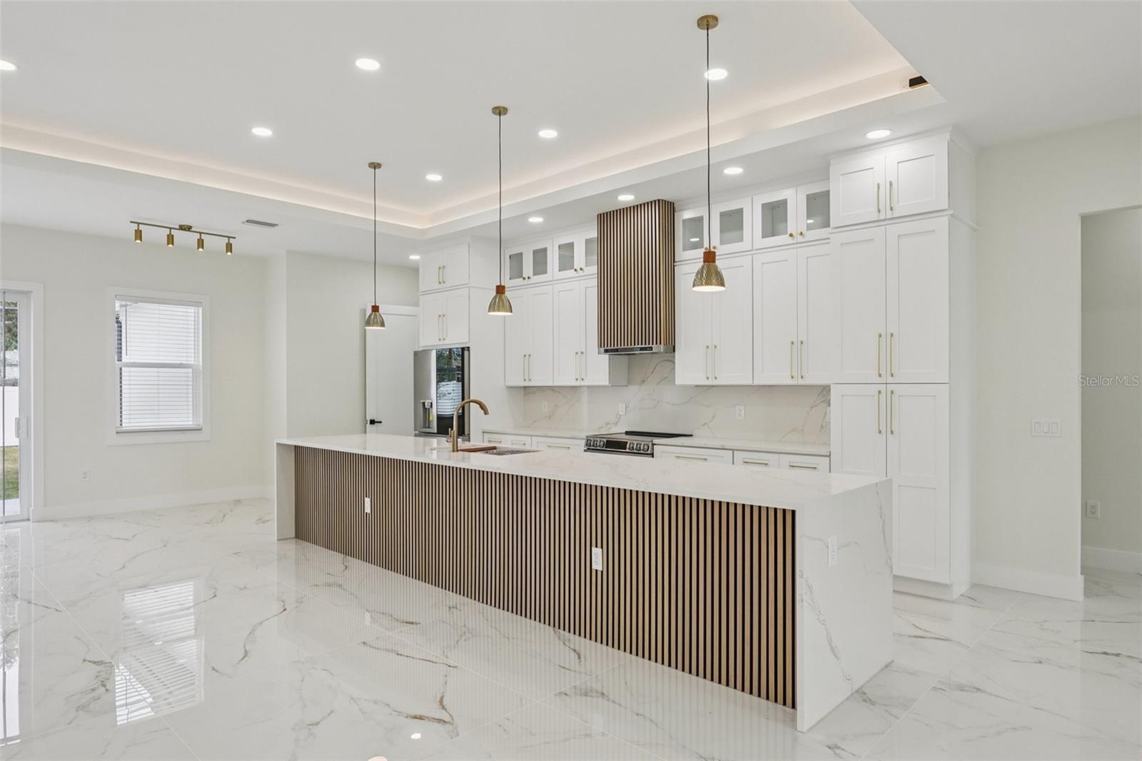 If you are looking for true new-construction luxury in Clearwater, this corner-lot residence at 1596 Nursery Rd is the one to see. This 4 bedroom, 2.5 bathroom home is MOVE IN READY and offers 2,498 square feet of air-conditioned space, solid block construction, and hurricane impact-rated windows and doors for both peace of mind and long-term value. Every finish and detail is elevated. Large format porcelain tile runs through the main living areas, with soft luxury vinyl in the bedrooms and floor to ceiling tile in all bathrooms. High ceilings and custom millwork give the home a clean, contemporary, upscale feel from the moment you walk in. The open concept layout centers around a showpiece kitchen designed for both everyday living and entertaining. A massive 16 foot island anchors the space, surrounded by all-wood soft-close cabinetry, quartz countertops, and a luxury appliance package fit for a chef. The primary suite is a true retreat, with a large walk-in closet and a private en-suite bathroom featuring a double vanity, soaking tub, and an expansive shower and wet area that feels like a world-class spa. Outside, a private fenced backyard and 2 car garage complete the home. The property sits high and dry in a non-flood zone with no HOA. Luxury new construction of this caliber is rare in Clearwater at this price point. Schedule your private showing of 1596 Nursery Rd today and experience it for yourself.