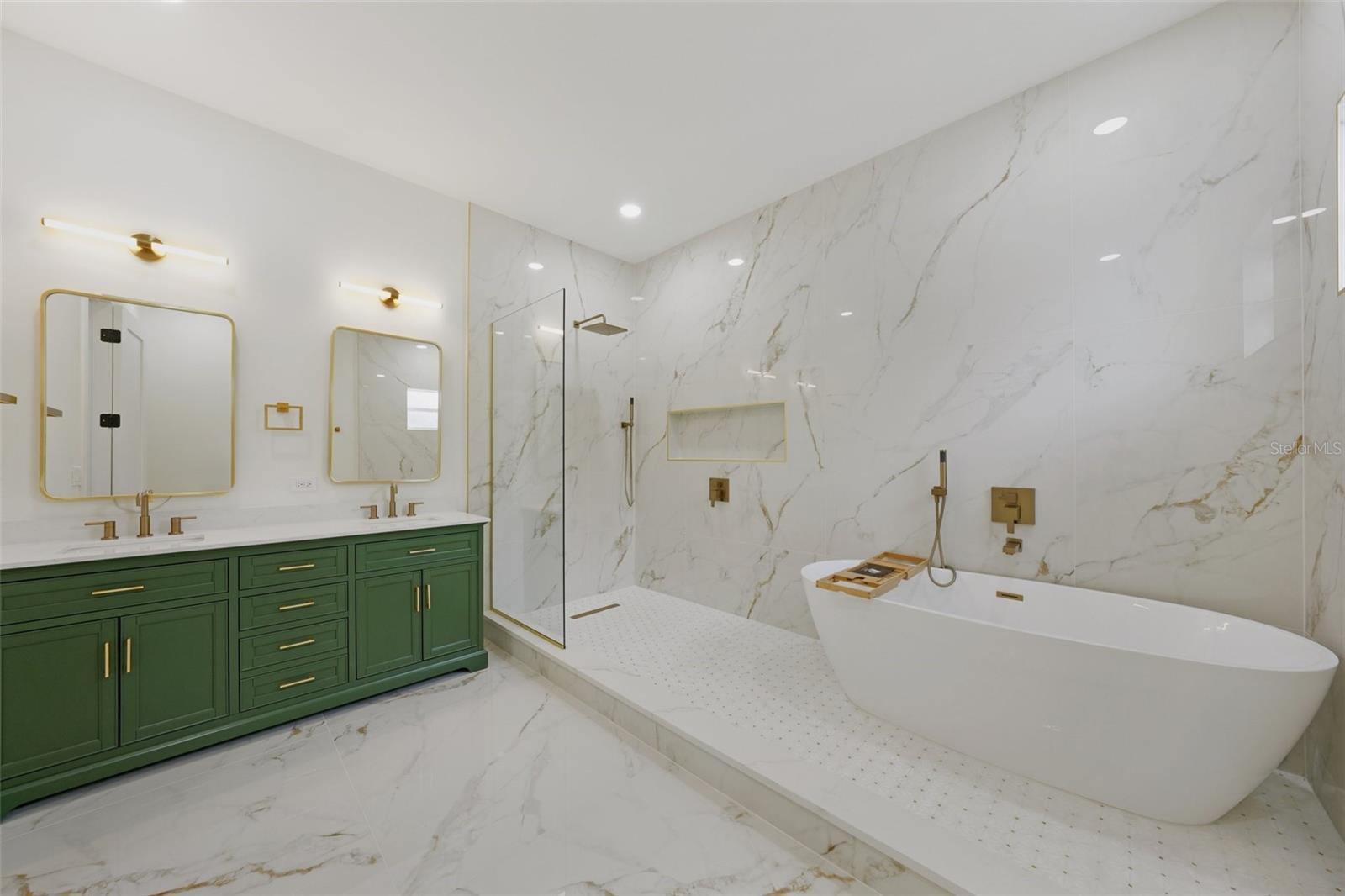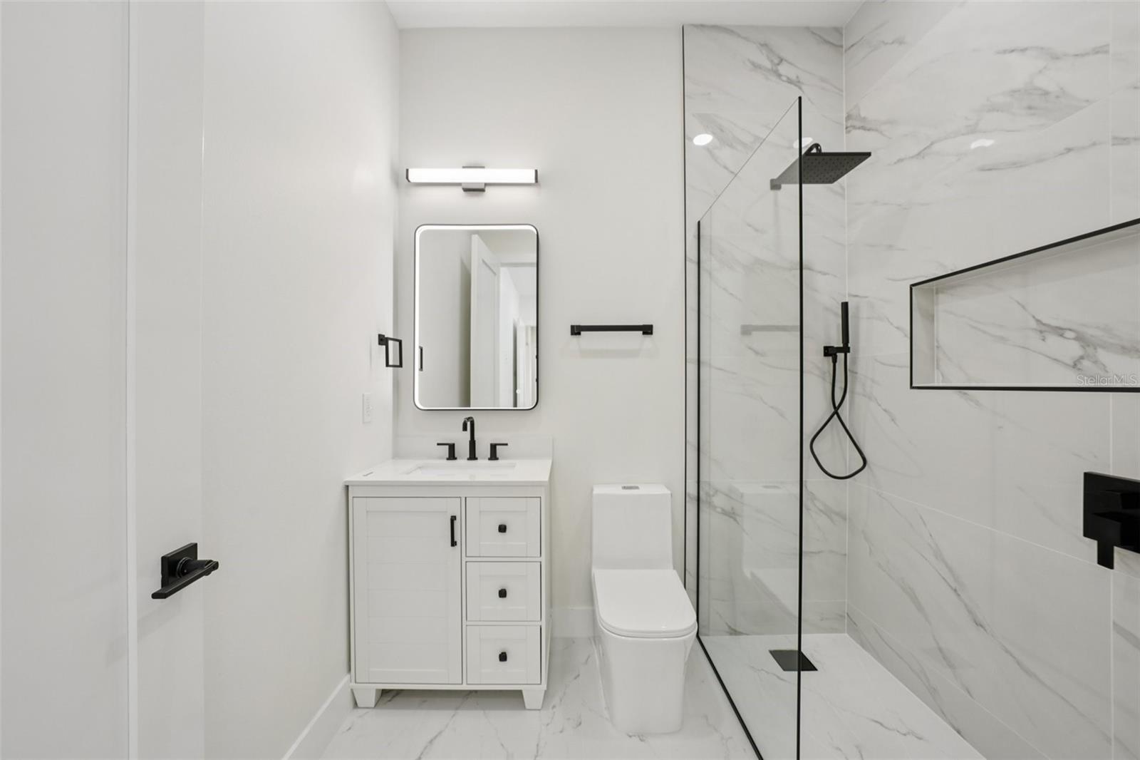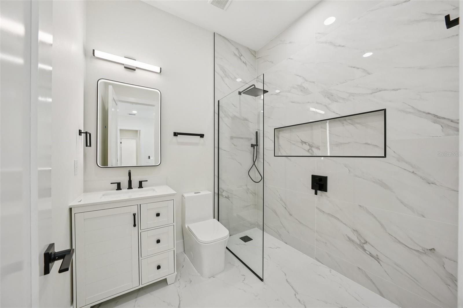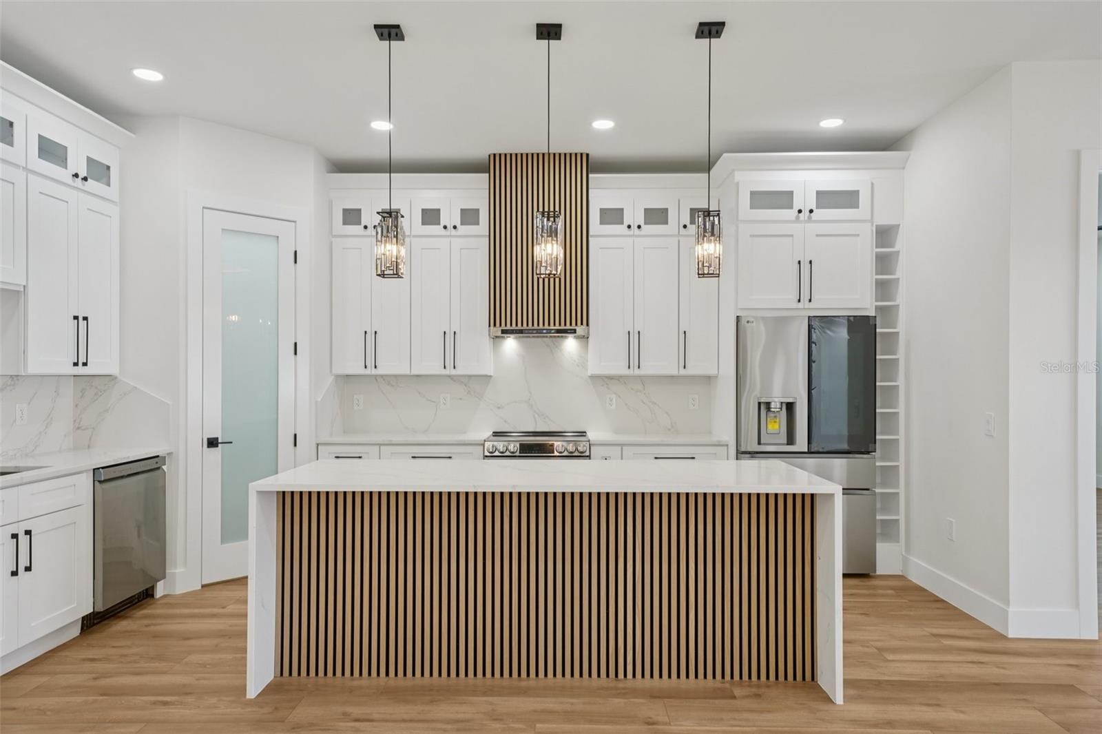 Welcome to 1584 Nursery Rd, a stunning brand new 4 bedroom, 3 bathroom concrete block home. This contemporary coastal style masterpiece is fully finished and MOVE-IN-READY with 2,243 square feet of refined living space, full hurricane impact windows, doors, and sliders, and a 2 car garage. As you step inside, the home immediately showcases a modern and intentional palette. Custom millwork at the entry leads into an open-concept living area anchored by an electric fireplace and recessed TV enclosure that keeps the main wall clean and tailored. The kitchen features an oversized island with double waterfall quartz countertops, all-wood shaker cabinetry with soft close drawers, brand new luxury appliances, and a walk-in pantry. The layout works perfectly for both everyday living and entertaining. The primary suite is a true private retreat with a generous bedroom, large walk-in closet, and spa-level bathroom featuring a custom double vanity, floor to ceiling tile, a freestanding soaking tub, and an oversized shower with frameless glass partition. The tilework throughout is exquisite. Guest bathrooms maintain the same standard with floor to ceiling tile and curbless showers for sleek, modern finishes throughout. Thoughtful millwork, cohesive designer finishes, and impact-rated construction set this home miles apart from typical new builds and existing homes in the area. Enjoy the peace of mind of new construction with this move-in-ready, non-flood-zone, no-HOA stunner. Schedule your private showing of 1584 Nursery Rd today and make this exceptional new build yours.