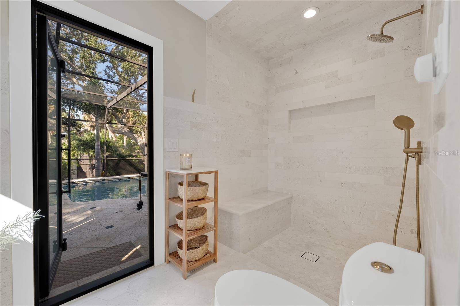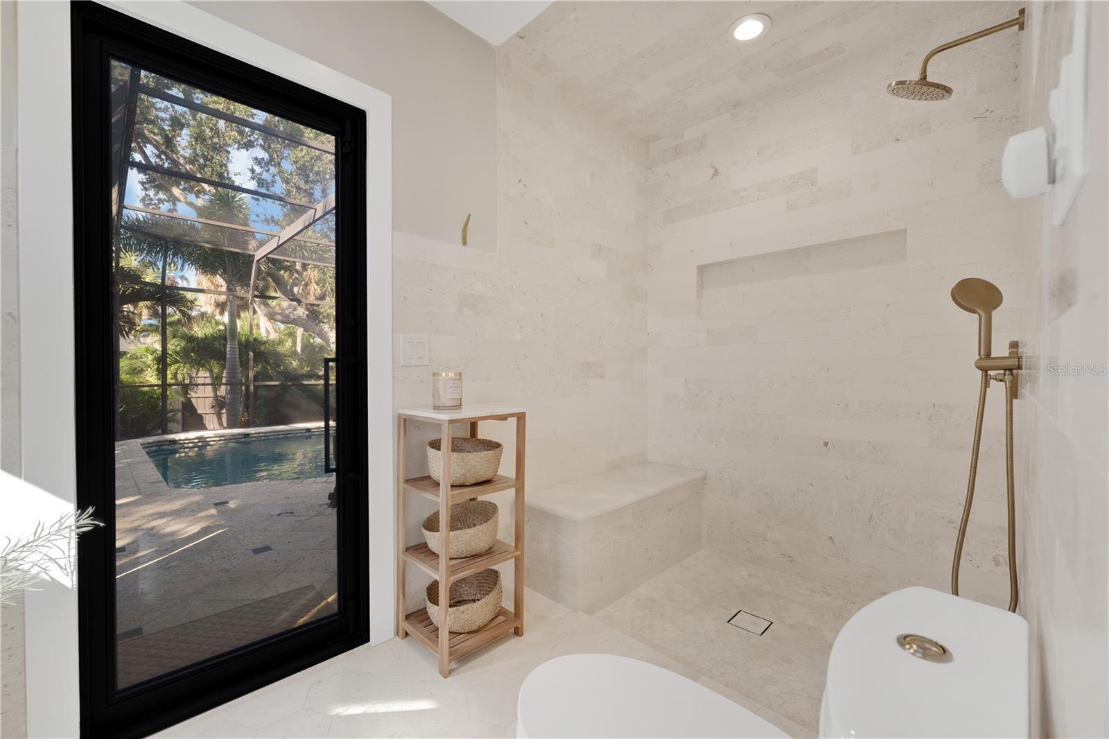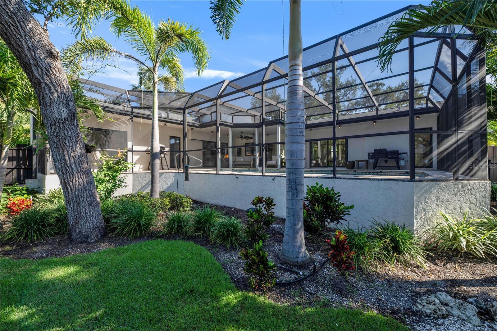 Experience tranquility and peace of mind in Siesta Key! Located in the highly sought-after neighborhood of Siesta Cove, this 4-bedroom, 2.5-bath home has been meticulously maintained and generously updated. The current owners completed extensive renovations including a newly remodeled primary bathroom, a custom locally handcrafted iron front door, and stunning iron interior doors with switchable privacy glass in both full baths. Peace of mind is paramount here: the home features new hurricane-rated windows, doors, skylights, and garage door. Further structural updates include a new flat roof connecting to the pool cage with new wood framing and super gutters. Additional upgrades include a conversion to a heated saltwater pool system, pre-wiring for security cameras, elegant alabaster chandeliers, a new Café dishwasher, and more. Situated at a high point on Siesta Key, this home experienced no flood water intrusion or damage during the historic 2024 hurricane season, with all improvements completed by the current owners prior to Hurricanes Helene and Milton. The split-bedroom floor plan features pocket sliding doors throughout that practically vanish to offer seamless integration with the sprawling, travertine-floored screened lanai and pool—perfect for entertaining or filling the house with fresh Florida air. Mature tropical landscaping surrounds the home, accentuating the outdoor oasis while providing exceptional privacy. Inside, cathedral ceilings and skylights amplify the spacious, open atmosphere. From the kitchen’s quartz countertops, solid wood cabinetry, gas cooktop, and stainless appliances to the stunning granite-accented gas fireplace, every inch of this home exudes quality craftsmanship and luxury. You will love the large laundry room, fully equipped with a sink and cabinetry matching the kitchen's high standards and aesthetic. The fourth bedroom is a private retreat located above the spacious, high-ceiling two-car garage; fully permitted by the current owners, it features its own mini-split system for comfort. Additional conveniences include a whole-home water softener, reverse osmosis kitchen filter, irrigation system, and outdoor shower. With glowing landscape lighting and the colorful Florida sky, this home is absolutely stunning at twilight. The icing on the cake is the location—just one mile from pristine beaches! Make an appointment today to experience the perfect balance of form and function in this incredible Siesta Key home.