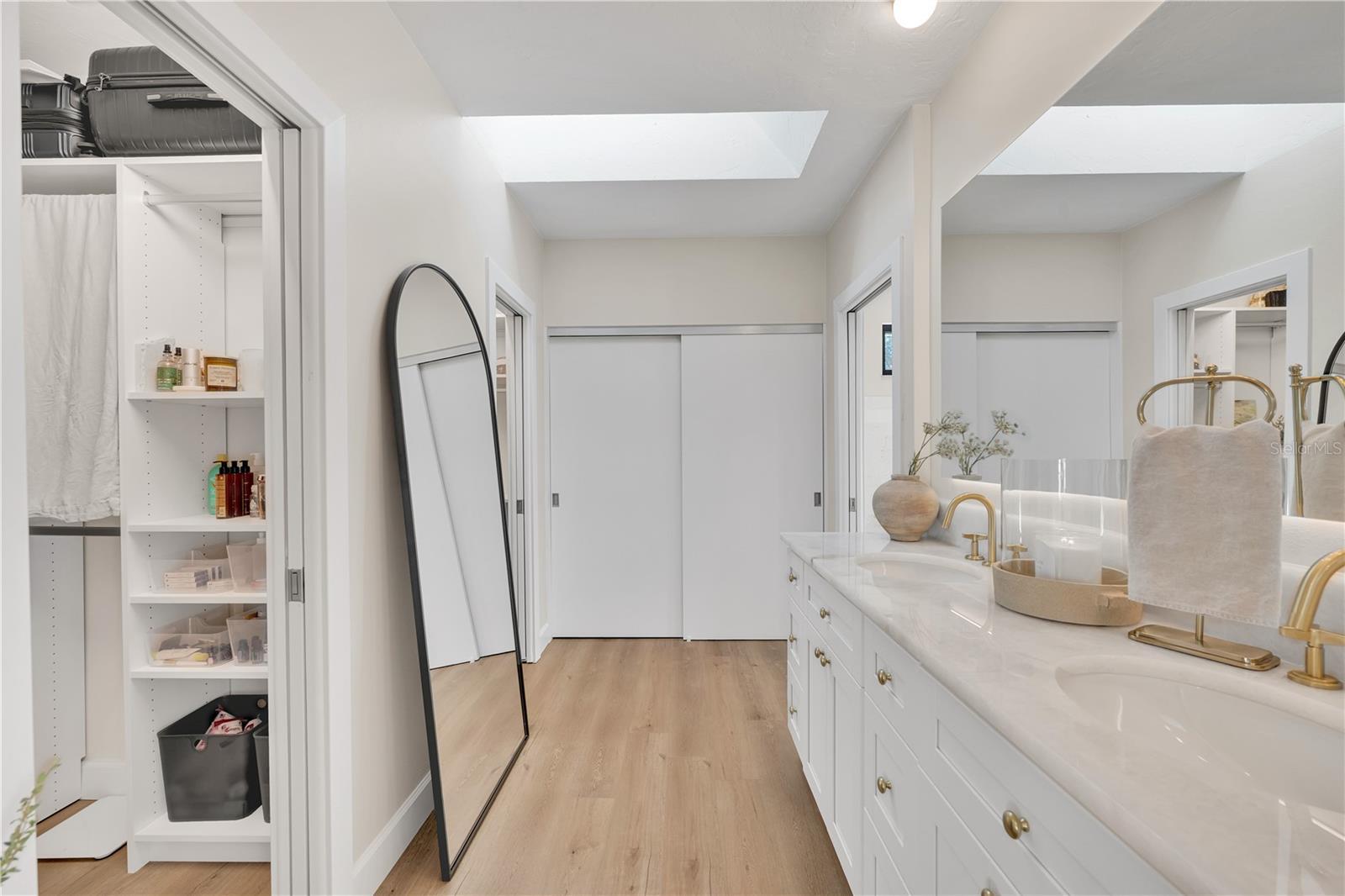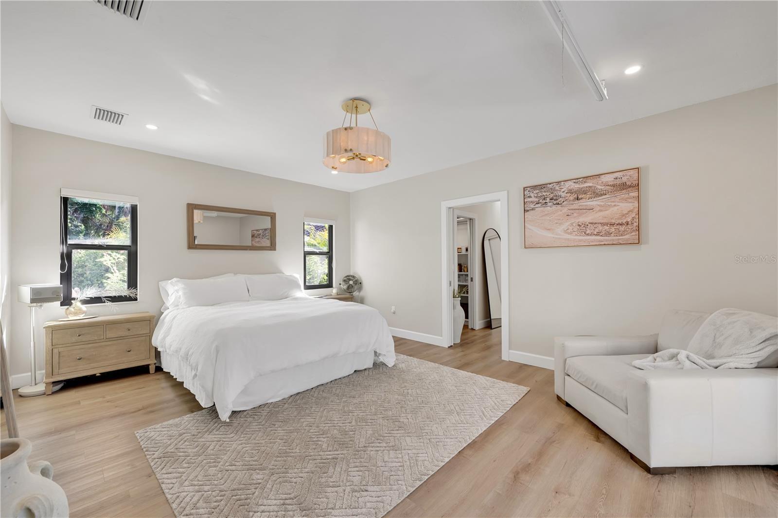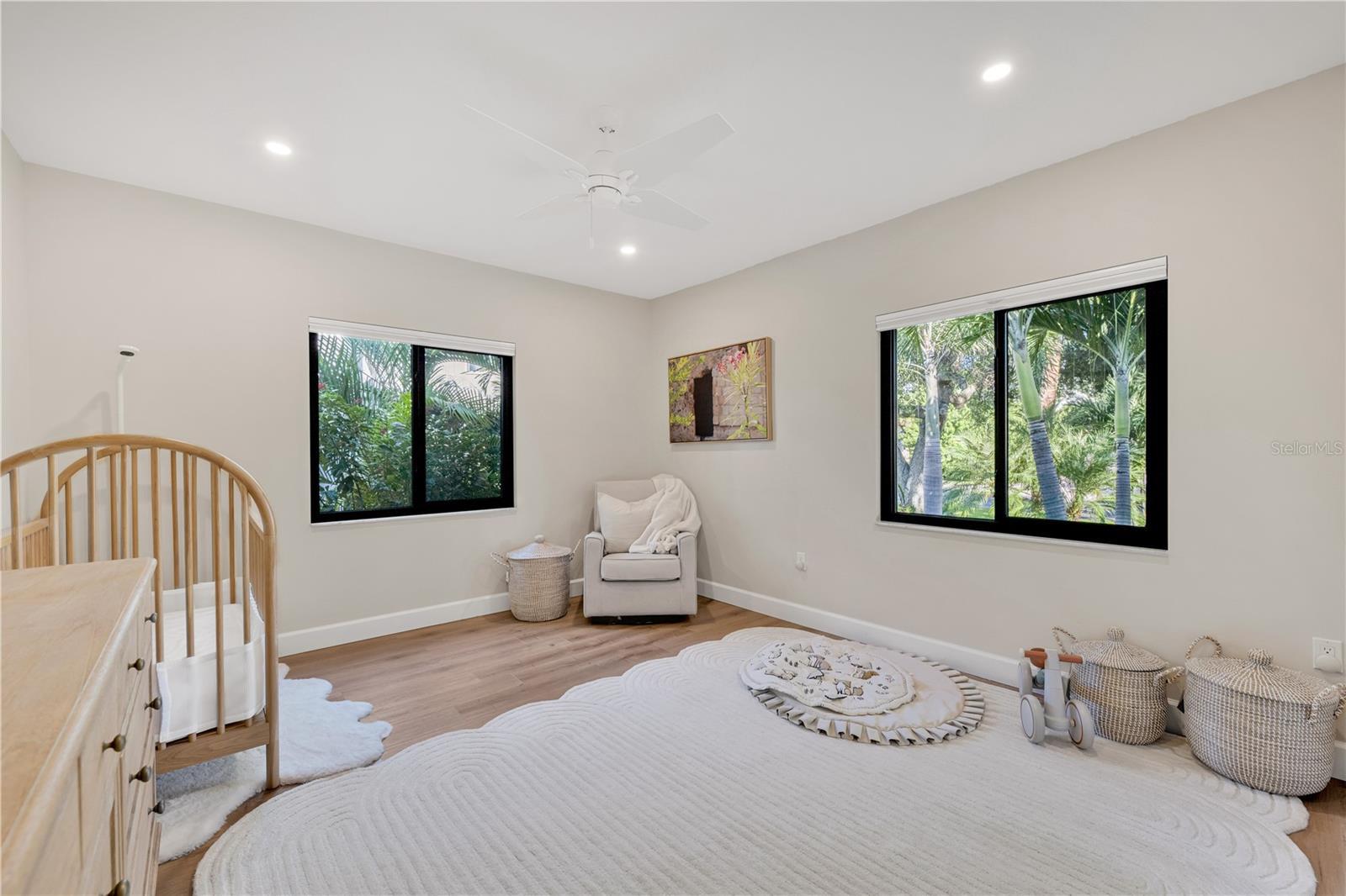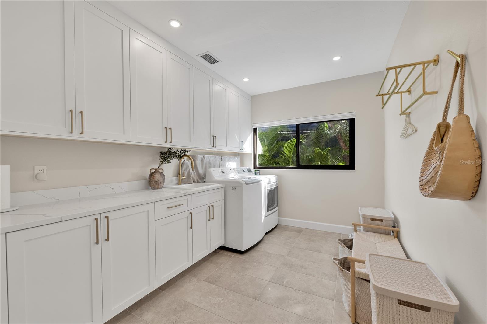 Experience tranquility and peace of mind in Siesta Key! Located in the highly sought-after neighborhood of Siesta Cove, this 4-bedroom, 2.5-bath home has been meticulously maintained and generously updated. The current owners completed extensive renovations including a newly remodeled primary bathroom, a custom locally handcrafted iron front door, and stunning iron interior doors with switchable privacy glass in both full baths. Peace of mind is paramount here: the home features new hurricane-rated windows, doors, skylights, and garage door. Further structural updates include a new flat roof connecting to the pool cage with new wood framing and super gutters. Additional upgrades include a conversion to a heated saltwater pool system, pre-wiring for security cameras, elegant alabaster chandeliers, a new Café dishwasher, and more. Situated at a high point on Siesta Key, this home experienced no flood water intrusion or damage during the historic 2024 hurricane season, with all improvements completed by the current owners prior to Hurricanes Helene and Milton. The split-bedroom floor plan features pocket sliding doors throughout that practically vanish to offer seamless integration with the sprawling, travertine-floored screened lanai and pool—perfect for entertaining or filling the house with fresh Florida air. Mature tropical landscaping surrounds the home, accentuating the outdoor oasis while providing exceptional privacy. Inside, cathedral ceilings and skylights amplify the spacious, open atmosphere. From the kitchen’s quartz countertops, solid wood cabinetry, gas cooktop, and stainless appliances to the stunning granite-accented gas fireplace, every inch of this home exudes quality craftsmanship and luxury. You will love the large laundry room, fully equipped with a sink and cabinetry matching the kitchen's high standards and aesthetic. The fourth bedroom is a private retreat located above the spacious, high-ceiling two-car garage; fully permitted by the current owners, it features its own mini-split system for comfort. Additional conveniences include a whole-home water softener, reverse osmosis kitchen filter, irrigation system, and outdoor shower. With glowing landscape lighting and the colorful Florida sky, this home is absolutely stunning at twilight. The icing on the cake is the location—just one mile from pristine beaches! Make an appointment today to experience the perfect balance of form and function in this incredible Siesta Key home.