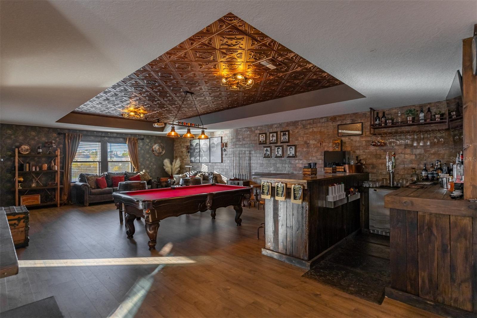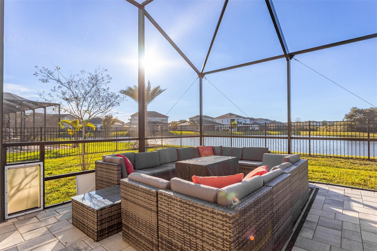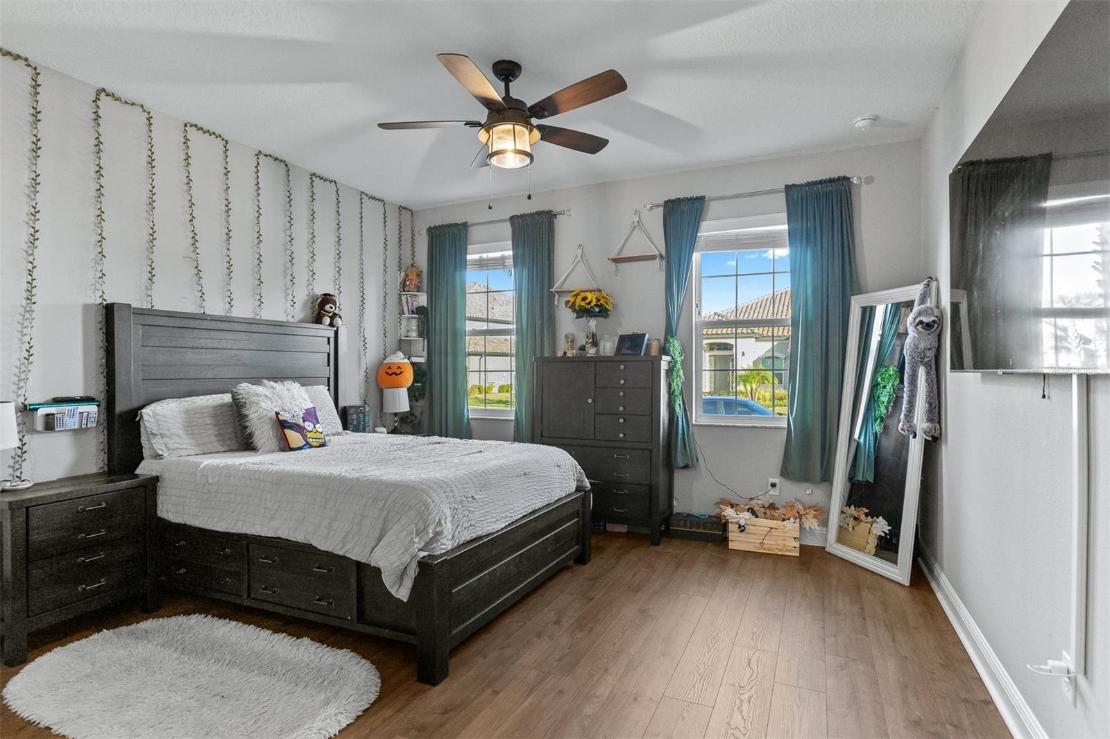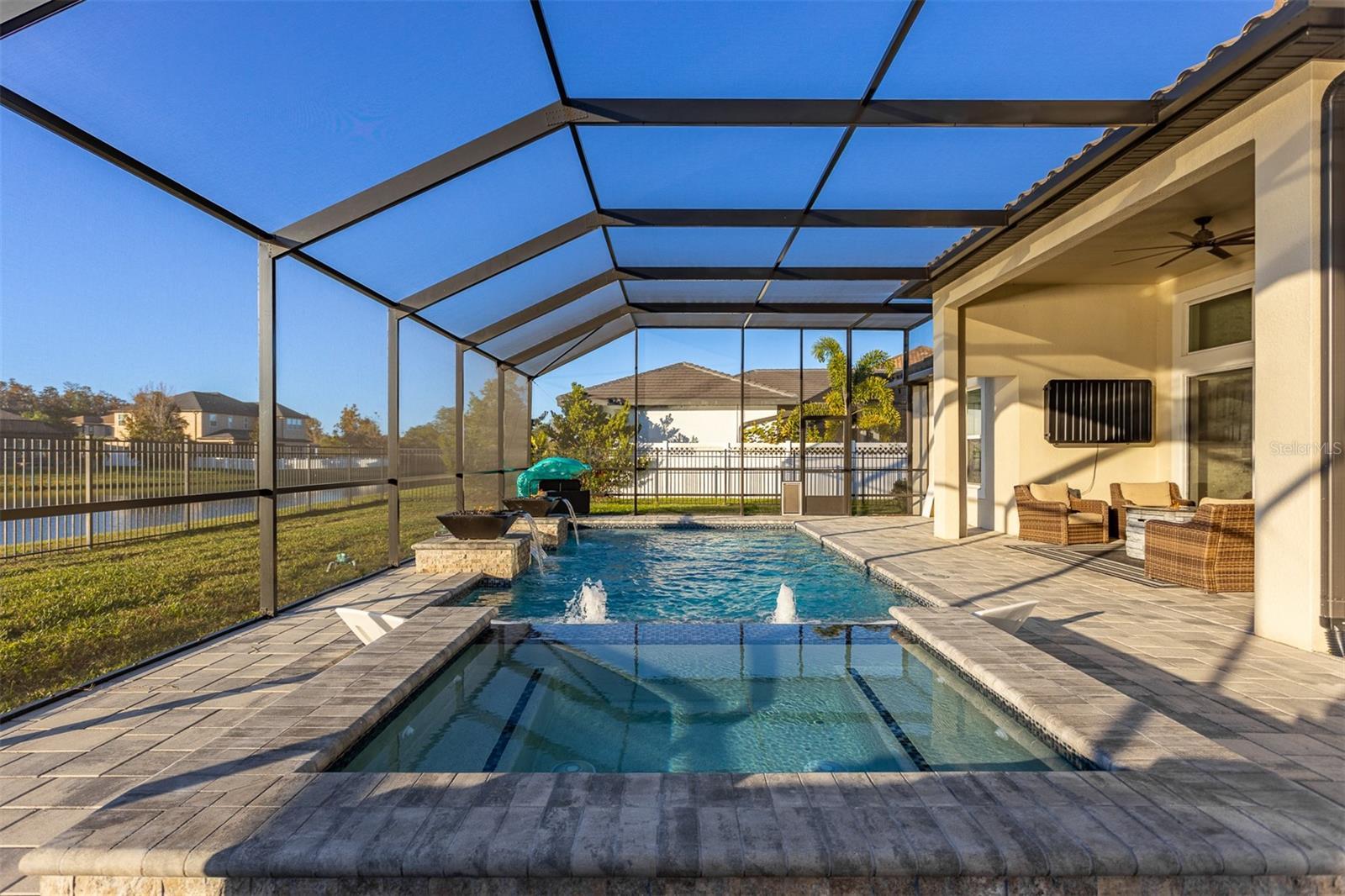 Welcome to this stunning MI-built home offering 5 bedrooms, 4.5 bathrooms, high ceilings—including elegant tray ceilings—and an incredible blend of comfort and luxury. With all bedrooms located on the first floor except for one, this thoughtfully designed floorplan provides ideal functionality for both everyday living and entertaining. Upstairs, you’ll find a spacious bonus room complete with a built-in bar, projector, and an additional bedroom and bathroom—perfect for guests, movie nights, or a private retreat. The home features wood laminate flooring throughout and “wood” tile in all bathrooms, adding both style and durability. The primary suite includes a large walk-in shower and a huge soaking tub, creating a spa-like experience right at home. The main living area impresses with a stone accent wall and cozy fireplace, while the gourmet kitchen boasts a gas range, stainless steel appliances, quartz countertops, tankless water heater, custom light fixtures, and automatic/electric blinds on the sliders. Enjoy outdoor living at its finest with a brand-new pool and spa, complete with water and fire features, all fully controlled by a convenient phone app. There’s also a gas hookup on the patio, perfect for grilling or an outdoor kitchen. The home faces west, offering breathtaking sunsets over the pond. Located in the highly desirable WaterGrass community, residents enjoy resort-style amenities, including multiple pools (lap pool + splash pad), a large covered lanai, clubhouse with office/meeting spaces, tennis and basketball courts, playgrounds, and a fitness center—all for an incredibly low HOA of just $161/year. Conveniently situated just across the street from the famous Epperson Crystal Lagoon, and close to Publix at Innovation Springs, shopping, dining, and the outdoor KRATE mall. Commuting is easy with Downtown Tampa only 35 minutes away, Tampa International Airport about 45 minutes, and Orlando & Disney less than 1.5 hours. This exceptional home offers the perfect balance of luxury, location, and lifestyle—don’t miss the opportunity to make it yours!