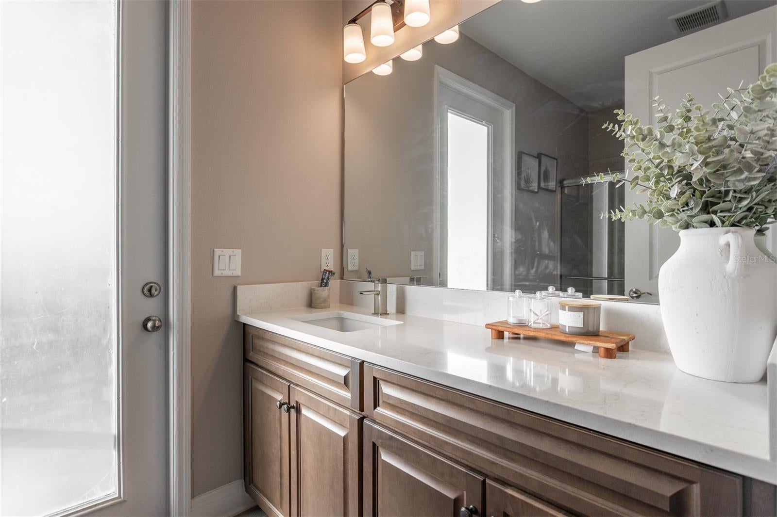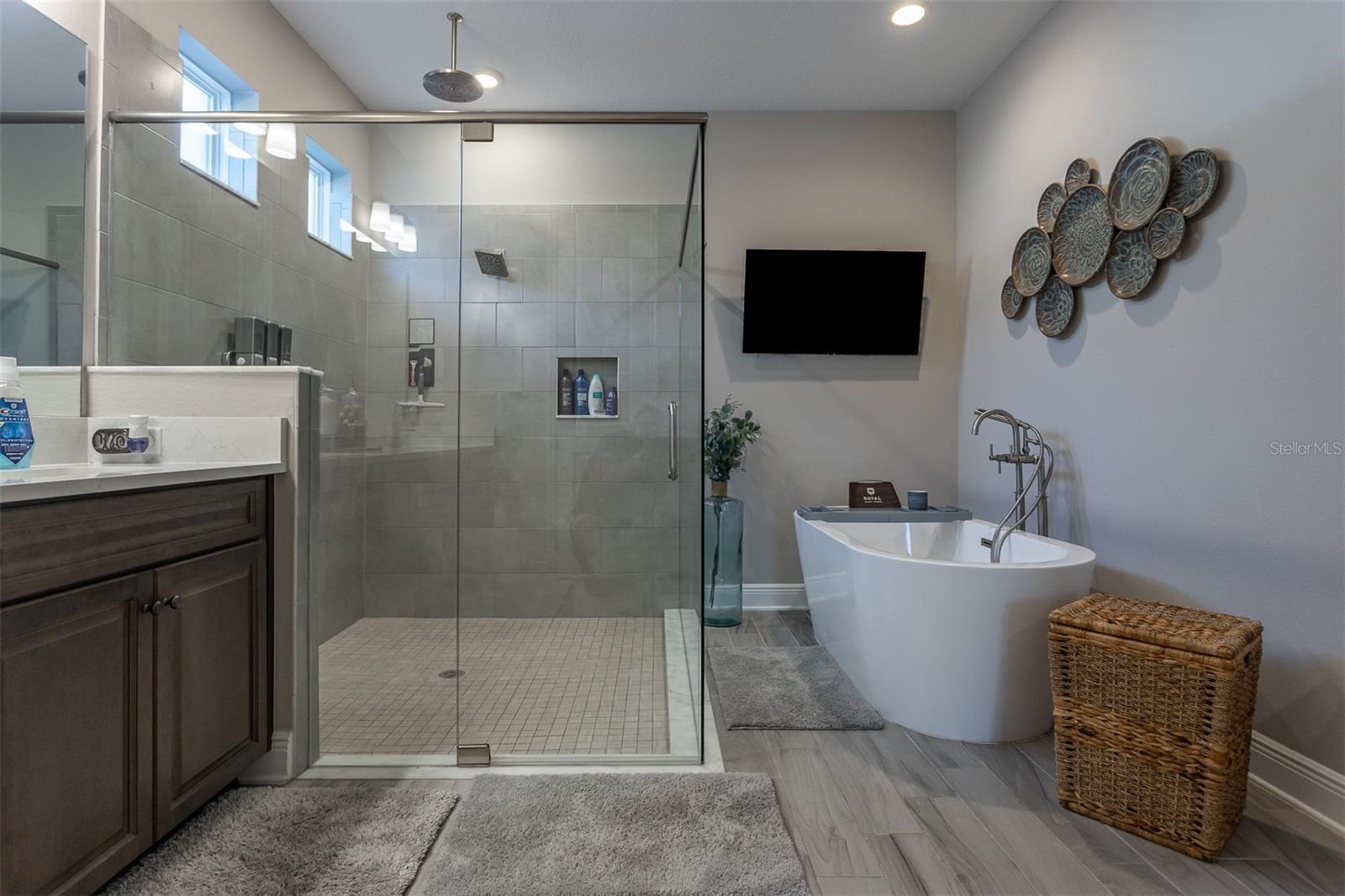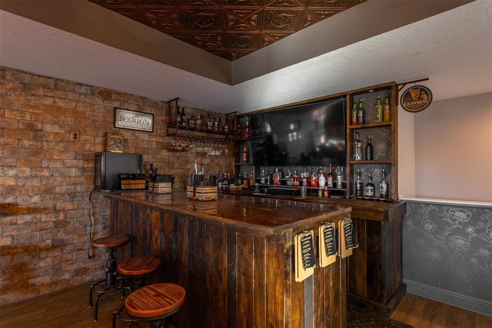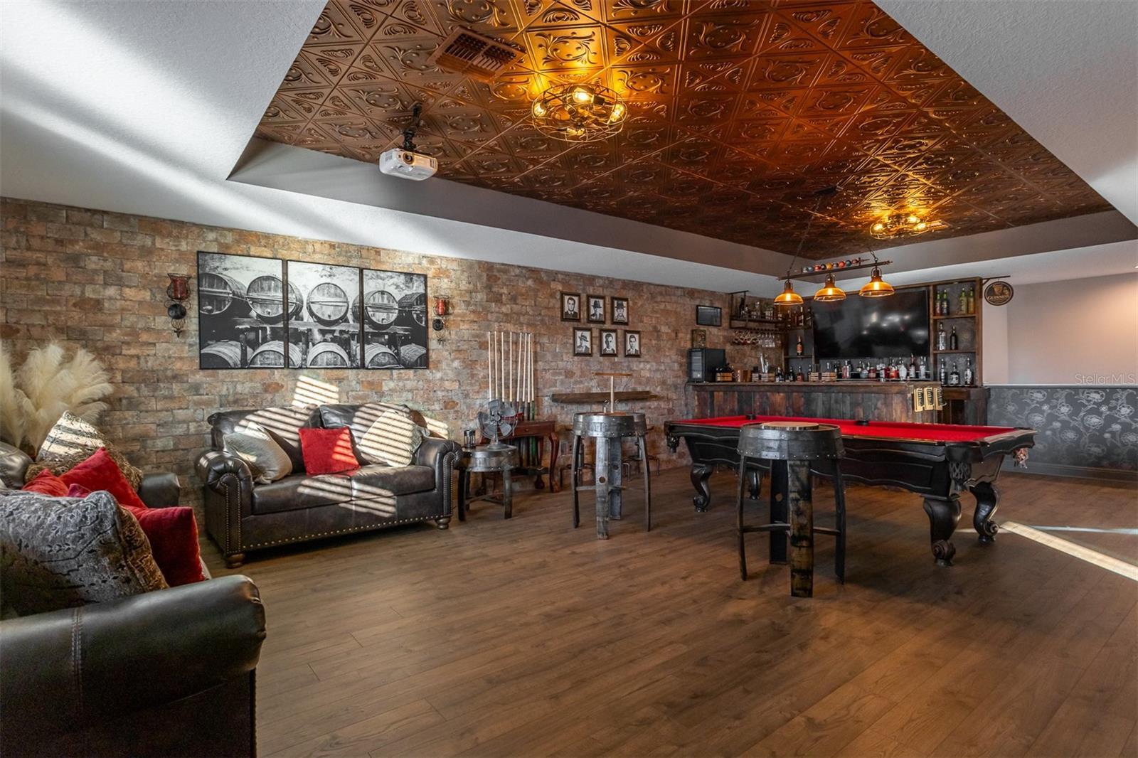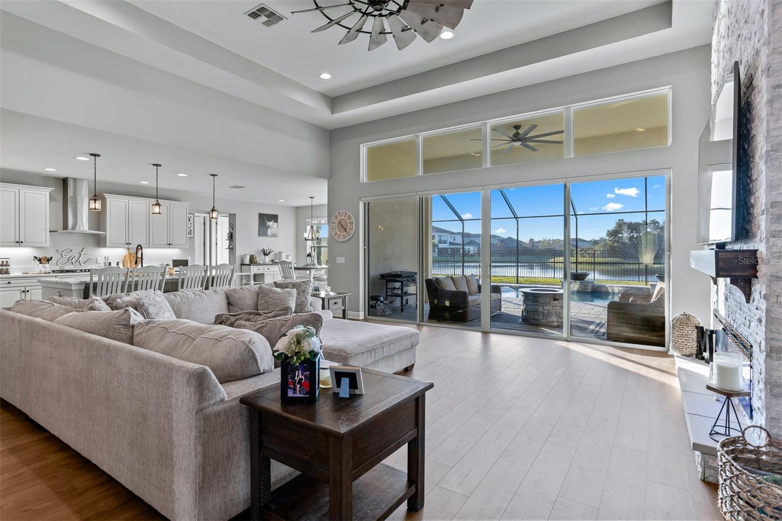 Welcome to this stunning MI-built home offering 5 bedrooms, 4.5 bathrooms, high ceilings—including elegant tray ceilings—and an incredible blend of comfort and luxury. With all bedrooms located on the first floor except for one, this thoughtfully designed floorplan provides ideal functionality for both everyday living and entertaining. Upstairs, you’ll find a spacious bonus room complete with a built-in bar, projector, and an additional bedroom and bathroom—perfect for guests, movie nights, or a private retreat. The home features wood laminate flooring throughout and “wood” tile in all bathrooms, adding both style and durability. The primary suite includes a large walk-in shower and a huge soaking tub, creating a spa-like experience right at home. The main living area impresses with a stone accent wall and cozy fireplace, while the gourmet kitchen boasts a gas range, stainless steel appliances, quartz countertops, tankless water heater, custom light fixtures, and automatic/electric blinds on the sliders. Enjoy outdoor living at its finest with a brand-new pool and spa, complete with water and fire features, all fully controlled by a convenient phone app. There’s also a gas hookup on the patio, perfect for grilling or an outdoor kitchen. The home faces west, offering breathtaking sunsets over the pond. Located in the highly desirable WaterGrass community, residents enjoy resort-style amenities, including multiple pools (lap pool + splash pad), a large covered lanai, clubhouse with office/meeting spaces, tennis and basketball courts, playgrounds, and a fitness center—all for an incredibly low HOA of just $161/year. Conveniently situated just across the street from the famous Epperson Crystal Lagoon, and close to Publix at Innovation Springs, shopping, dining, and the outdoor KRATE mall. Commuting is easy with Downtown Tampa only 35 minutes away, Tampa International Airport about 45 minutes, and Orlando & Disney less than 1.5 hours. This exceptional home offers the perfect balance of luxury, location, and lifestyle—don’t miss the opportunity to make it yours!