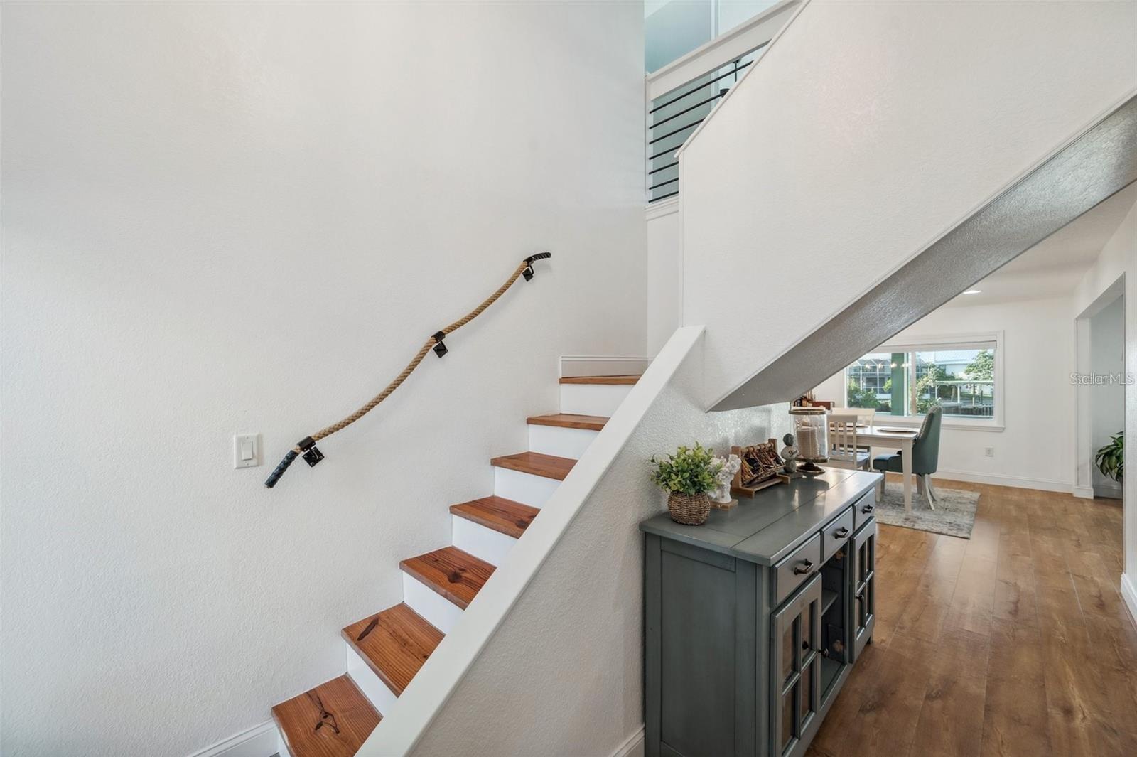 Discover the essence of luxurious and practical living in this stunning 4-bedroom residence, offering over 3,000 square feet of beautifully designed space—all for under $1,000,000! The home features a breathtaking heated pool recently updated with a $30,000 pebble tech finish, complete with a sun shelf, bench, beautiful tile accents, and a brand new pool pump, creating an ideal oasis for relaxation and entertaining. With a layout that suits families and remote professionals alike, this home includes a convenient office/nursery next to the expansive owner’s suite. It boasts three elegant bathrooms and stylish modern light fixtures throughout. The spacious lower-level bedroom has a walk-out slider leading to the screened lanai, while the upper-level split floorplan contains the serene owner’s suite, two additional bedrooms, and a cozy living area. Practicality is a focus here with an upstairs laundry area and extra hookups in the garage. The open and bright floorplan features an abundance of windows, sliders, and a skylight, fostering a welcoming atmosphere, complemented by well-thought-out storage options. Rest easy with durable hurricane windows and doors, ensuring comfort during stormy weather. This home has confidently withstood hurricanes Milton and Helene with no flooding, showcasing its resilience. Step into your captivating backyard oasis, perfect for hosting gatherings! Enjoy a generously-sized floating dock and a dedicated jet ski dock for your water adventures. Experience spectacular sunsets and dining on the screened lanai, while you observe manatees and dolphins delighting in the canal. The custom-built bar offers ample seating for fun evenings with friends and family. With access to a private boat ramp and direct Gulf access, your aquatic adventures are just moments away. Nestled on a quiet cul-de-sac, this home provides abundant parking for your boat and RV, complete with convenient 30-amp electrical hookups. Don't miss out on this incredible opportunity—schedule your showing today and take the first step towards making this exceptional canal home yours!