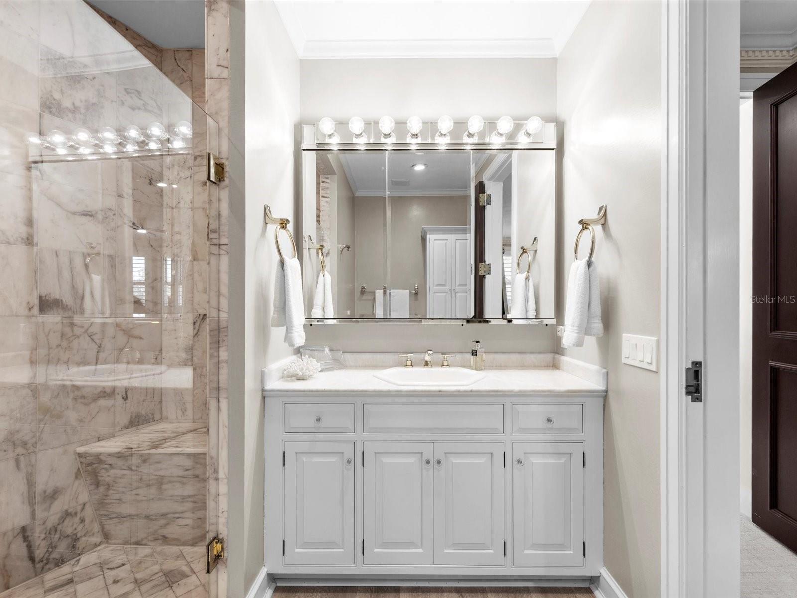 This private, world-class waterfront estate owned by the family of Formula One World Champion Nigel Mansell sits within the exclusive double-gated enclave of Belleview Island. Pole positioned on a rare double lot, the property offers breathtaking panoramic views of Clearwater Harbor and the historic Donald Ross–designed Belleair Golf and Country Club, Florida’s first golf course. A true boater’s paradise, the protected cove features a custom dock with a jet ski lift, along with 60,000 lb. and 80,000 lb. boat lifts, providing quick and direct access to Clearwater Pass and the Gulf of America. Inside, the custom-built residence showcases refined craftsmanship and elegant living spaces. A grand, custom staircase introduces the home and opens into an expansive great room designed for sophisticated entertaining, complete with a dining area, wet bar, custom built-ins, and sweeping water views. The gourmet kitchen offers a large island, custom cabinetry, granite countertops, a butler’s pantry, and a charming breakfast room overlooking both the bay and golf course. The second floor is a private retreat featuring a luxurious primary suite with its own balcony, vaulted ceilings, fireplace, and dual spa-caliber bathrooms—one with a walk-in shower and the other with a whirlpool tub—plus two walk-in closets. Three additional guest suites each include marble bathrooms and walk-in closets. Outdoor living is exceptional, with a beautifully designed pool house featuring an open wood ceiling, wine refrigerator, and grilling area, all overlooking an elegant paver pool deck. The 1,100 sq ft air-conditioned three-car garage offers high ceilings ideal for car lifts, while the landscaped grounds and custom paver driveway enhance the home’s grand presence. Engineered for long-term resilience, this elevated block construction features custom electric hurricane shutters, a whole-home Generac generator, and a new seawall (2023). The home further benefits from updated AC systems (all under warranty), a new pool and hot tub heater, tankless water heater, water softener, solar panels, LED lighting throughout, and numerous updated appliances. This exceptional residence combines pedigree, privacy, craftsmanship, and unmatched waterfront living. Secure your place in the winner's circle and experience one of Belleview Island’s finest estates.