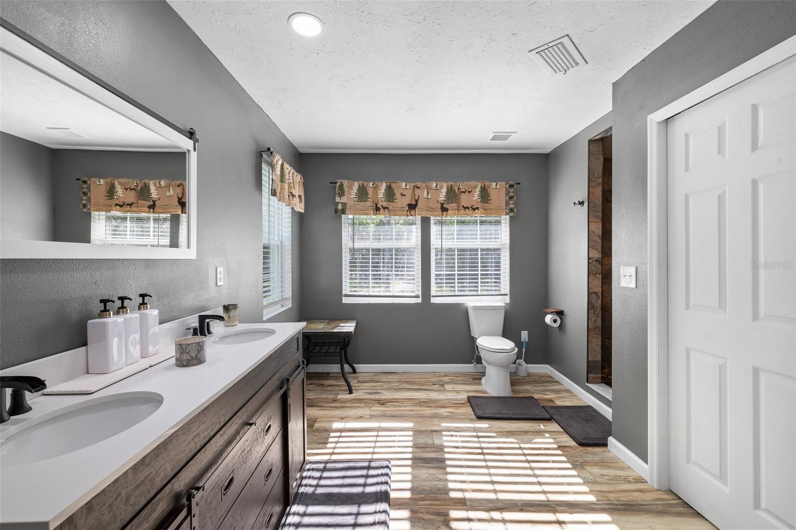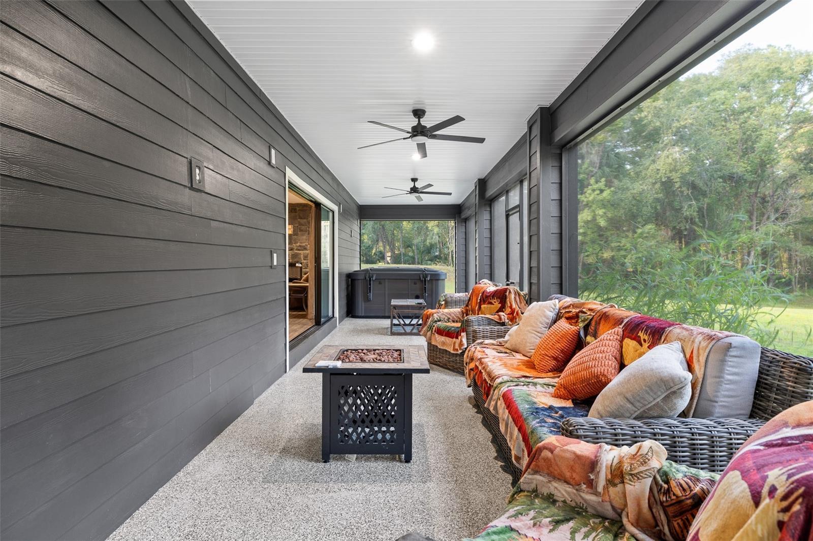MOTIVATED SELLERS ~ Tucked away on 5.46 peaceful, fully fenced acres, this Silver Springs retreat offers a rare blend of tranquility, character, and space to connect. From the moment you arrive, the gated entry and natural surroundings set a calming tone—welcoming you into a lifestyle that feels both secluded and effortlessly inviting. Step onto the front porch, the perfect perch for morning coffee or quiet reflection. Inside, the open-concept floor plan unfolds with fresh flooring, a wood-burning fireplace, and a stunning new kitchen outfitted with stainless steel appliances. Just beyond, a second kitchen, with a full butler’s setup—featuring its own sink, dishwasher, generous counter and cabinet space—adds ease and elegance to entertaining, whether you're preparing a festive holiday feast or a relaxed weekend gathering. Together, these spaces create a natural hub for connection, blending warmth and functionality in a layout designed to bring people together. The spacious primary suite features a custom-built tile shower and large closet, in addition to a private deck. On the other side of the home are two additional bedrooms and a shared bathroom, ideal for guests, family, or a quiet home office. Downstairs, the lower level is designed for connection and celebration, with a custom wet bar, electric fireplace, multiple multipurpose rooms, and a convenient half bath. From this level, step out to the large, screened lanai where a hot tub and sweeping views of your acreage invite you to relax. The expansive acreage offers fruit trees and open green space, adding ease, possibility, and plenty of room for your furry friends to roam. A large workshop, equipped with electricity provides space for hobbies, storage, or creative pursuits. Located just minutes from Silver Springs State Park, Ray Wayside Park, and only 20 minutes to downtown Ocala, this property offers the perfect balance of nature, privacy, and proximity. If you’ve been searching for a place that feels like a retreat but lives like a home, then you're search ends here.