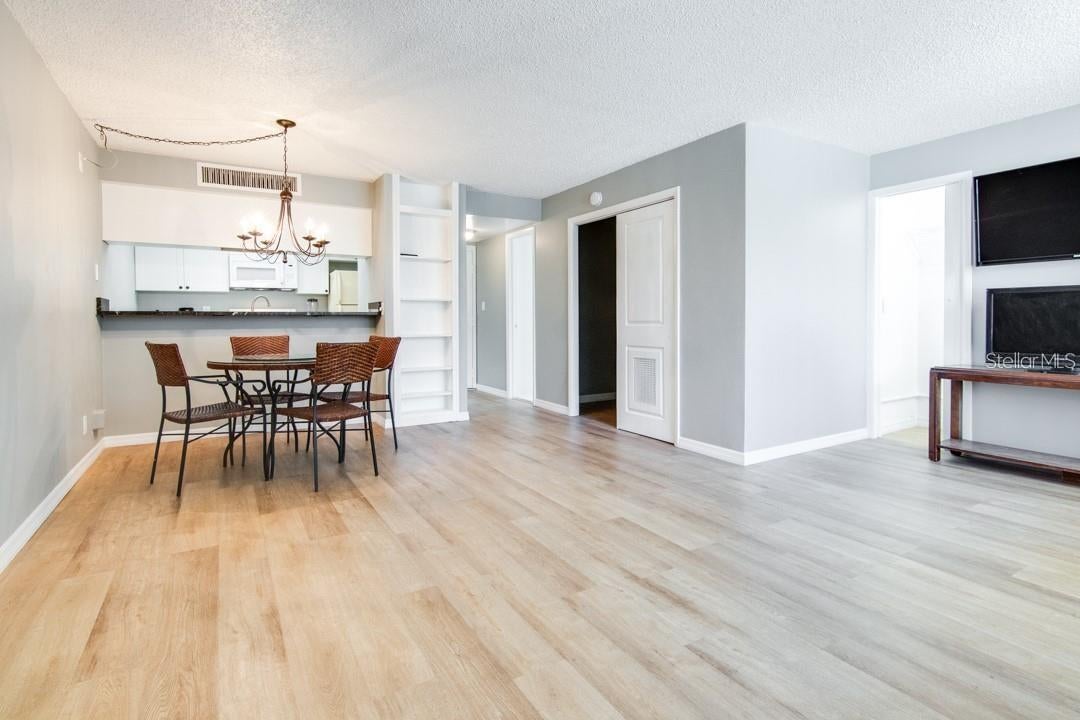 2615 Cove Cay Dr #205, Clearwater, FL – Cove Cay Golf Club. Welcome to Cove Cay, a gated, waterfront golf course community in central Clearwater where all ages are welcome. This updated second-floor condo offers elevator access that opens just steps from the front door. The unit features a renovated kitchen and bathroom, updated flooring throughout, and a spacious open living and dining area. Additional highlights include a washer and dryer, double closets, and a covered carport parking space. Enjoy relaxing in the enclosed lanai with views of the heated community pool and hot tub. Cove Cay offers a peaceful, well-maintained setting with optional on-site marina access and storage facilities available for an additional fee. Ideally located in mid-county Clearwater with easy access to shopping, dining, beaches, golf, and major roadways, as well as Tampa and St. Pete/Clearwater airports. Rent includes water, sewer, trash, and basic cable.