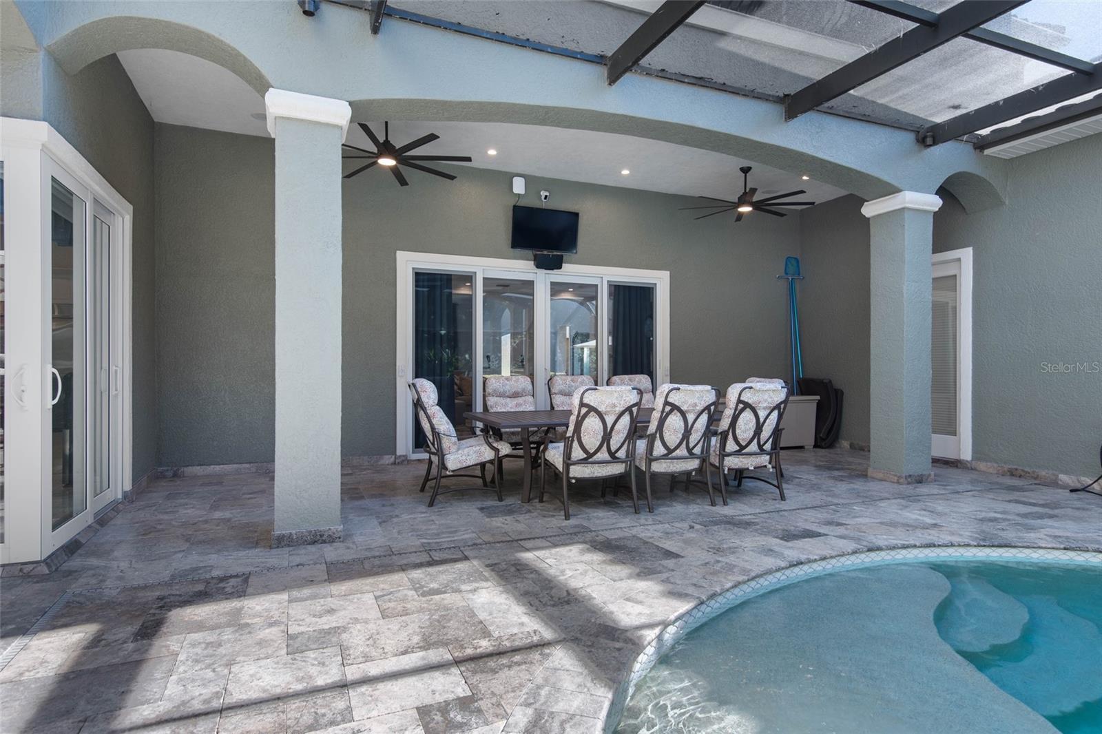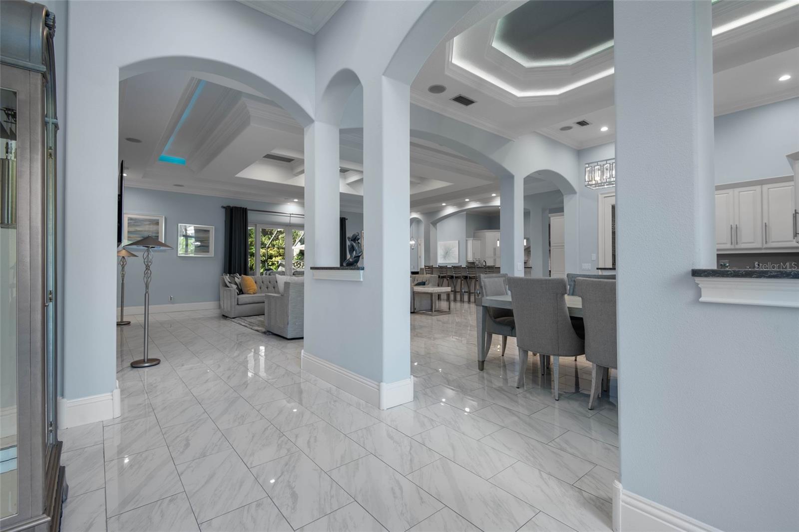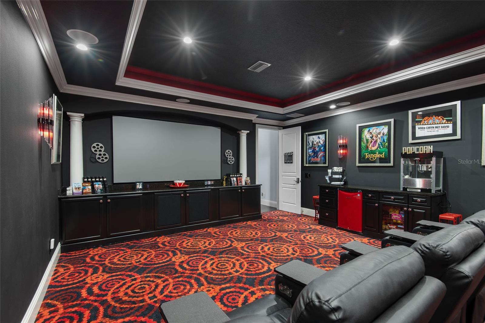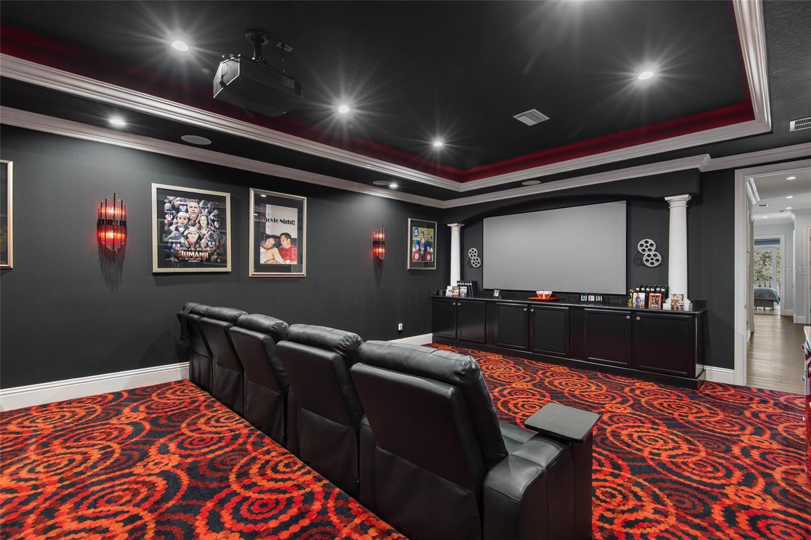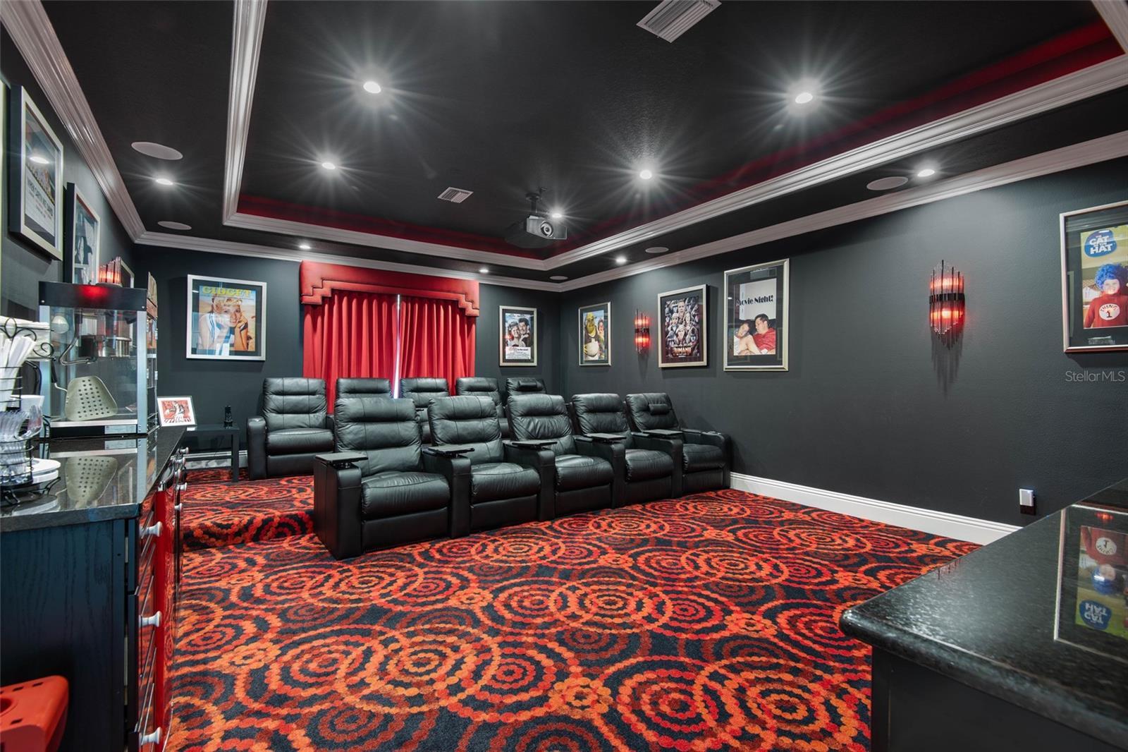 Discover refined coastal luxury in this resort-style 6 bedroom estate! Experience the pinnacle of Florida living in this completely renovated 5,798 sq ft, 6-bedroom coastal estate set on a 0.44-acre private lot backing up to the scenic MalaCompra trails. Offering every modern upgrade, this home blends timeless elegance with cutting-edge comfort, delivering a true resort lifestyle inside and out. Step inside to find a fully updated interior featuring new flooring, lighting, smart switches, outlets, HVAC systems, tankless water heaters, and a whole-house generator. The home is wired extensively for smart-home functionality, with whole-home Sonos audio, integrated Ring security, hardwired ethernet/coax throughout, and smart shades on the kitchen and primary sliders. The thoughtfully designed layout includes 6 full bathrooms, a dedicated office, gym, an optional 7th bedroom, an elevator, central vacuum, and custom closets in every room. The gourmet kitchen is a chef’s dream with new cabinetry and countertops, a 48” gas range with double ovens, pot filler, 48” stainless refrigerator, large island, bar-height dining, and an 8-seat eat-in area under a beautiful chandelier. A butler’s pantry, walk-in temperature-controlled wine closet, and spacious laundry room with walk-in pantrycomplete this impeccable space. A formal dining room with tray-lit ceiling ads refined elegance for entertaining. The family room showcases a dramatic floor-to-ceiling media wall with a 100” linear fireplace and LED-lit tray ceiling. For movie lovers, the 10-seat theater includes blackout drapes and an available brand-new Sony laser projector and professional screen, plus a concessions area with popcorn machine and refrigerator. The huge recreation room delivers unmatched entertainment with an 8–10 seat bar (dishwasher, fridge/freezer, wine fridge), and room for a pool table, foosball, poker table, and air hockey all available. A screened balcony with travertine flooring and an adjacent flex/game room add even more versatility. Your private outdoor sanctuary features a completely redesigned pool with elevated hot tub, spillway, waterfalls, bubbler sun shelf, blower jets, and electric + propane heating, all controlled via Pentair WiFi. The expansive travertine deck includes a linear propane fireplace, and a fully equipped summer kitchen with grill, side burner, hood, fridge, storage, and bar-top seating. The property is further enhanced with: Fresh exterior paint, Hurricane-rated windows & sliders, Insulated impact-rated quiet garage doors, Air-conditioned 3-car garage with epoxy flooring, Driveway parking for up to 7 vehicles, Lush landscaping with color-changing LED lighting, Gemstone permanent soffit lighting, Custom aluminum gate & privacy wall with illuminated walkway, Invisible Fence pet containment system, Perimeter security cameras integrated with Ring & Alexa, Office • Gym • Optional 7th bedroom, Whole-house generator, Elevator and Central Vacuum. This home delivers unmatched quality, privacy, and convenience in one of the area’s most sought-after locations. It is truly Florida luxury living at its finest.