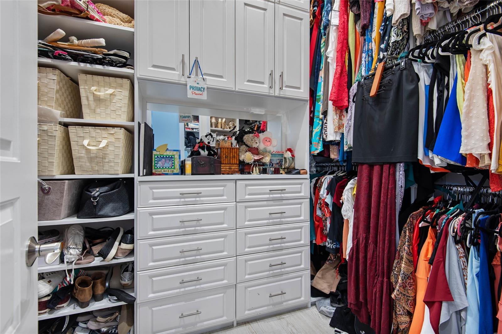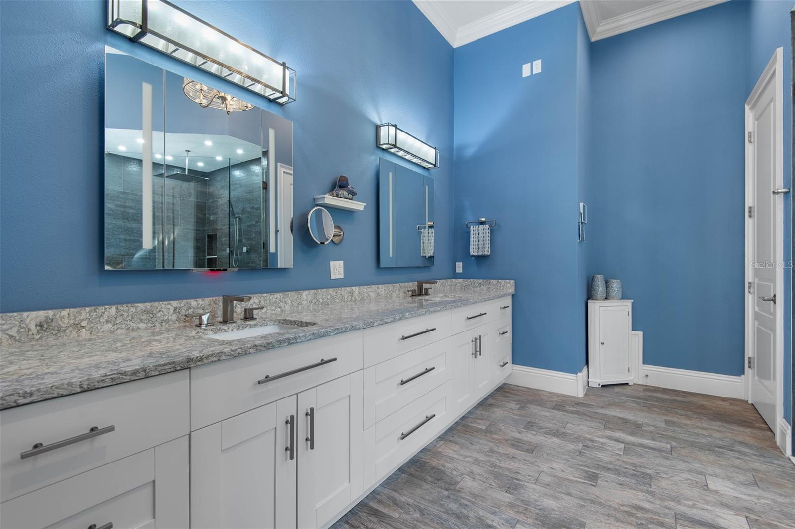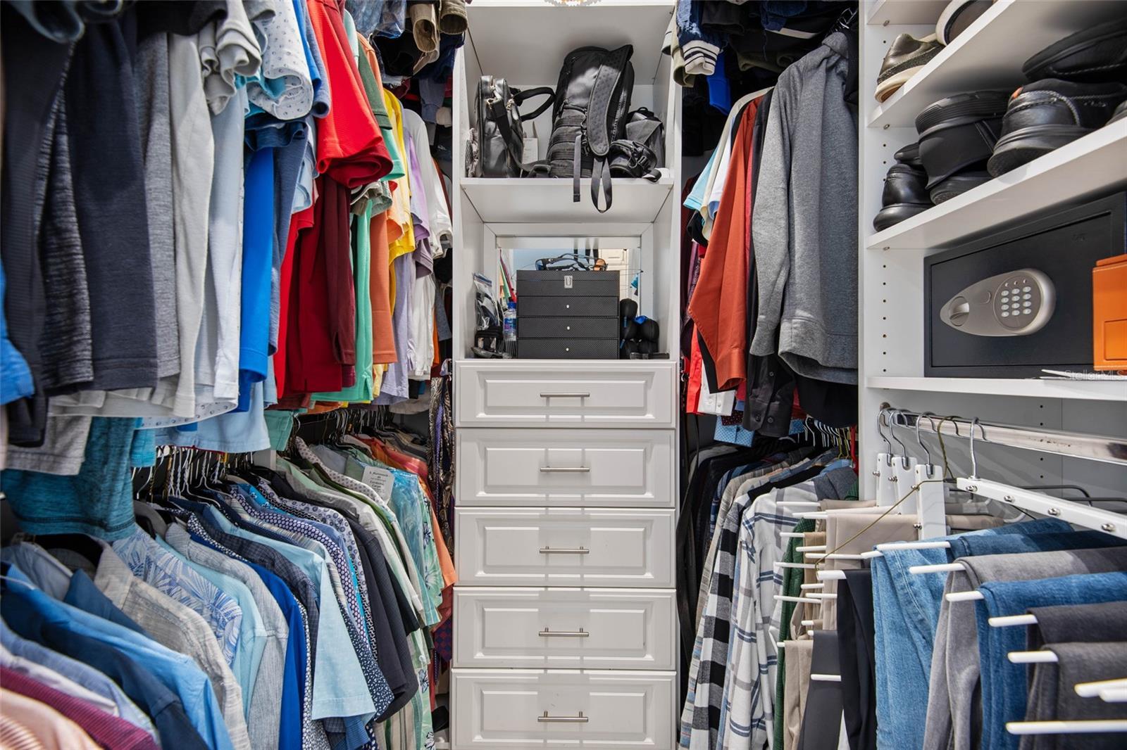 - Ceiling Fans(s), Central Vaccum, Crown Molding, Eat-in Kitchen, Elevator, High Ceilings, Open Floorplan, Primary Bedroom Main Floor, Smart Home, Solid Wood Cabinets, Split Bedroom, Stone Counters, Thermostat, Tray Ceiling(s), Walk-In Closet(s), Wet Bar, Window Treatments