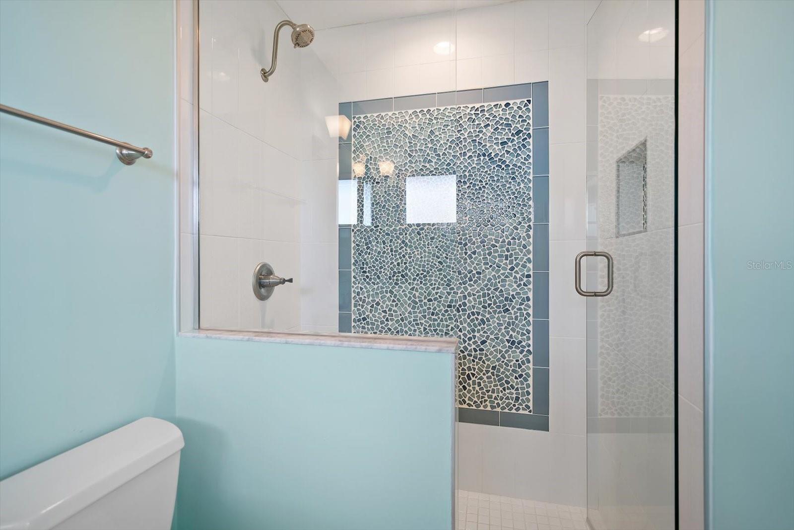 An amazing opportunity unfolds on one of the most sought-after streets in Dunedin—the first one-story home listed since last year’s storm, offering unmatched, postcard-perfect sunsets and panoramic water views that greet you the moment you step inside. Completely remediated and beautifully renovated, this move-in-ready coastal retreat blends timeless design with a relaxed, beachy feel, showcasing an incredible open and bright floor plan accented by new wood-look tile floors throughout. An abundance of windows frame unspoiled and remarkable views of St. Joseph’s sound and the gulf, with exclusive views of Honeymoon Island and Caladesi Island, creating a seamless connection between indoors and out. The crisp white kitchen is both stylish and functional, featuring quartz countertops, a breakfast bar, stainless steel appliances, and a pantry—perfect for casual mornings or sunset entertaining. Each bedroom is a private haven with its own ensuite bath, including the spacious primary suite where a wall of windows captures shimmering water views, complemented by two closets and a luxurious ensuite bath with a classic furniture-inspired vanity topped in marble and a custom-tiled walk-in shower. The additional bedrooms are equally well appointed, each offering generous closet space and matching vanities and fixtures for a cohesive, upscale feel. Outdoors, a private backyard invites relaxation, with ample room to add a pool, while the dock—complete with seating—sets the stage for watching dolphins, birds, and unforgettable sunsets paint the sky. A detached oversized two-car garage with a separate laundry room adds convenience, and the location is simply unbeatable: an easy golf-cart ride to charming downtown Dunedin, close to state parks, beaches, shopping, and beloved local restaurants. This is coastal living at its finest—rare, refined, and ready to be enjoyed.