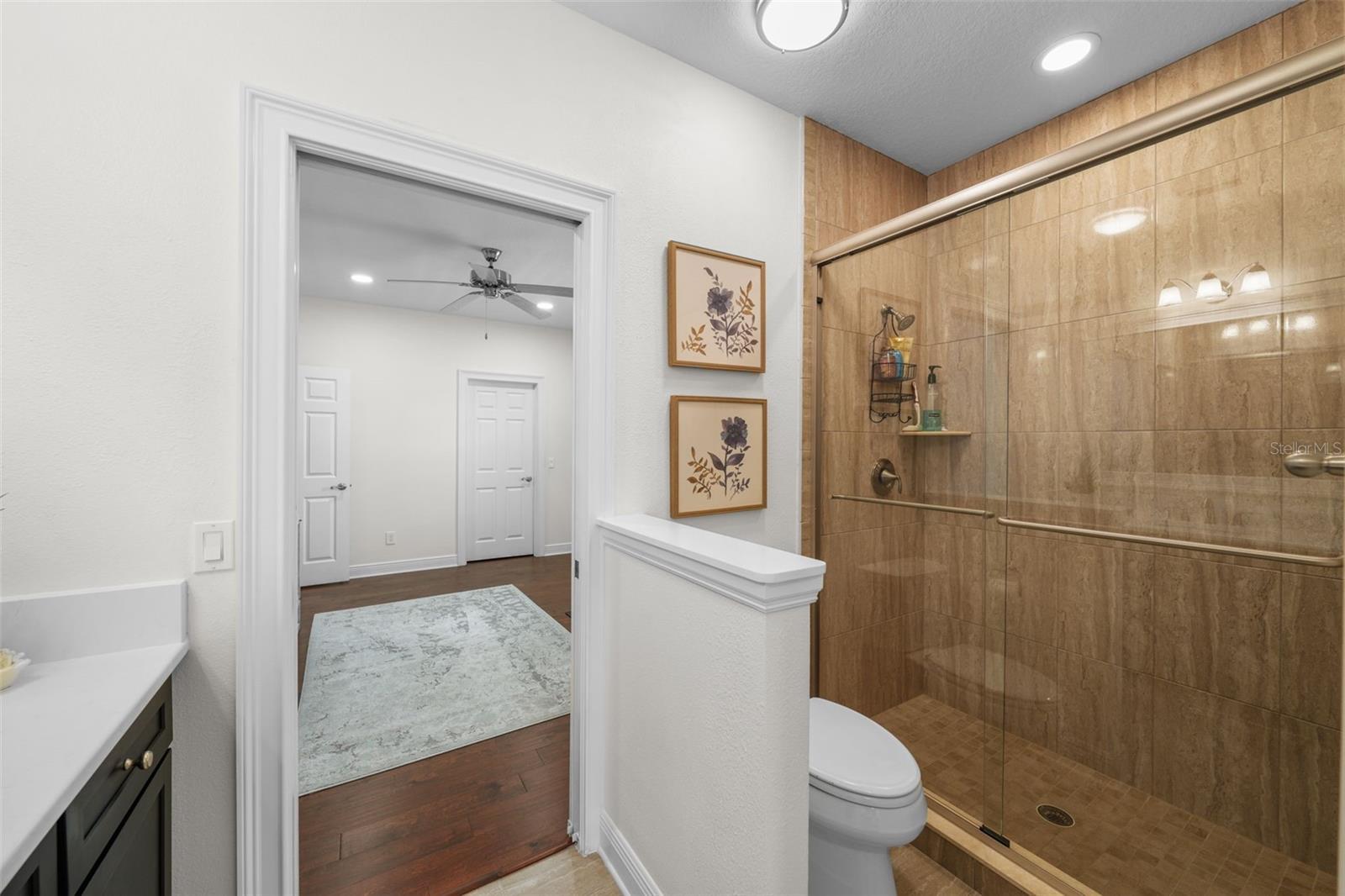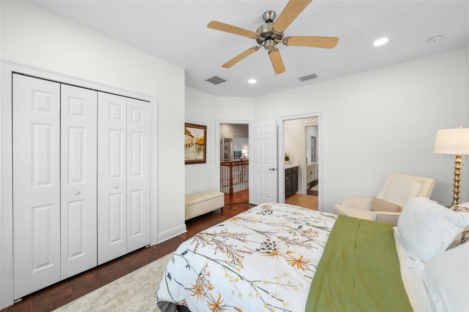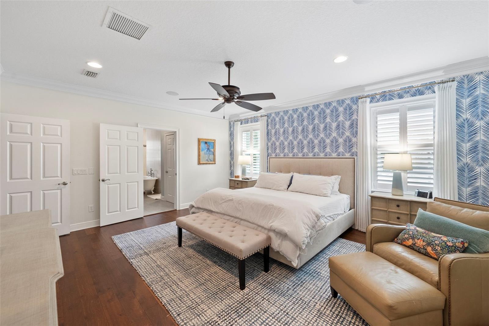 - Ceiling Fans(s), Chair Rail, Crown Molding, Dry Bar, Eat-in Kitchen, High Ceilings, Pest Guard System, PrimaryBedroom Upstairs, Smart Home, Stone Counters, Thermostat, Walk-In Closet(s), Window Treatments