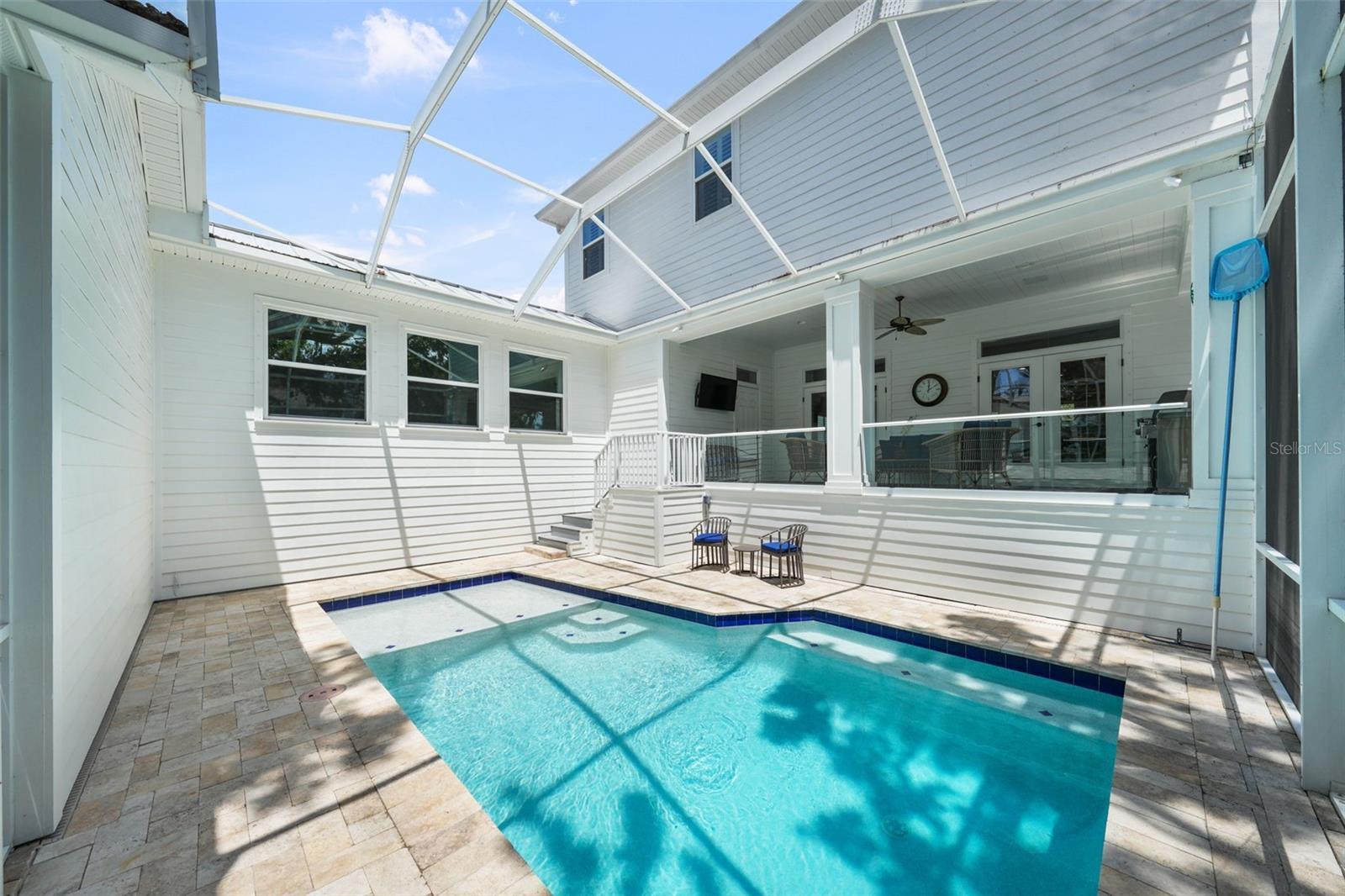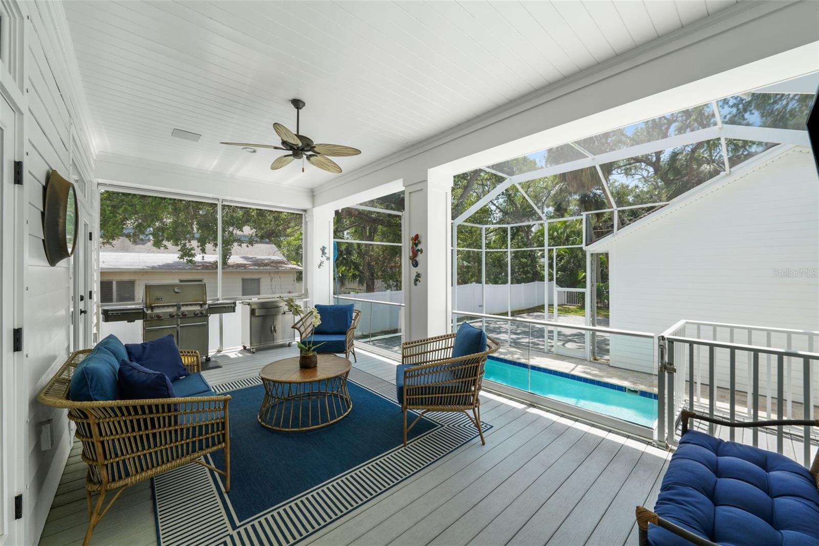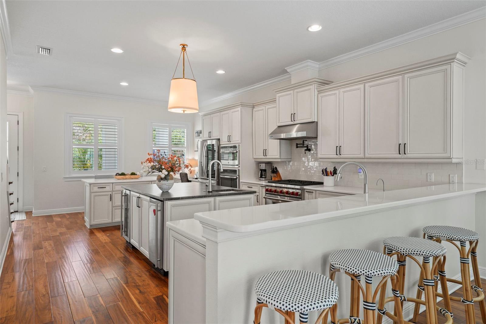 Welcome home! This beautiful 4-bedroom with office/media room, 3.5-bathroom, 3,375-square-foot two-story house offers all the comforts you need to live comfortably in the heart of Sunset Park. As you enter, you'll appreciate the spacious first floor, featuring a large kitchen with ample storage, including a walk-in pantry, double islands (one for seating, one for food prep), stainless steel appliances, a natural gas-burning Wolf oven range, a pot-filler, an in-wall microwave/oven, a new Miele dishwasher, a new GE Cafe refrigerator and upgraded quartz/granite countertops, along with a breakfast bar area. As you move into the living room, you'll adore the newly updated double-sided fireplace and the decorative built-in bar that flows into the recently remodeled dining area with new wallpaper, wainscotting and window treatments. As you move through the dining room and head up to the second level admire the hardwood stairs and the new hardwood flooring installed in all the bedrooms and office. In the primary bedroom, decorative wallpaper, window treatments and plantation shutters create a coastal chic vibe for relaxation, enhanced by the Sonos speaker system that run throughout the primary bedroom and bathroom (including the lanai and family room). As you make your way into the secondary bedrooms and bathrooms, you'll notice the two upstairs bathrooms also feature new quartz countertops and a freshly painted bedroom, elevating everyday comfort. For those working from home, this fiber optic cable equipped residence offers the perfect home office space with built-in bookshelves and French glass doors, filled with natural light. The covered front porch provides a comfortable perch overlooking the neighborhood and the color-adjustable uplights provide a festive atmosphere based on the season. The backyard oasis features an enclosed pool that was recently converted to a saltwater system with a new smart control for effortless maintenance and ambient pool light settings at night, plus a natural gas connection for the lanai grill. Enjoy peace of mind with an integrated home security system, full-home generator, electric entryway gate, and new insulated side motor garage doors with controllers. The climate-adjusted garage is finished with sleek new polyurea flooring, and the home's exterior has been recently painted for curb appeal. Additionally, there are sealed engineering plans for an in-law suite above the detached three-car garage garage. This move-in-ready gem combines modern convenience with timeless style, making it the perfect place to call home. Buyer motivated to close before January 28th, 2026.
