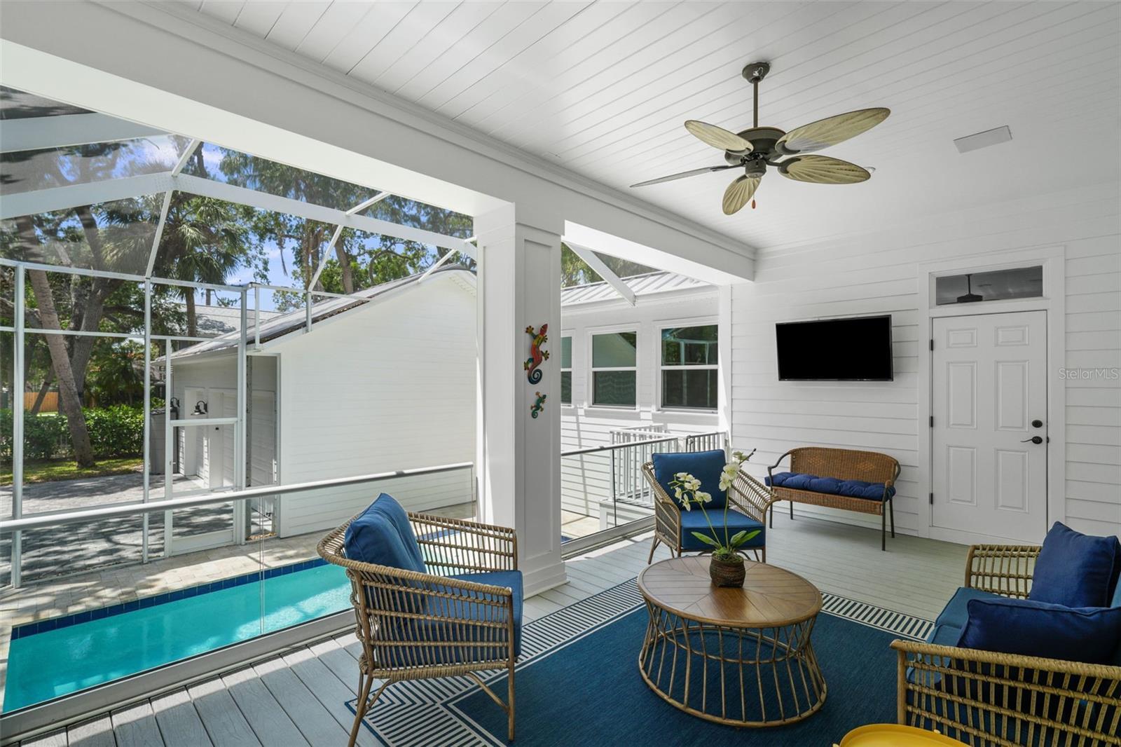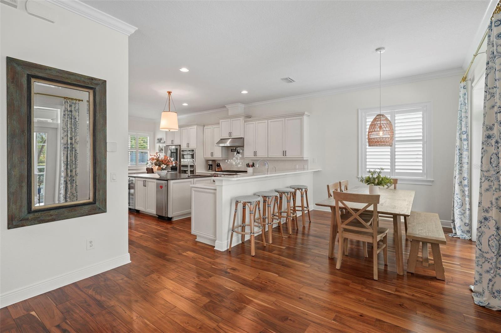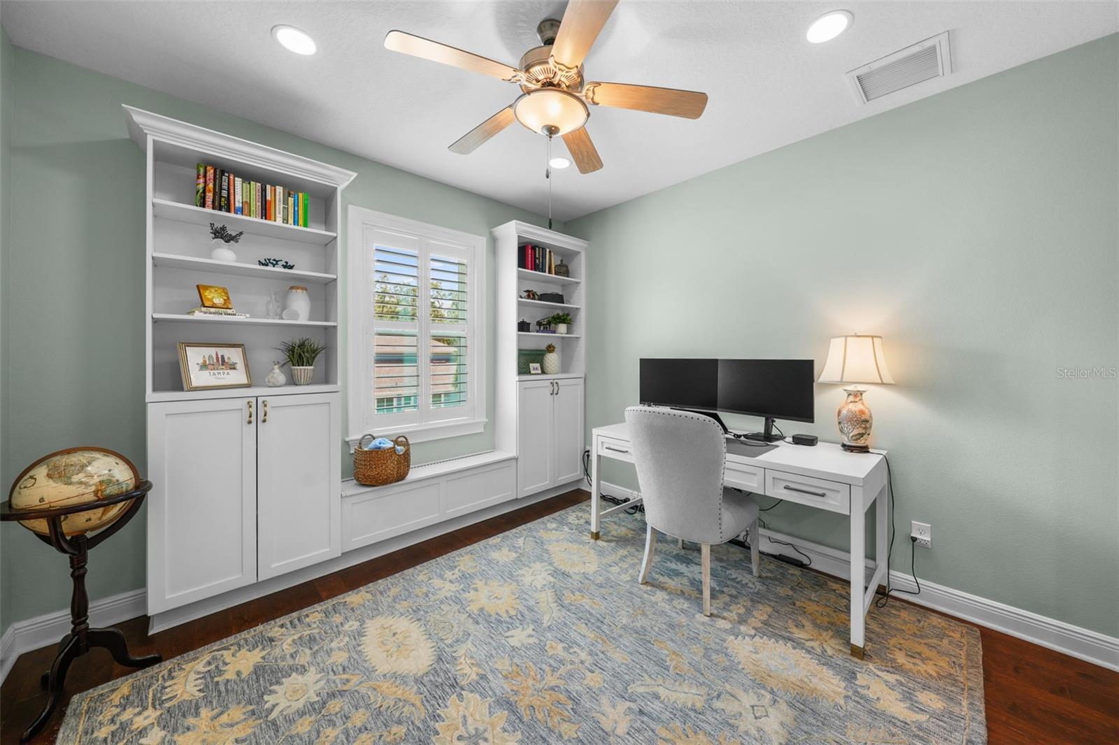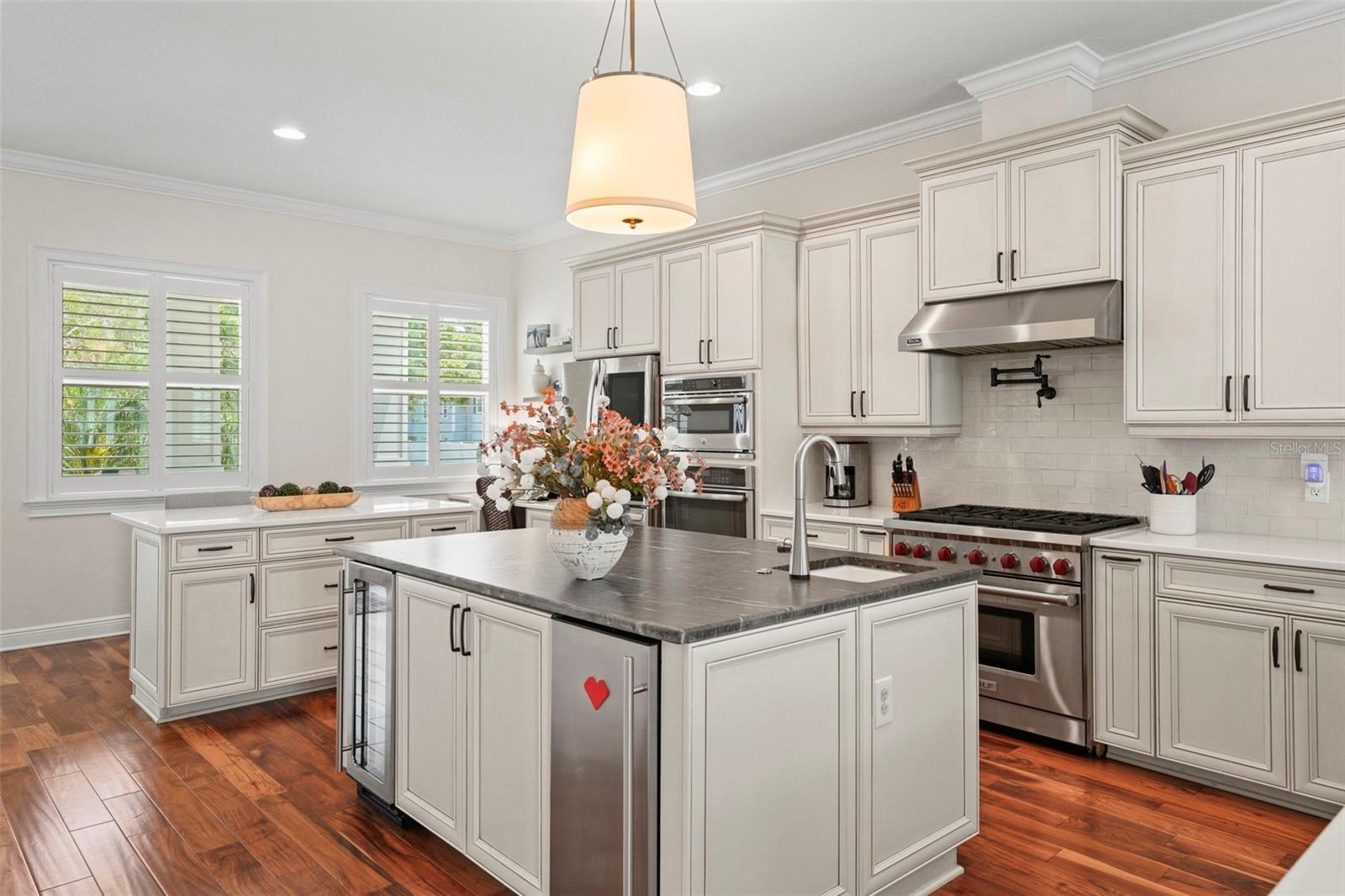Welcome home! This beautiful 4-bedroom with office/media room, 3.5-bathroom, 3,375-square-foot two-story house offers all the comforts you need to live comfortably in the heart of Sunset Park. As you enter, you'll appreciate the spacious first floor, featuring a large kitchen with ample storage, including a walk-in pantry, double islands (one for seating, one for food prep), stainless steel appliances, a natural gas-burning Wolf oven range, a pot-filler, an in-wall microwave/oven, a new Miele dishwasher, a new GE Cafe refrigerator and upgraded quartz/granite countertops, along with a breakfast bar area. As you move into the living room, you'll adore the newly updated double-sided fireplace and the decorative built-in bar that flows into the recently remodeled dining area with new wallpaper, wainscotting and window treatments. As you move through the dining room and head up to the second level admire the hardwood stairs and the new hardwood flooring installed in all the bedrooms and office. In the primary bedroom, decorative wallpaper, window treatments and plantation shutters create a coastal chic vibe for relaxation, enhanced by the Sonos speaker system that run throughout the primary bedroom and bathroom (including the lanai and family room). As you make your way into the secondary bedrooms and bathrooms, you'll notice the two upstairs bathrooms also feature new quartz countertops and a freshly painted bedroom, elevating everyday comfort. For those working from home, this fiber optic cable equipped residence offers the perfect home office space with built-in bookshelves and French glass doors, filled with natural light. The covered front porch provides a comfortable perch overlooking the neighborhood and the color-adjustable uplights provide a festive atmosphere based on the season. The backyard oasis features an enclosed pool that was recently converted to a saltwater system with a new smart control for effortless maintenance and ambient pool light settings at night, plus a natural gas connection for the lanai grill. Enjoy peace of mind with an integrated home security system, full-home generator, electric entryway gate, and new insulated side motor garage doors with controllers. The climate-adjusted garage is finished with sleek new polyurea flooring, and the home's exterior has been recently painted for curb appeal. Additionally, there are sealed engineering plans for an in-law suite above the detached three-car garage garage. This move-in-ready gem combines modern convenience with timeless style, making it the perfect place to call home. Buyer motivated to close before January 28th, 2026.