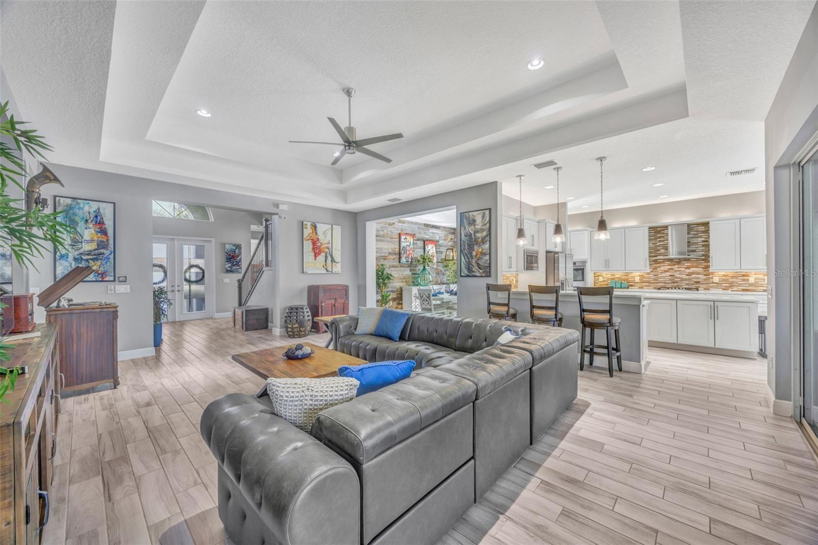 Absolutely STUNNING home with nearly 3800 sf of living space featuring 4 Bedrooms, 4.5 Baths, Club Room, Loft and split 3-Car Garage situated on a gorgeous preserve lot. The Carlyle Grande floorplan built by GL Homes is luxury living at it's finest in The Ridge at Wiregrass Ranch, the premier community in the heart of Wesley Chapel. As you enter, you are welcomed by the soaring 2-story foyer and living room with expansive views of the lanai and preserve giving you a sense of tranquility. The gourmet kitchen features 42” white upper cabinets with crown molding, a center island, custom tile backsplash, natural gas cooktop, stainless steel range hood, stainless steel refrigerator and LOADS of counter space for cooking or entertaining. The kitchen opens to the spacious family room so you feel part of the action! The family room is spacious enough for your sectional sofa and features a trayed ceiling and plenty of natural light. A wall of sliding glass doors lead to the oversized lanai with Brazilian travertine tile. Relax by the custom outdoor bar (complete with beer kegerator) or soak in the hot tub and enjoy the views of the preserve. This is the PERFECT ENTERTAINING home! Inside, the PRIMARY Suite is located on the main floor and features dual walk-in closets w built-in shelving, trayed ceilings and a luxurious en-suite bath with garden tub, separate oversized shower, separate his/hers vanities with granite counters and undermount sinks. The 2nd bedroom is located on the main floor and features an en-suite bath - perfect for guests! The main floor also features the 3rd bedroom (very spacious!), 3rd full bath and club room which can be used for a home office (as it currently is), game room, or perfect in-law living space. Upstairs you'll find the 4th bedroom with en-suite bath and large walk-in closet and the loft - perfect for the 2nd living space! The home is also equipped with a whole-house water softener as well as whole-house Generac generator and plantation shutters throughout. The Ridge is a luxury community in Wesley Chapel centrally located on SR 56. Amenities at The Ridge include an 11,500 sf indoor clubhouse located on 5.5-acres. The clubhouse features an event room, an indoor sports complex, game room, movie theatre, fitness center, and kitchen. Outdoors boasts 4 lighted clay tennis courts, basketball, sand volleyball, resort pool with beach entry, lap pool, fire pit, and water play area. The community is minutes from the Shoppes at Wiregrass, Tampa Premium Outlets, 3 local hospitals, restaurants and Top-Rated Area Schools. Call today for your opportunity to view this home!